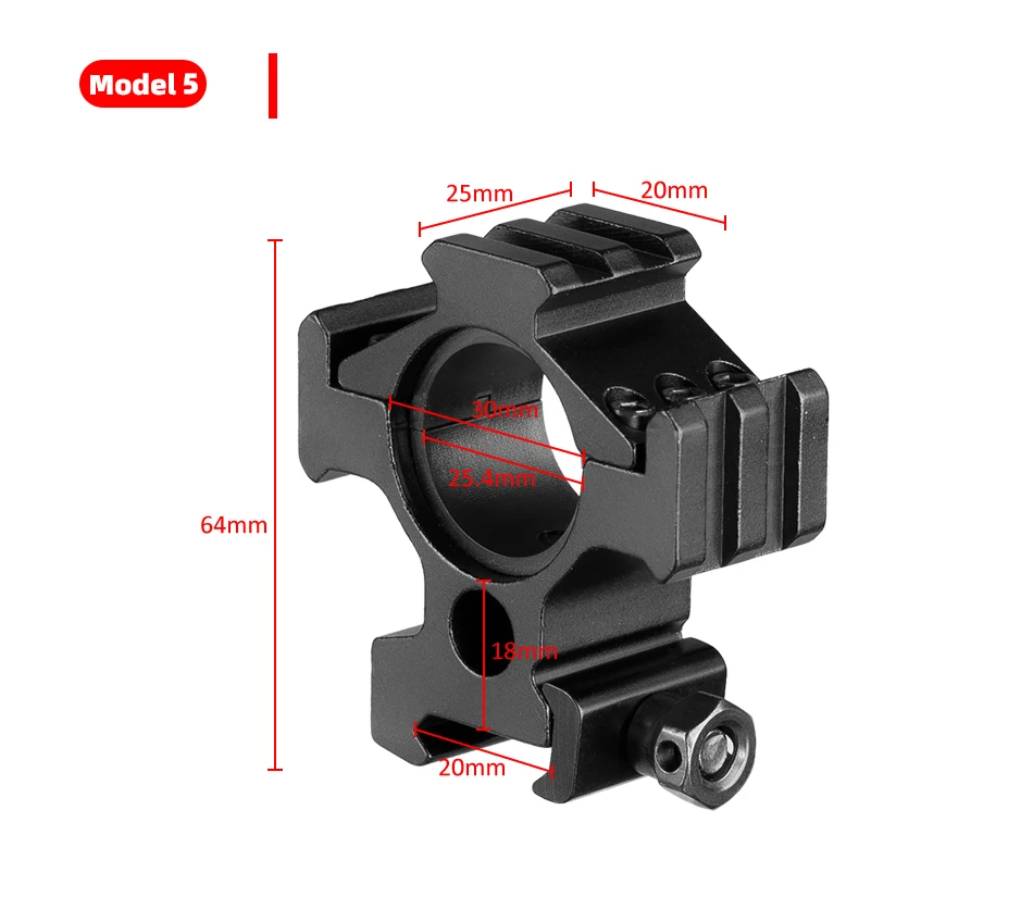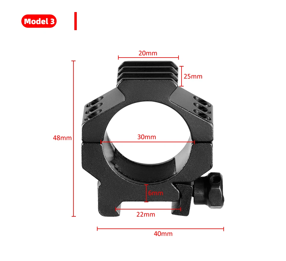 Montaje de alcance, anillo de 30mm, perfil bajo resistente, 6 pernos, riel Picatinny de 20mm con llave hexagonal para linternas láser de pistola M16