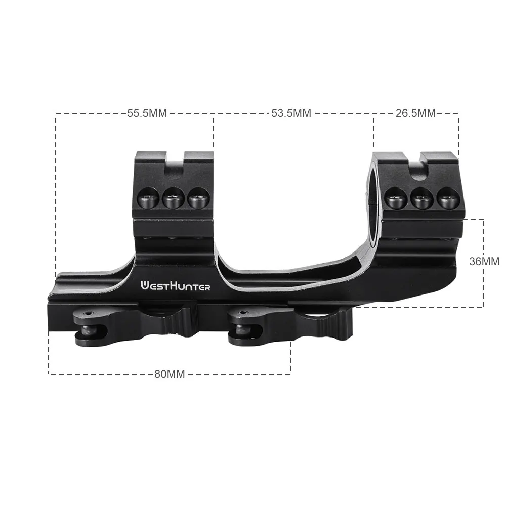 Montaje de alcance de una pieza de liberación rápida, anillos duales de 1 "/30mm, accesorios de caza que se adapta a soportes tácticos voladizos Picatinny QD de 20mm