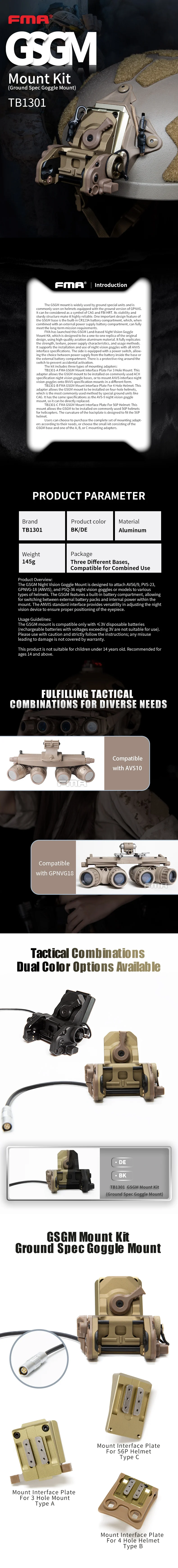 Montaje de gafas tácticas GSGM, placa adaptadora de cubierta de casco, especificaciones de tierra para AN/AVS-6, AVS-9, PVS-23, ANVIS, GPNVG-18, visión nocturna