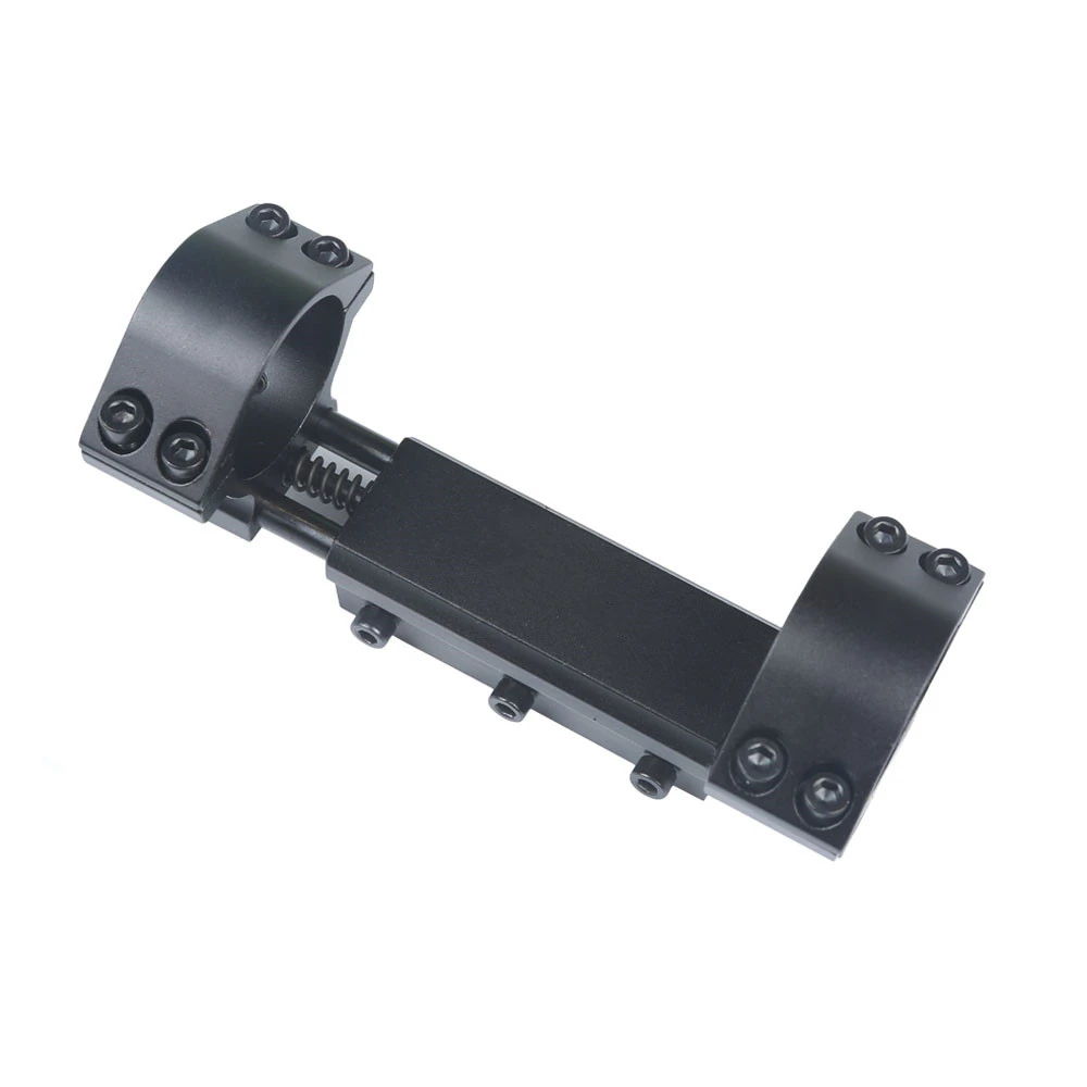 Con este soporte, incluso los visores de rifle de bajo presupuesto se pueden utilizar en rifles de aire con resorte de alta potencia.La base rígida está equipada con un pasador de tope.