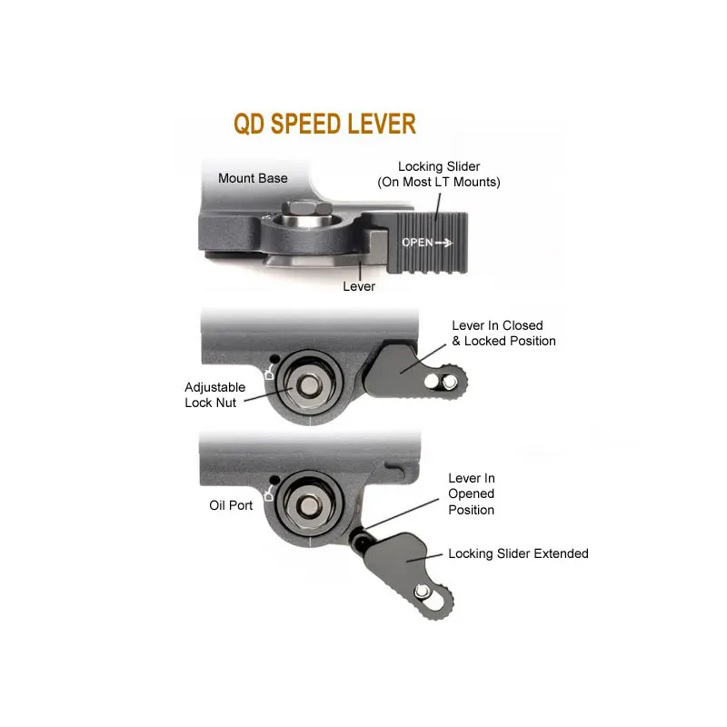 La palanca de velocidad de bloqueo proporciona un excelente retorno a cero, la óptica se puede quitar y reemplazar sin pérdida de cero.