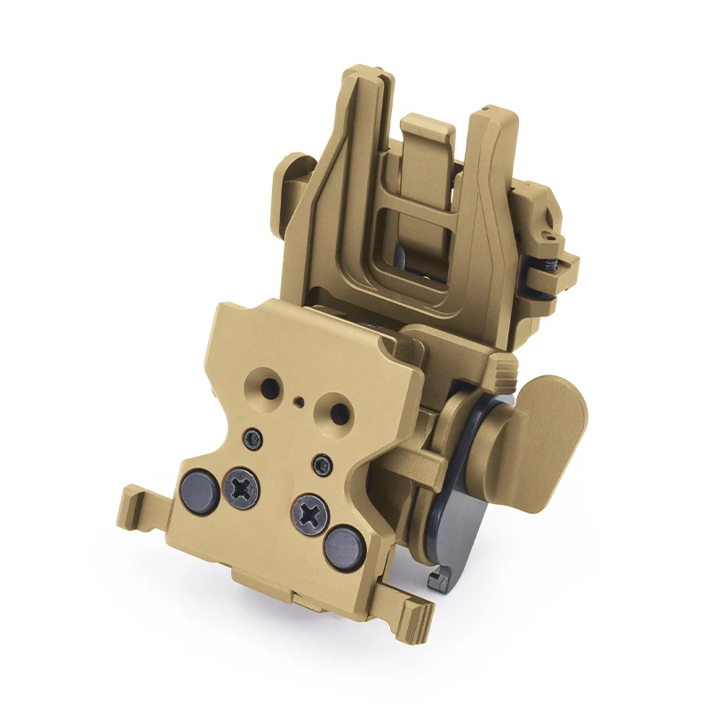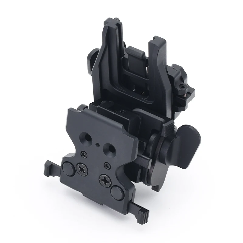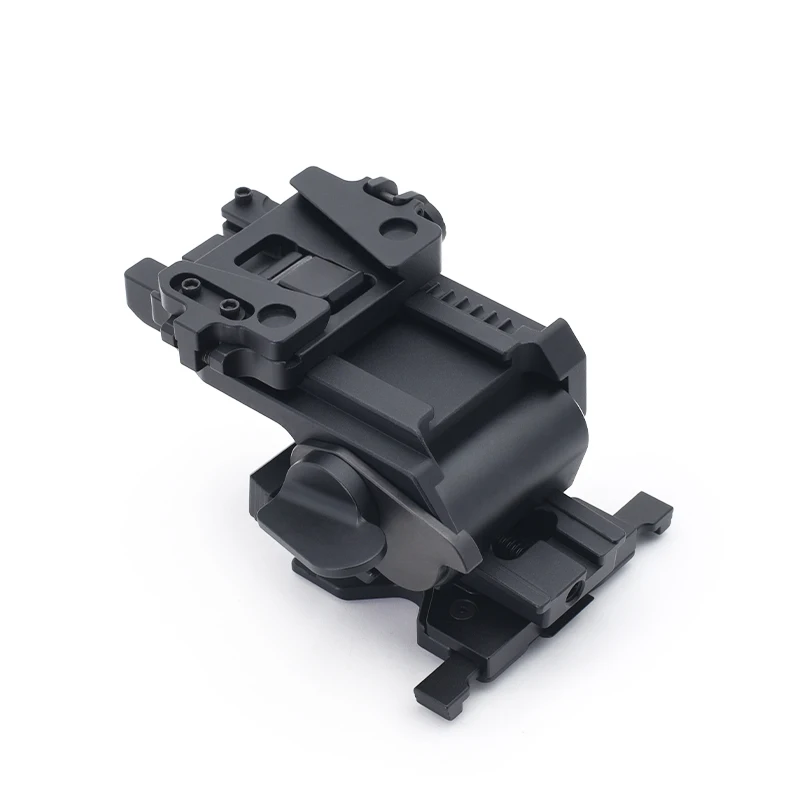 El soporte cuenta con un mecanismo de bloqueo seguro que garantiza que sus NVG permanezcan firmemente en su lugar durante el uso. Este accesorio seguro es crucial para mantener la estabilidad y el rendimiento de su equipo de visión nocturna, evitando caídas accidentales y minimizando el riesgo de daños.