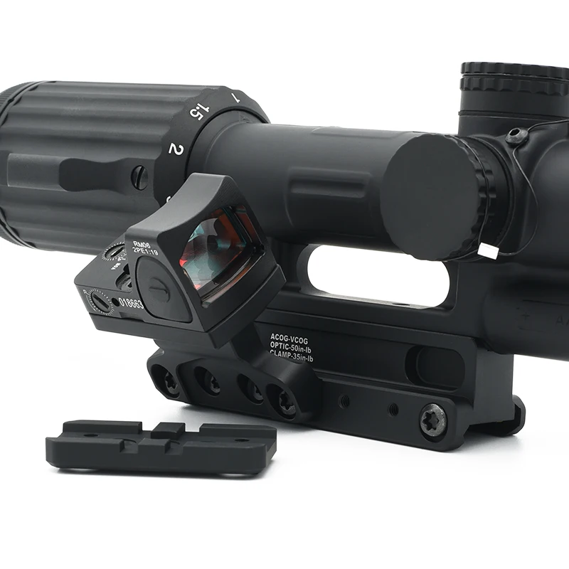 También proporcionamos la suite de accesorios offset para RMR/T2, que es una serie de piezas modulares que permiten a los usuarios elegir su MRDS preferido y colocarlo a 2,05′′ por encima del riel en un ángulo de 35 grados.Esta ubicación permite transiciones rápidas.