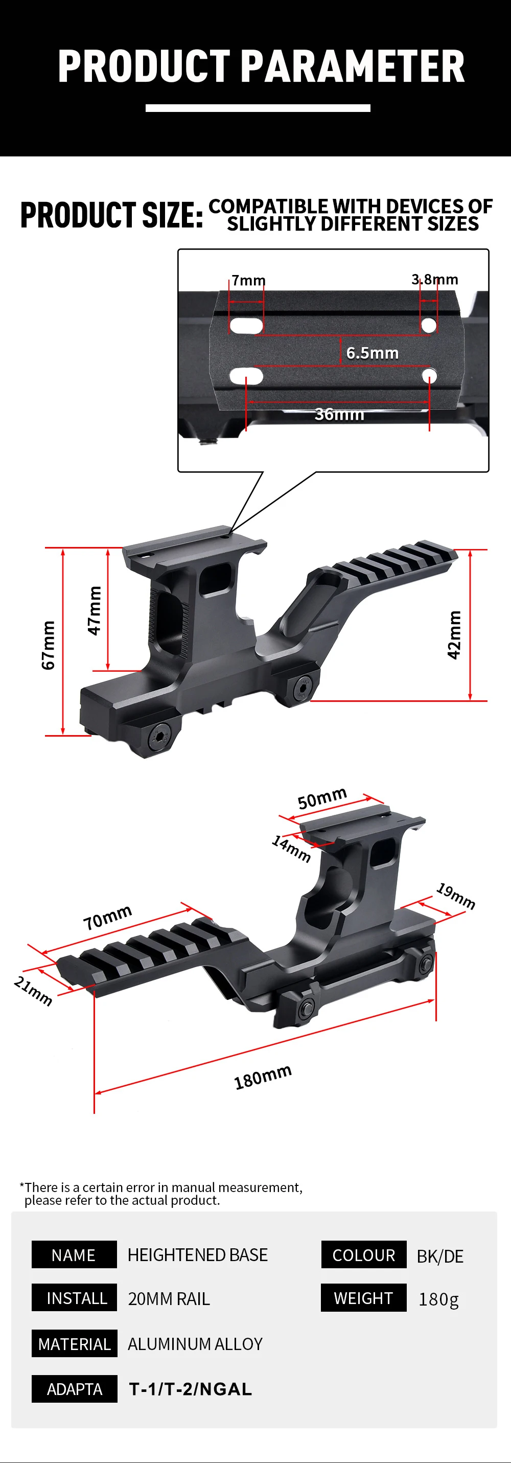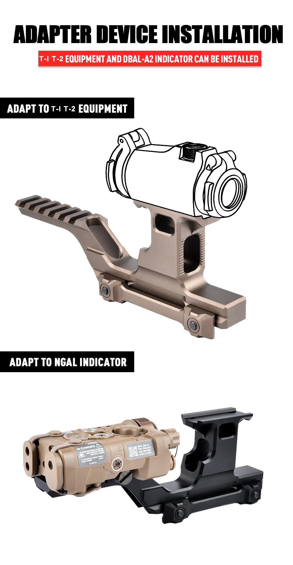 WADSN-Soporte táctico GBR, Base de alcance NGAL, soportes elevadores láser, equipo de caza, espejo de aumento, soporte de elevación, riel Airsoft de 20mm