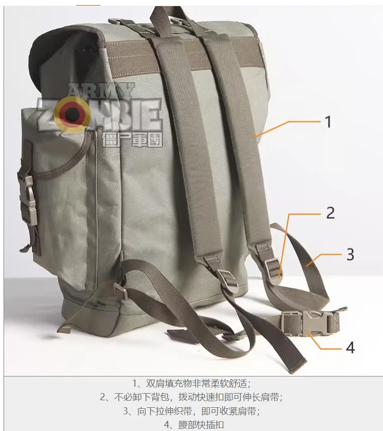 2, no es necesario quitar la mochila, presione la hebilla rápida para extender la correa para el hombro;