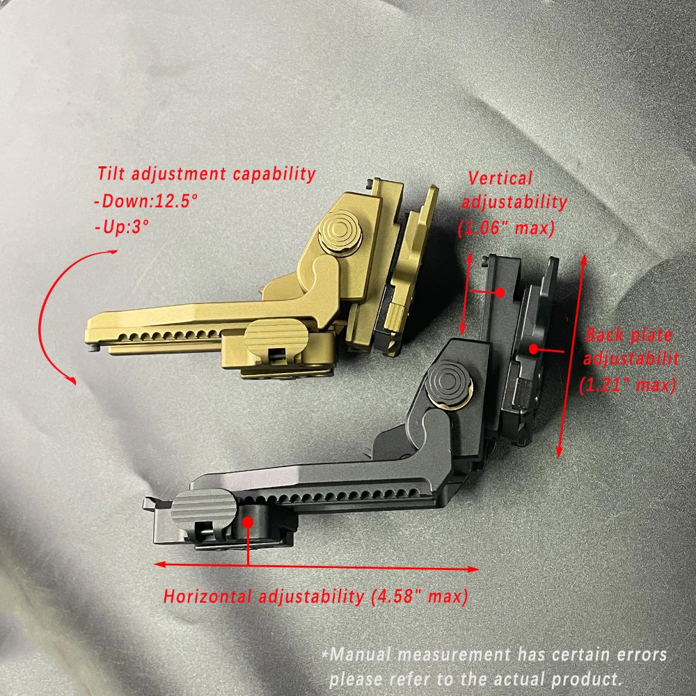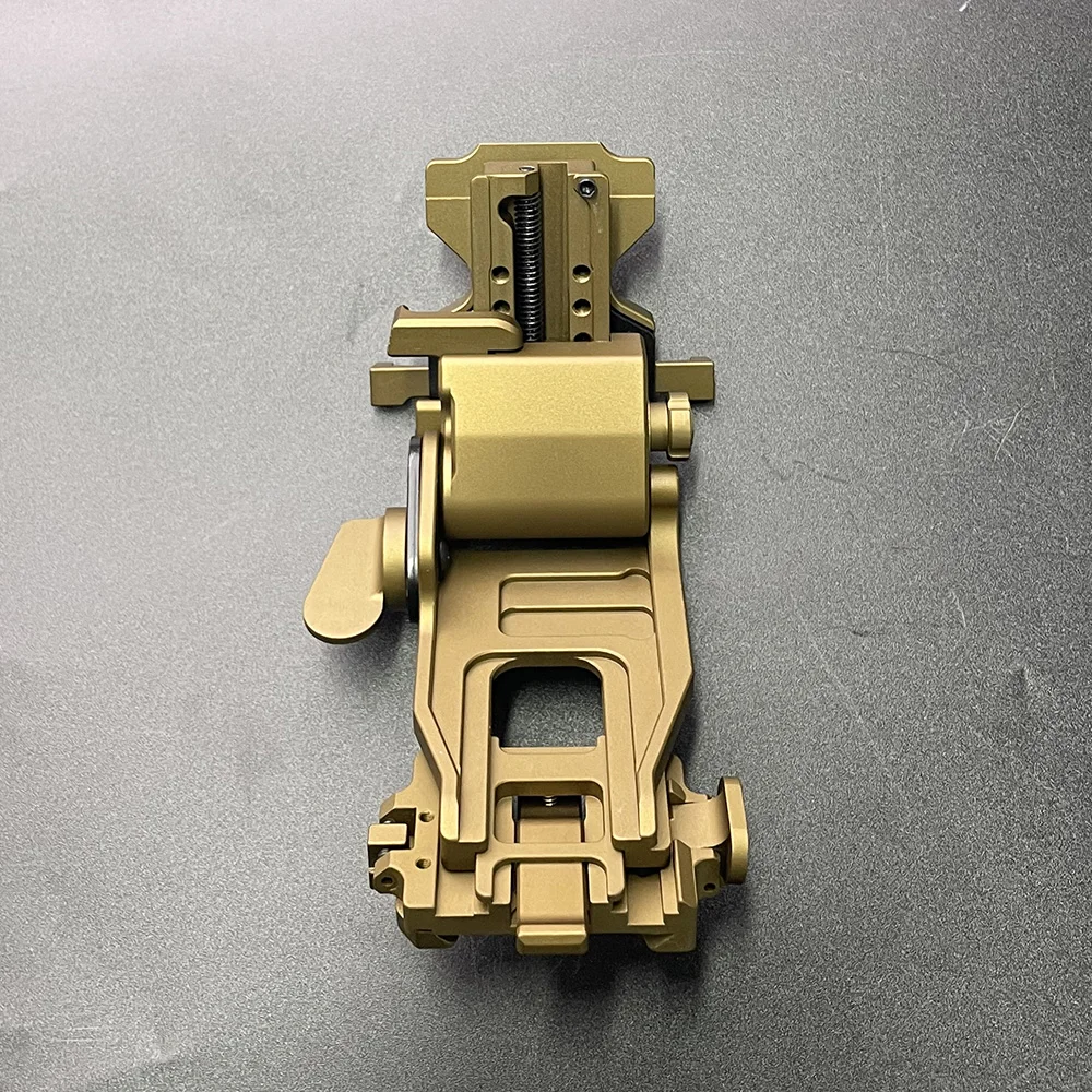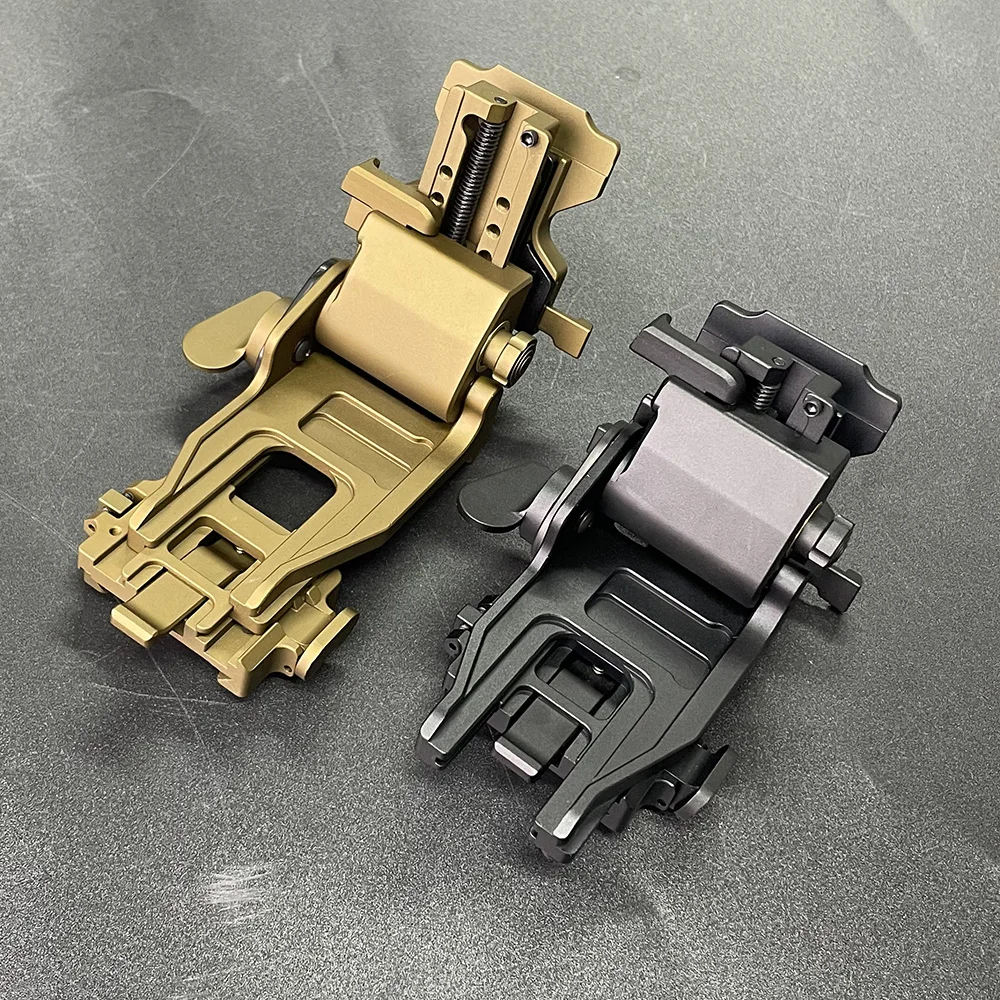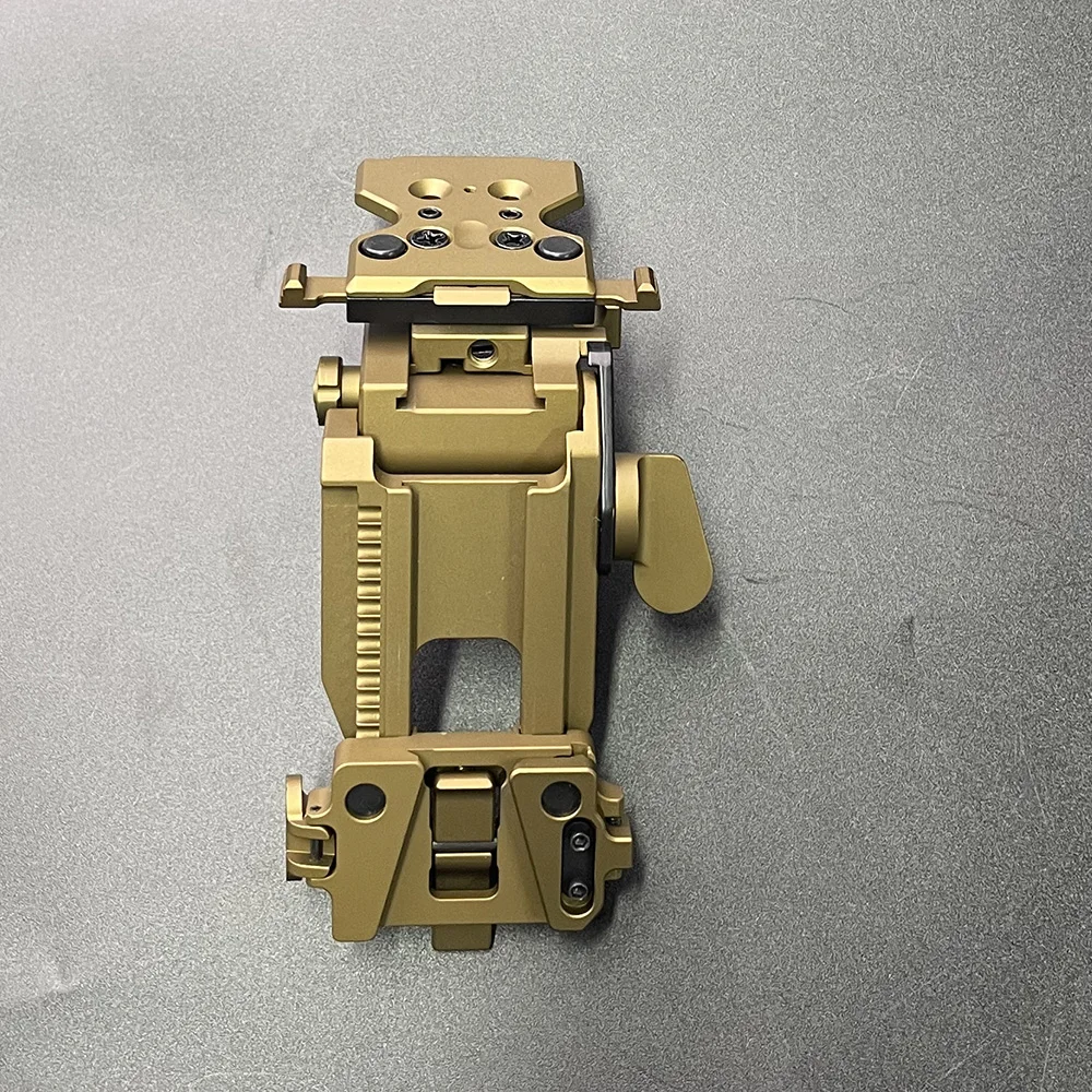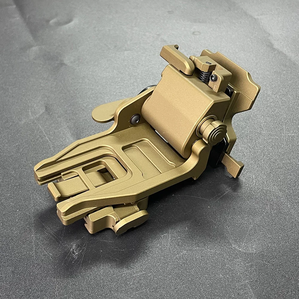 1. La fuerza para superar para guardar elimina las posibilidades de lesiones en el cuello (si el NVG es golpeado o impactado, el soporte abatible de perfil bajo se doblará y bloqueará en una posición vertical protegiendo el NVG y el operador.