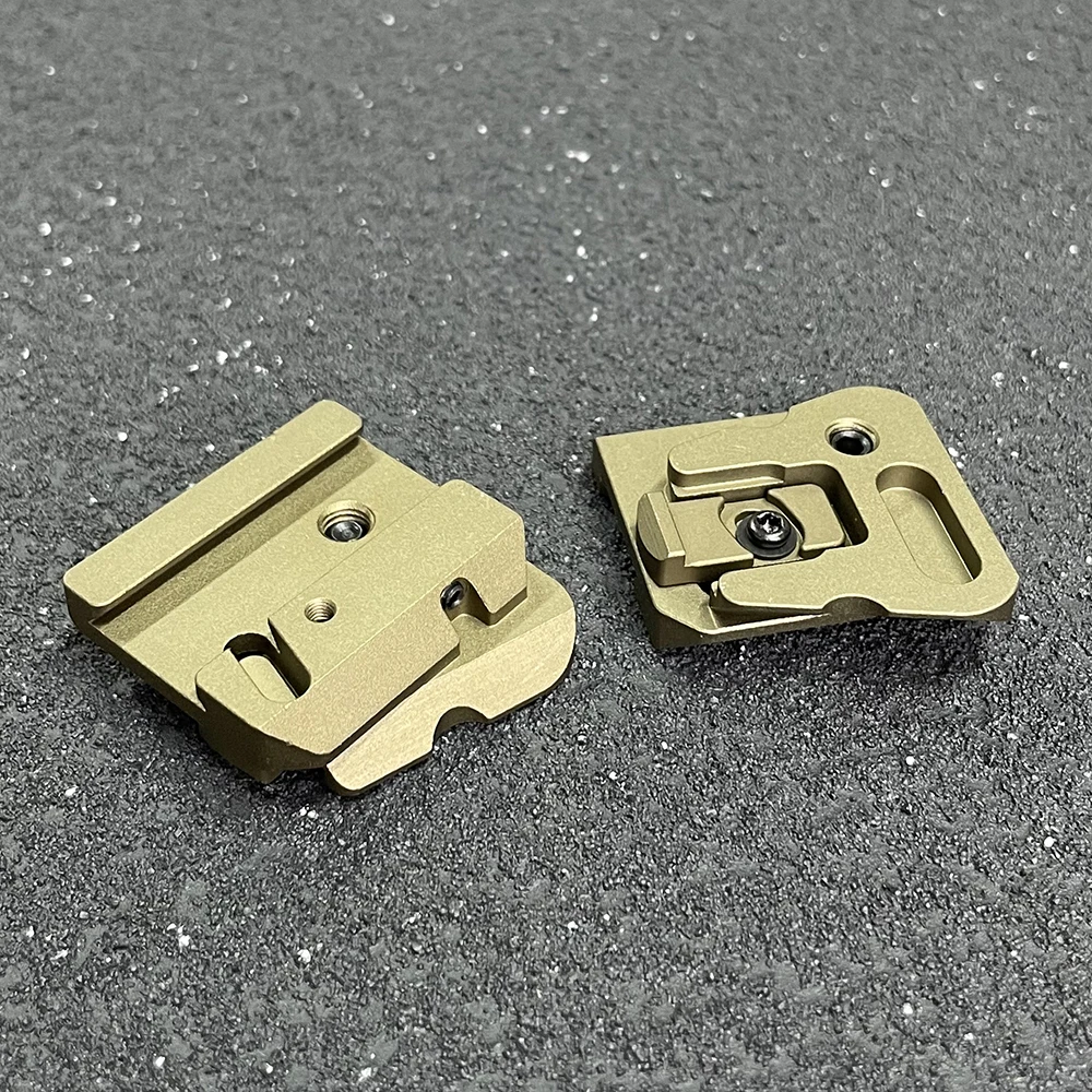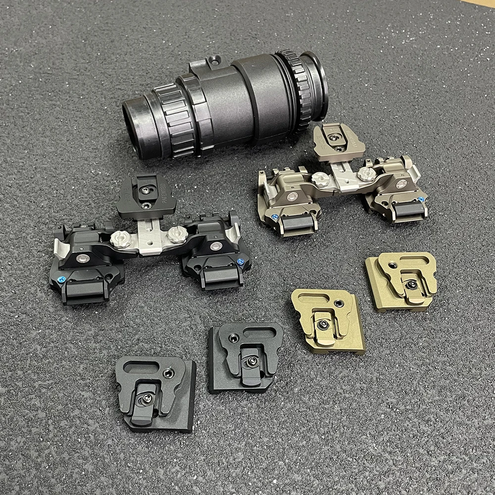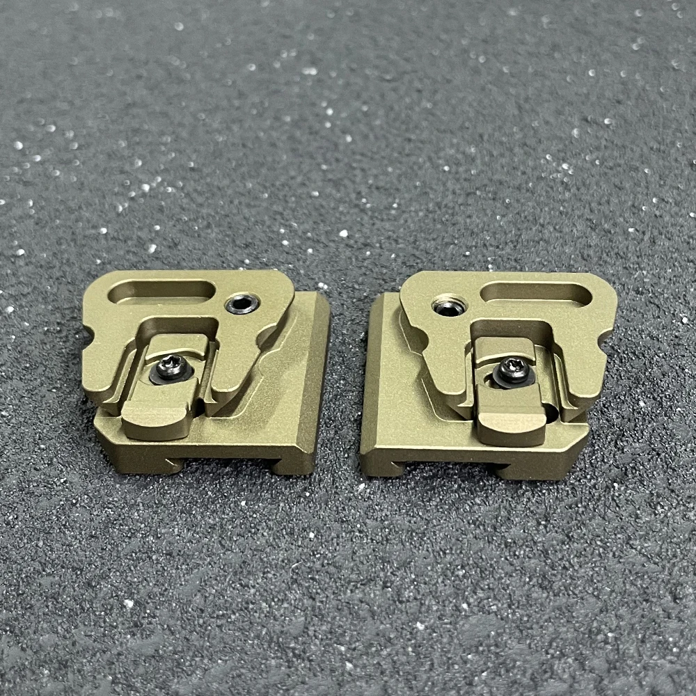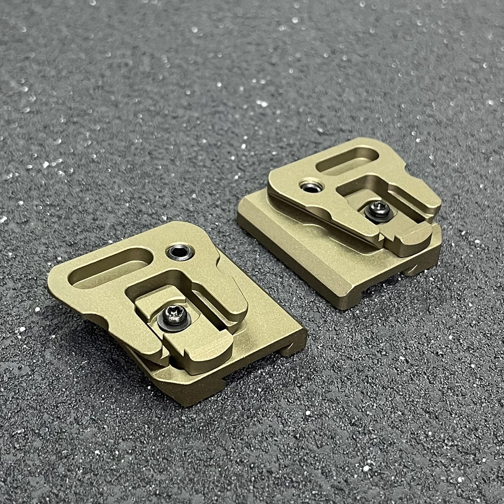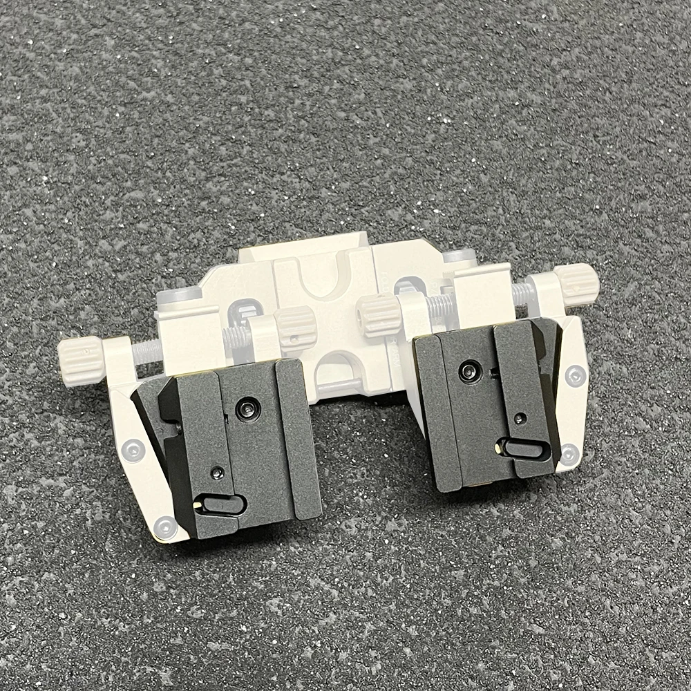 K-Clips se bloqueará en las interfaces de cola de milano hembra estándar de una multitud de fabricantes de monturas de casco. El zapato de cola de milano con accesorio de montaje en casco cuenta con el diente de tolerancia patentado de KVC. Esta característica está diseñada para garantizar que la cola de Milano macho KVC se asiente correctamente en la interfaz hembra de cualquier otro fabricante. Debido a las diferentes tolerancias de un fabricante a otro, el desgaste, los cambios ambientales, etc.; no todas las colas de Milano se bloquean constantemente. El Diente de tolerancia patentado de KVC permite un ajuste preciso para compensar la pila de tolerancia. Incluso si su puente universal se bloquea perfectamente con el soporte del host, el desgaste de las piezas se producirá por las constantes repeticiones de montaje. El Ajuste del diente de tolerancia garantizará un ajuste perfecto durante toda la vida útil del dispositivo.