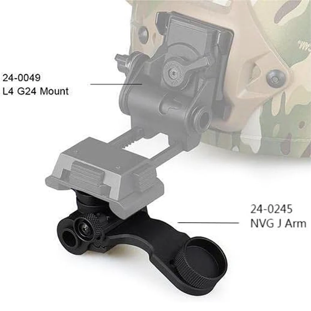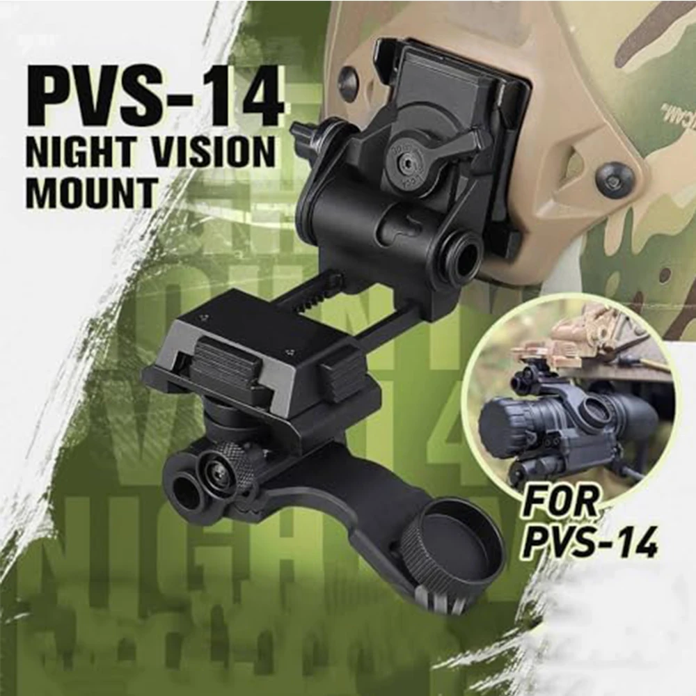 Montura NVG para gafas de visión nocturna PVS 14 con brazo en J y montura metálica para casco Montura Rhino de aluminio Compatible con todos los modelos de PVS14