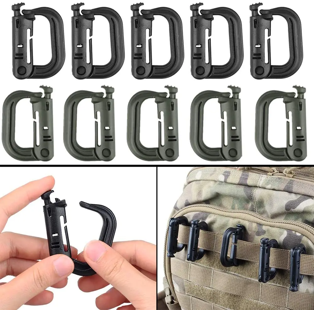 Mosquetón de bloqueo de anillo en D multiusos, Clips Molle, gancho colgante, hebilla de mochila, cierre a presión, hebilla de llavero de campamento, 10 Uds.