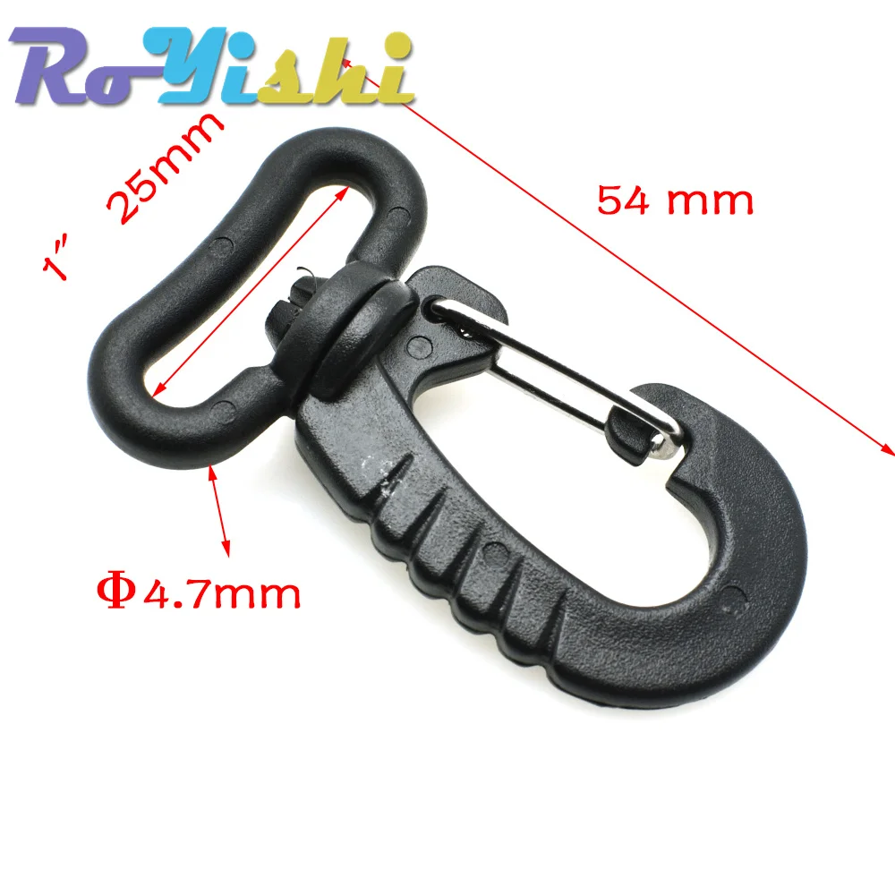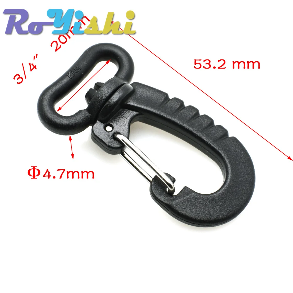 Mosquetón giratorio de plástico para llavero, mochila, hebilla, correa para cinturón, negro