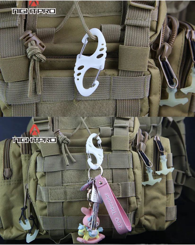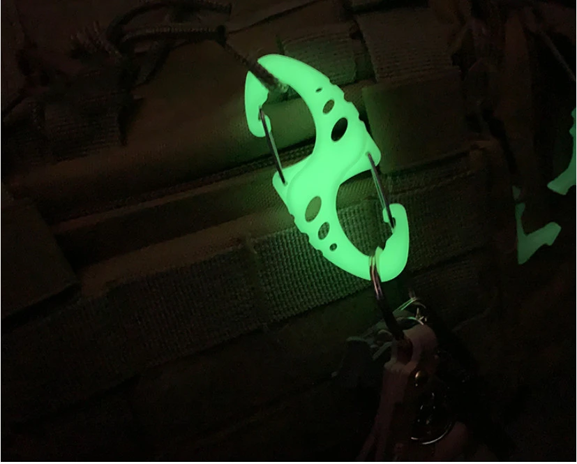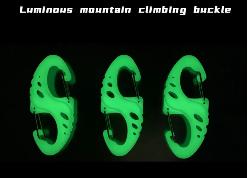 Mosquetón luminoso en forma de S, cuerda de Camping, hebilla colgante, mochila antipérdida, llavero táctico de liberación rápida al aire libre