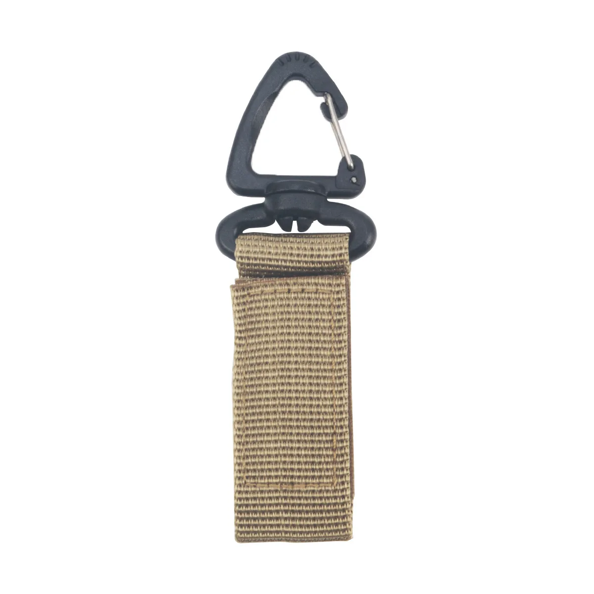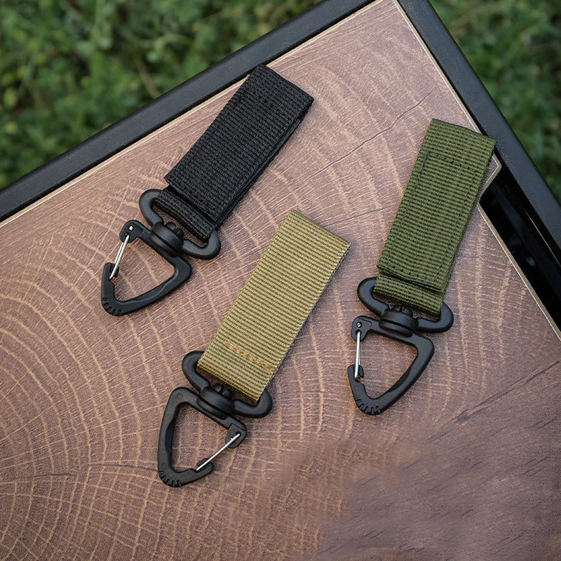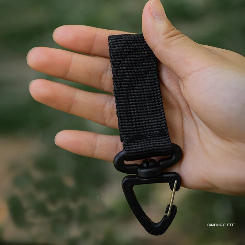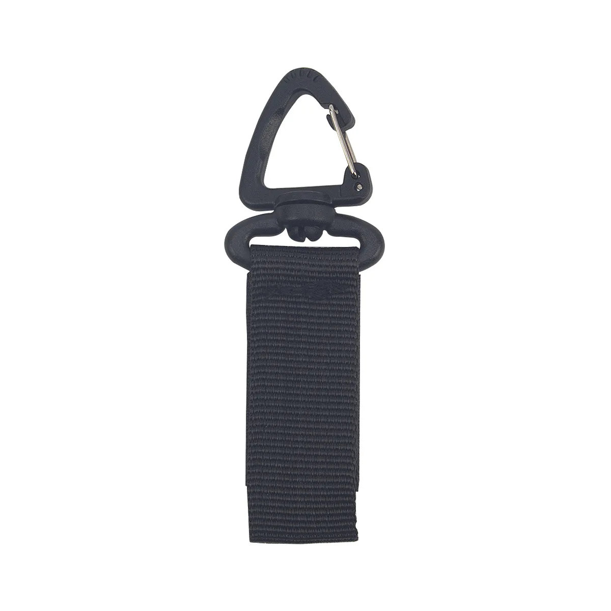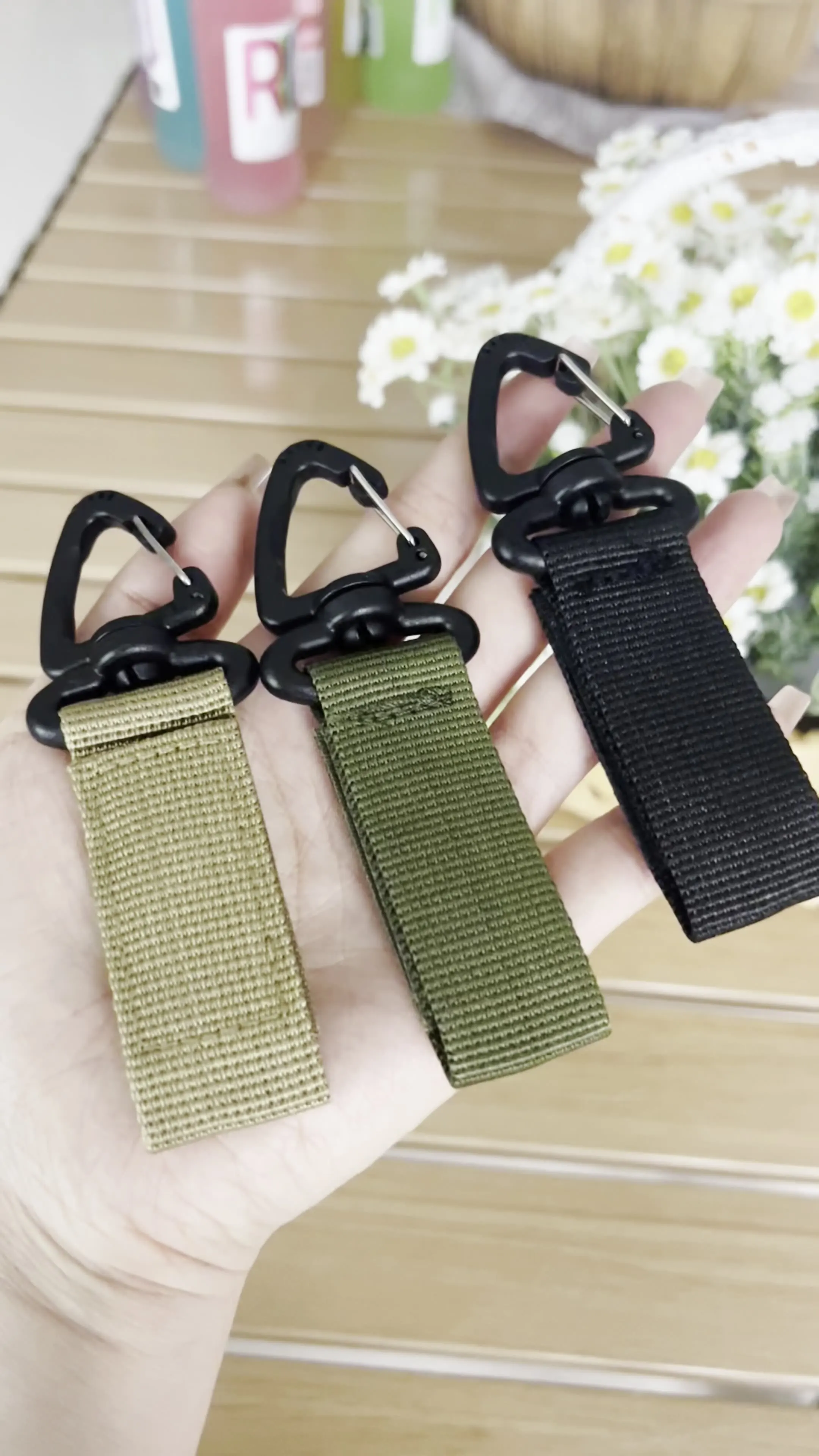 Mosquetón de plástico (con cierre de metal) en una correa sintética (como poliéster) de 25 mm de ancho. La correa con velcro se ajusta en un bucle (similar al cinturón de una gabardina), por ejemplo, para un cinturón de 50 mm de ancho; puedes reducir o aumentar ligeramente el diámetro del bucle ajustando dentro del rango del velcro. Bien hecho y cuidadosamente elaborado. Llegó antes de lo previsto, bien embalado; el producto recibido coincide con la foto y la descripción del artículo.