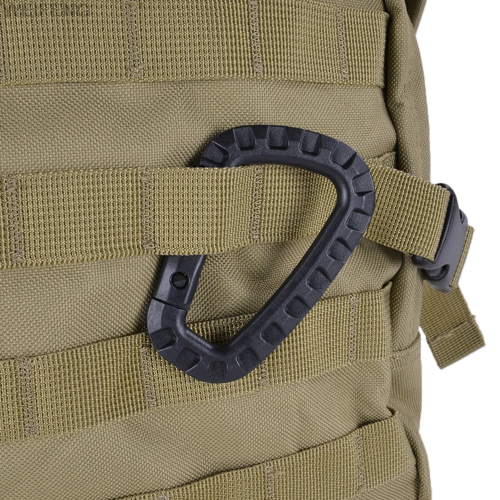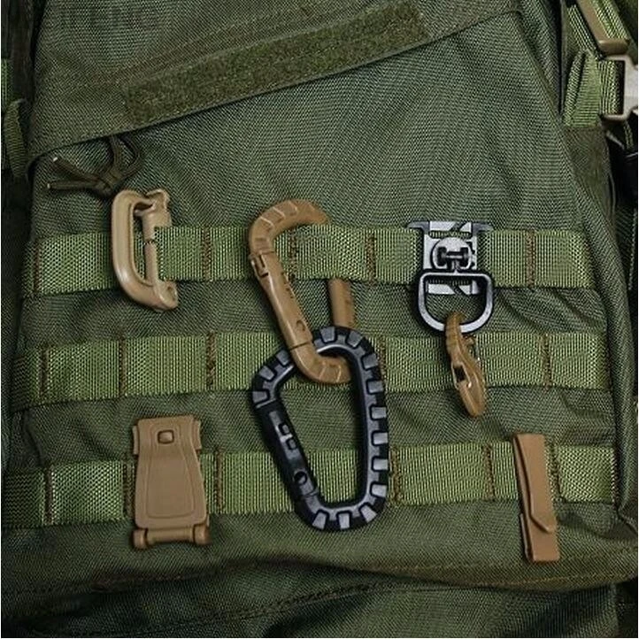 Se puede utilizar como hebilla en el paquete, ligero y dorado puede soportar 200 libras (aproximadamente 80 kg) de equipo pesado para acampar. Es adecuado para colgar sus guantes, auriculares de reducción de ruido, tazas y otros colgantes innecesarios en la hebilla de metal del equipo. Son mucho más ligeros. Puede usar su imaginación y límites de carga para usarlos. Nombre: Hebilla táctica material: plástico duro ABS tamaño: 8,5 cm longitud, ancho 5,6 cm rodamiento máximo 80kg Color: negro, verde militar, naranja, caqui peso neto: 18 g/pc contacto del embalaje: mosquetones de 5/10 "x.