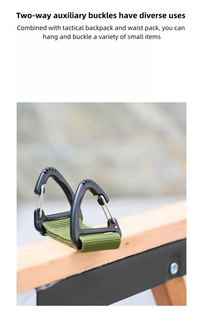 Mosquetones de hebilla de mochila de correas, hebilla colgante táctica triangular de doble punto, accesorio para acampar al aire libre, senderismo y escalada