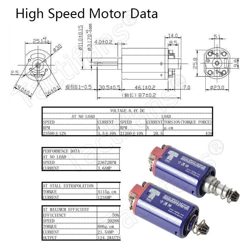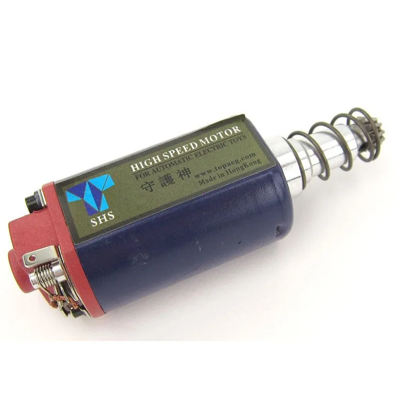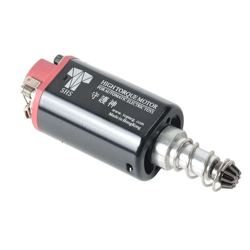 El motor de alto par SHS es un gran motor si desea utilizar un resorte más pesado en su pistola AEG airsoft. También un alto par dará una respuesta de disparo más rápida y ayuda del sobrecalentamiento de su motor mientras usa un resorte 120 o inferior.