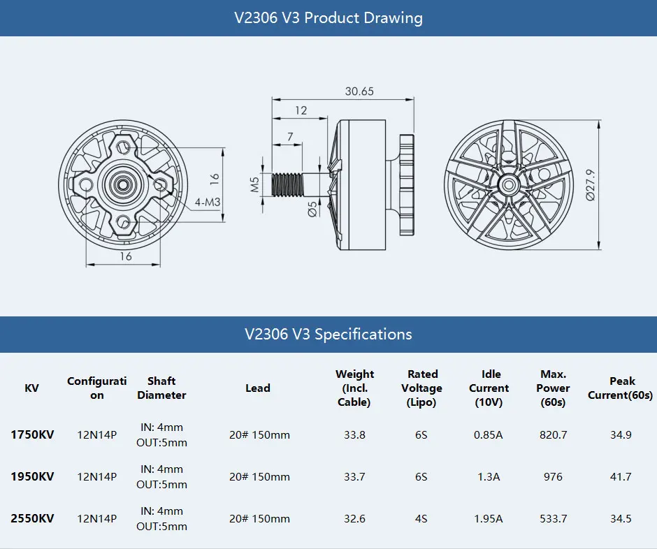 Motor sin escobillas para Drones Freestyle, 4 piezas, V2306, V3, 1750KV, 1950KV, 6S, 2550KV, 4S, piezas de bricolaje