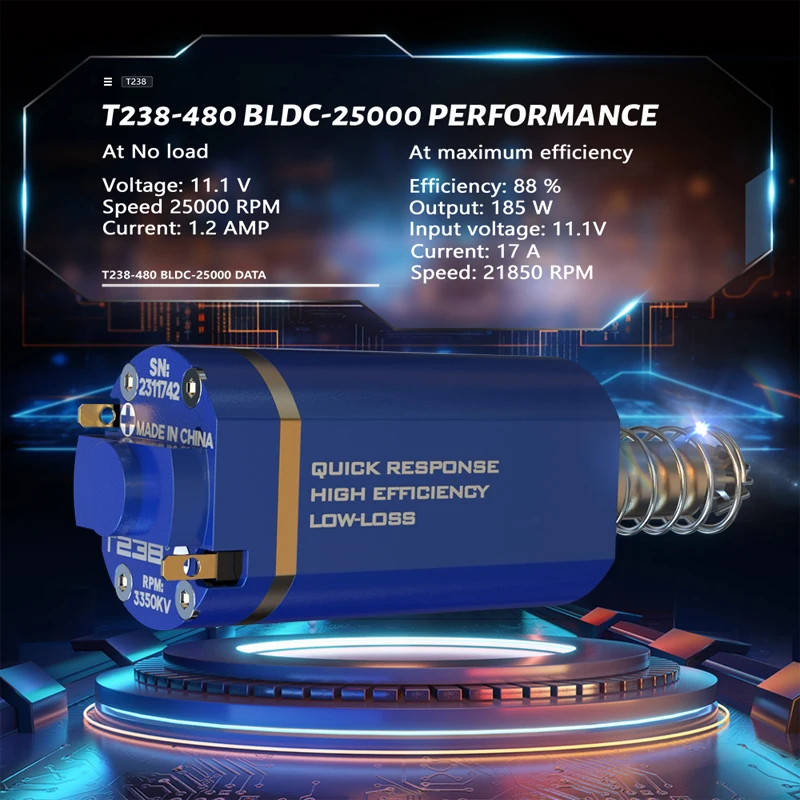 T238 QRBLS Respuesta rápida Motor sin escobillas de alta eficiencia y baja pérdida Motor AEG de eje largo Airsoft de alta velocidad de alto par