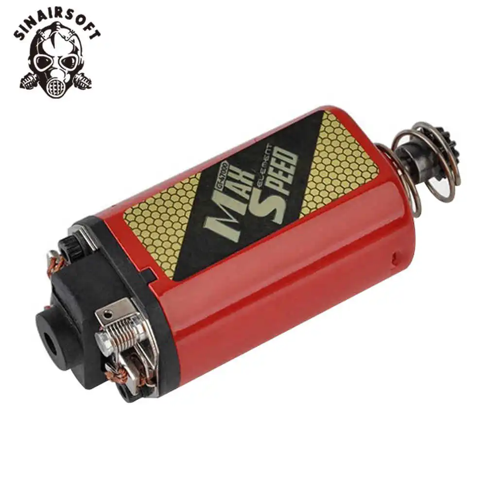 Aumente la velocidad de disparo de su AEG con el motor de tipo corto Element Max Speed. Este Motor de alta calidad y altas RPM (revoluciones por minuto) es perfecto para cualquier caja de cambios metálica de alta velocidad versión 3. Los motores de alta velocidad son los favoritos entre los jugadores de airsoft que buscan un alto volumen de fuego supresor sobre velocidades de boca rápidas. Las altas tasas de fuego son perfectas para la batalla de cerca, porque te permite reprimir a la oposición mientras avanzas en su posición. El Motor de velocidad máxima Element es perfecto para su próxima construcción de AEG de alta velocidad.