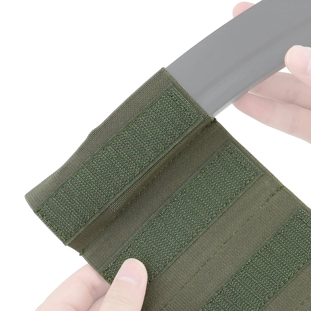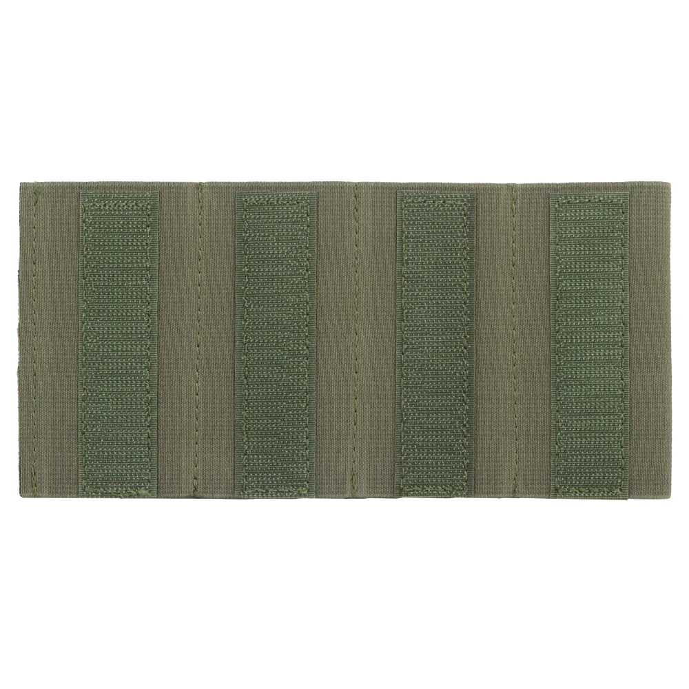 ② El inserto está retenido por un cierre de gancho cosido a ambos lados, lo que le permite encajar en las bolsas de canguro de muchos portadores de placas o plataformas de pecho.