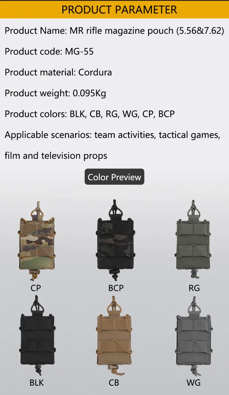 Nombre del producto: Bolsa de la revista rifle MR (5,56 y 7,62)