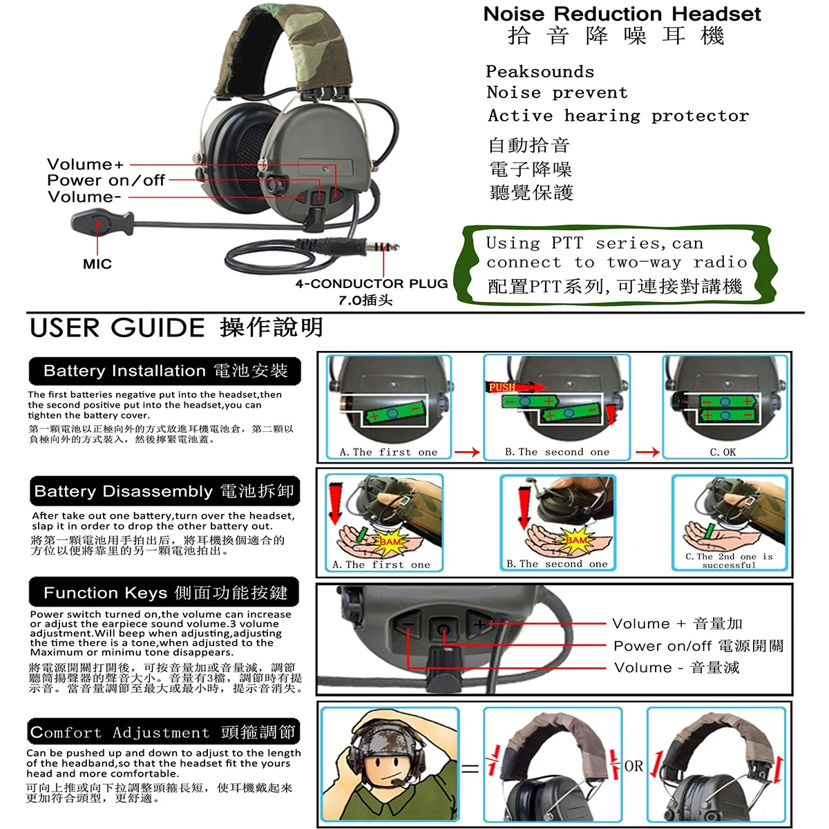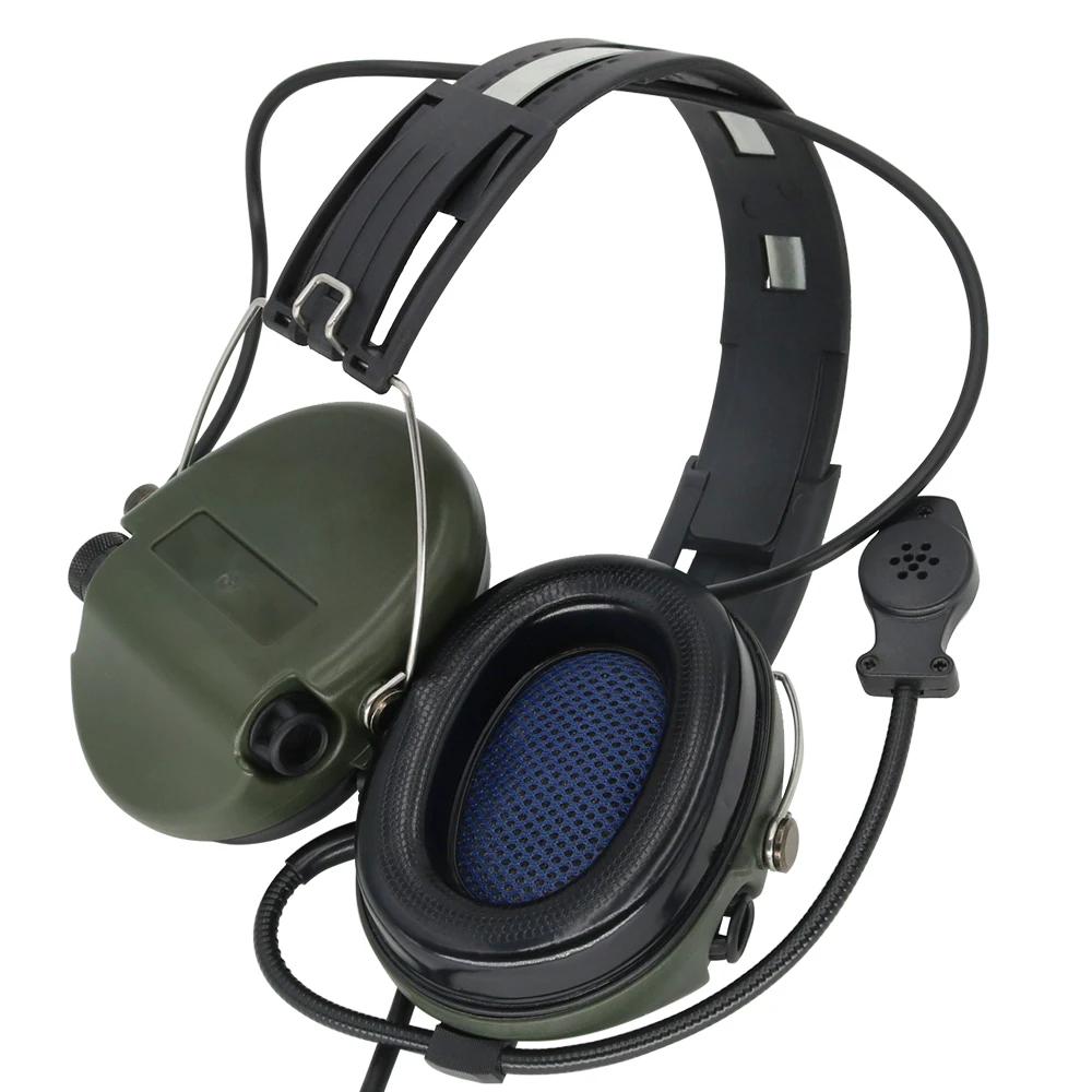 Auriculares similares a los utilizados por las fuerzas especiales militares. Enchufe de versión estándar militar. Diseño para diestros y zurdos.