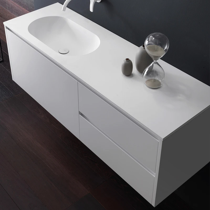 Mueble de baño de piedra artificial hecho a medida, combinación integrada, lavabo de pared, lavabo montado en la pared