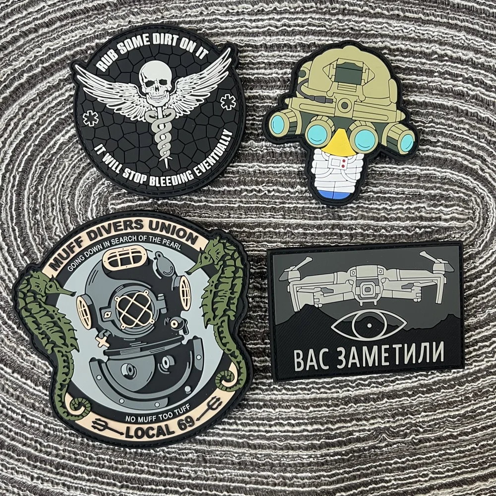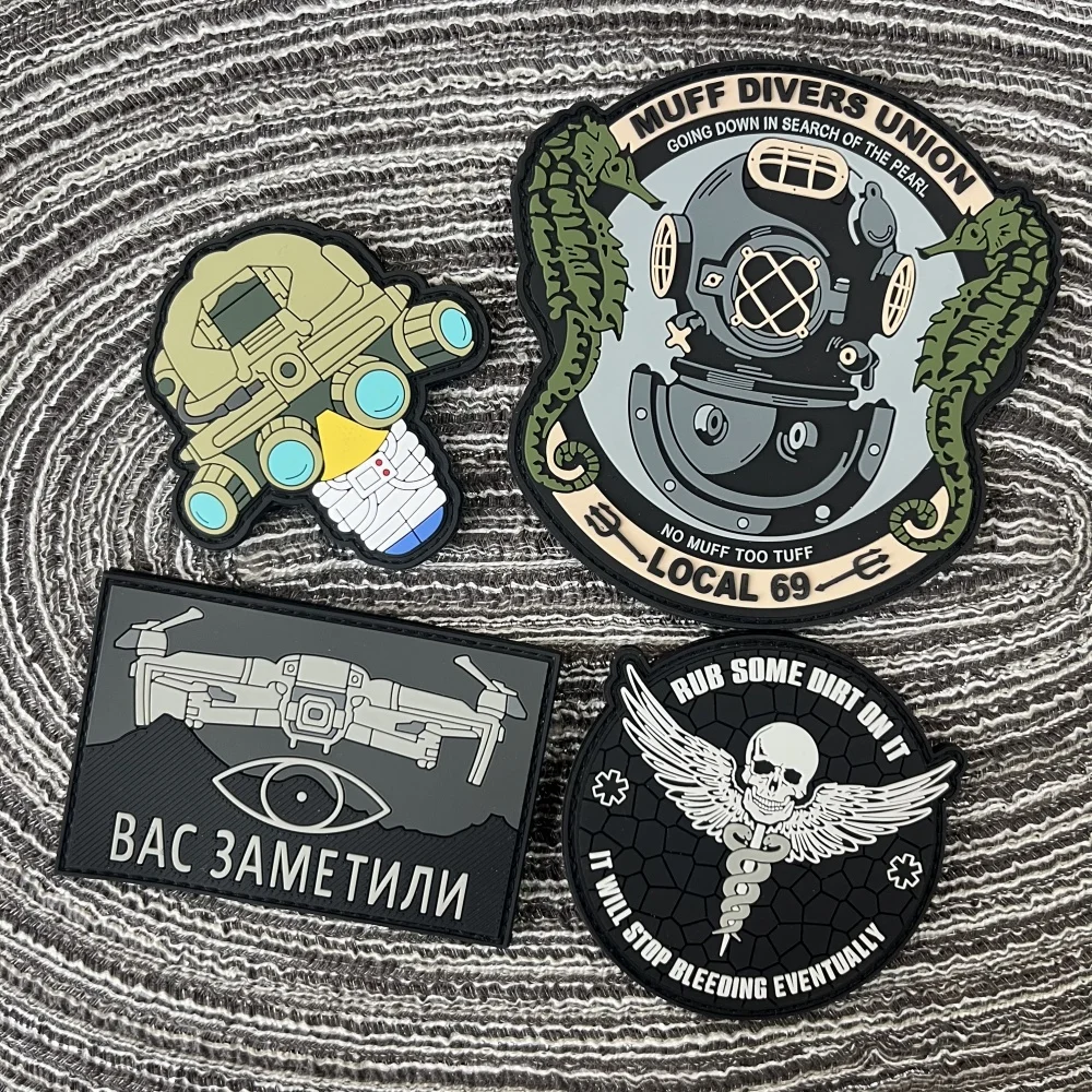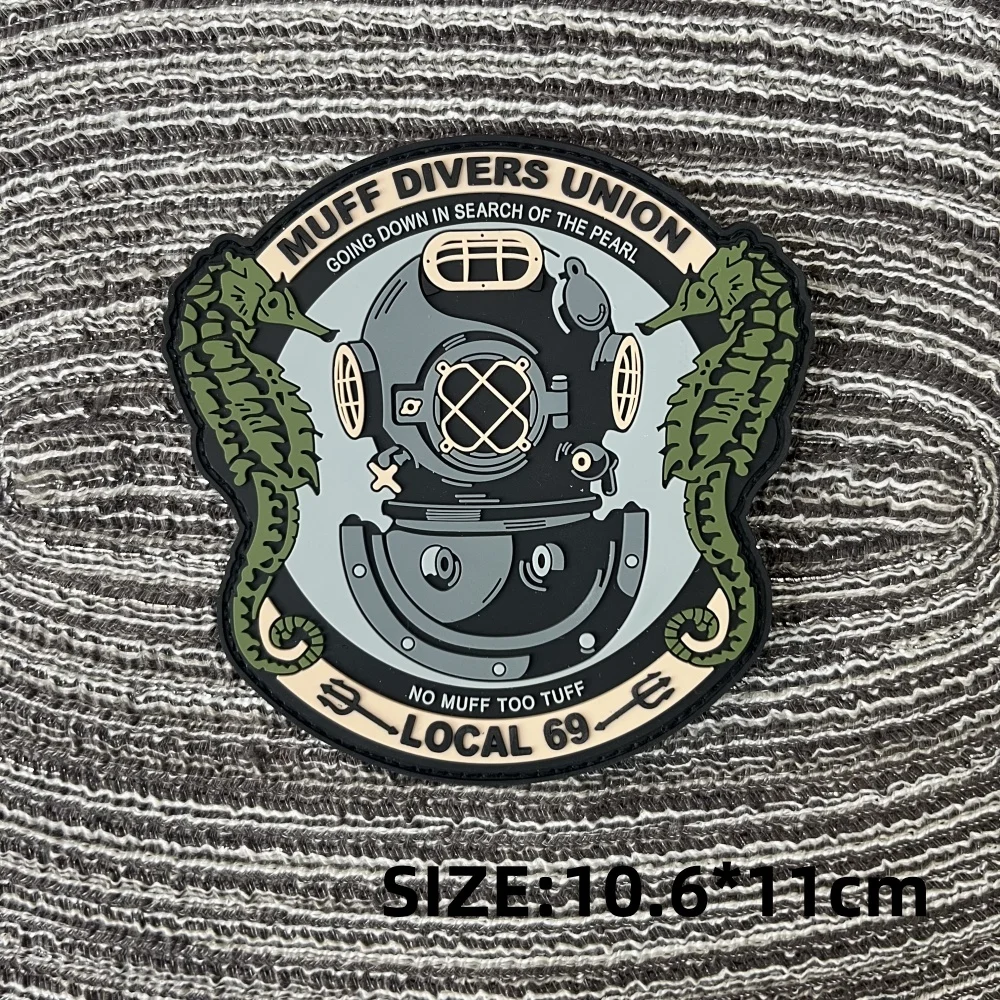Muff Divers Union 3D parches de PVC para ropa parche de gancho y bucle mochila insignias de moral bolsa alas de esqueleto pegatinas tácticas