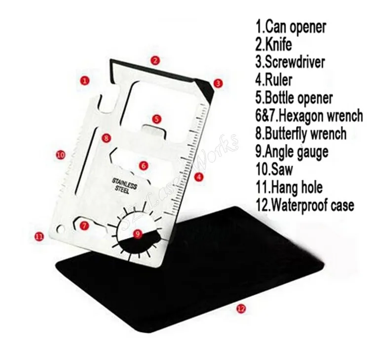 Multiherramientas de metal 11 en 1, cuchillo multifunción para caza al aire libre, supervivencia, Camping, bolsillo militar, tarjeta de crédito, llavero