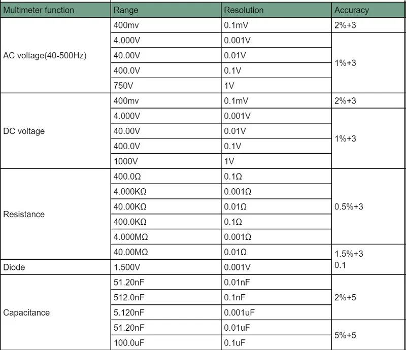 【Multifuncional】: El multímetro puede medir voltaje CC, voltaje CA, resistencia, diodo, encendido/apagado, capacitancia, etc.
