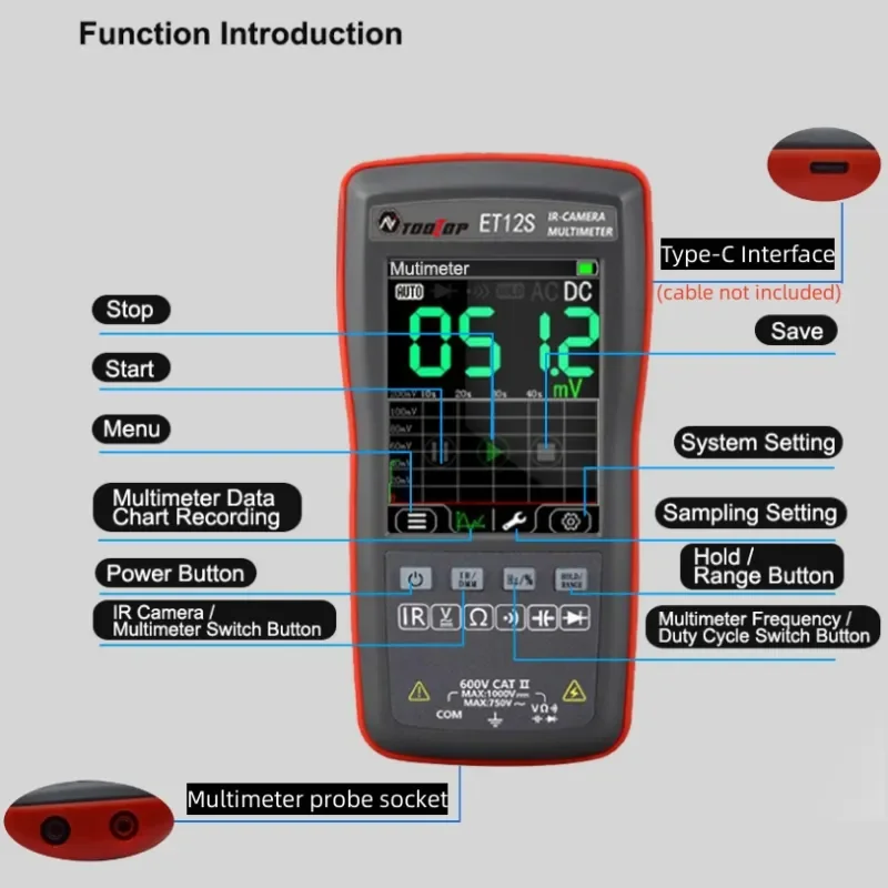 【Transmisión de datos y análisis de software para PC】:En el modo USB, es posible transferir imágenes de imágenes térmicas guardadas localmente y la grabación de resultados de medición del multímetro mediante tabla de datos. Y se muestra en la computadora a través del software de PC.