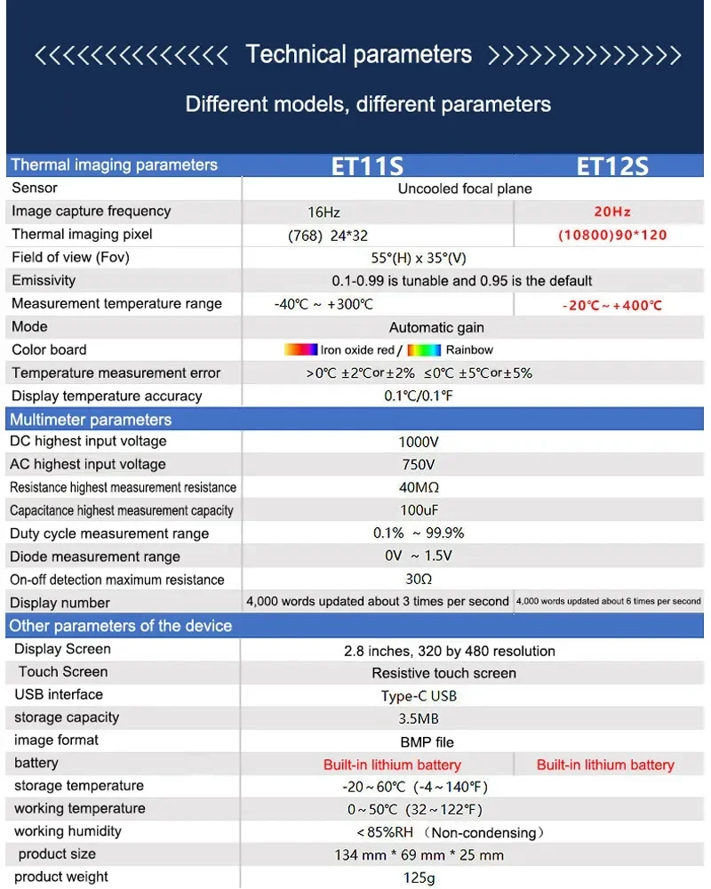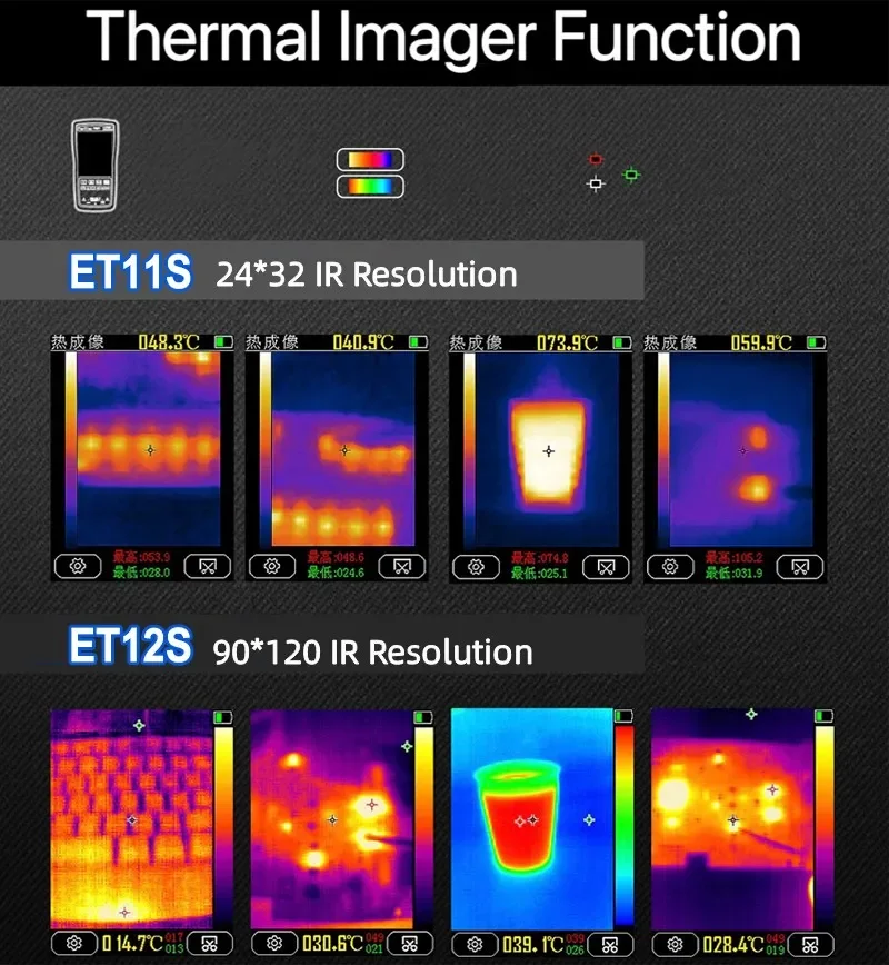 Píxel de imagen térmica: 24*32(ET11S); 90*120(ET12S)