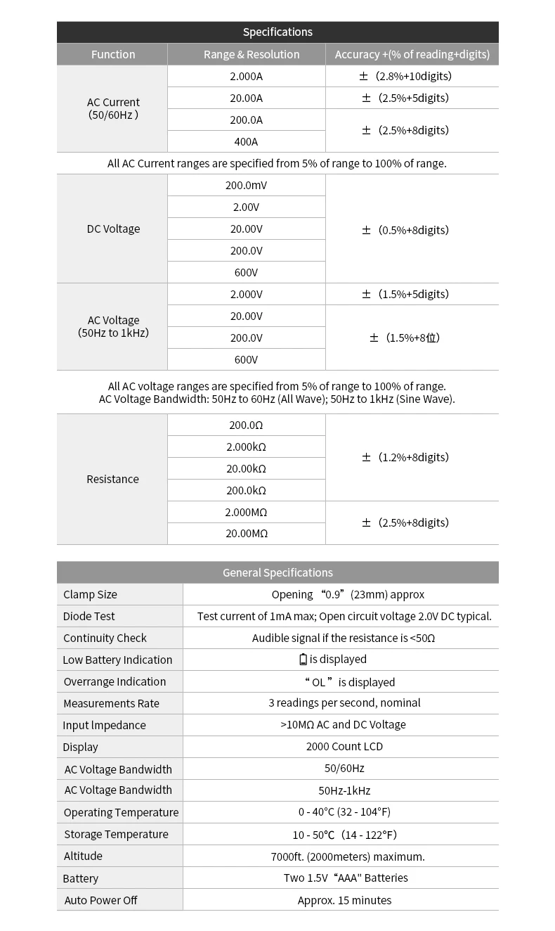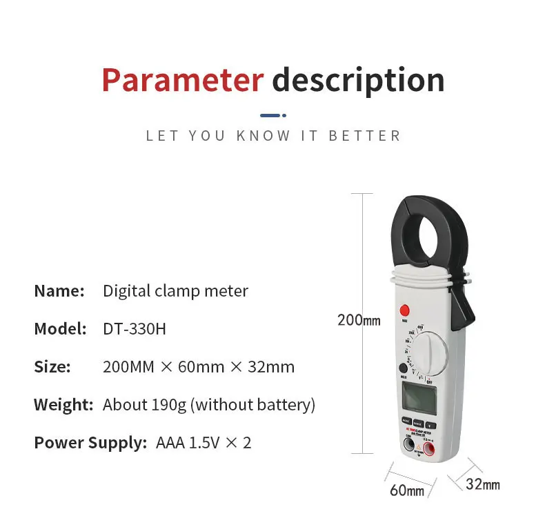 Pinza amperimétrica de calidad, producto antiguo, por lo que no tiene función NCV. Viene con buenos cables de sonda, la tapa de la batería tiene 2 tornillos que se fijan en metal (no en plástico). Las funciones son limitadas, máximo 400 A, etc. . Creo que es lo mismo que CEM DT-330 y RS Pro RS-330. Muy buena relación calidad-precio para esta calidad. Manual de usuario incluido en inglés. Utiliza pilas AAA x2 de 1,5 V (no alcalinas incluidas). Estoy muy satisfecho con :) La caja está un poco dañada pero el medidor funciona bien.