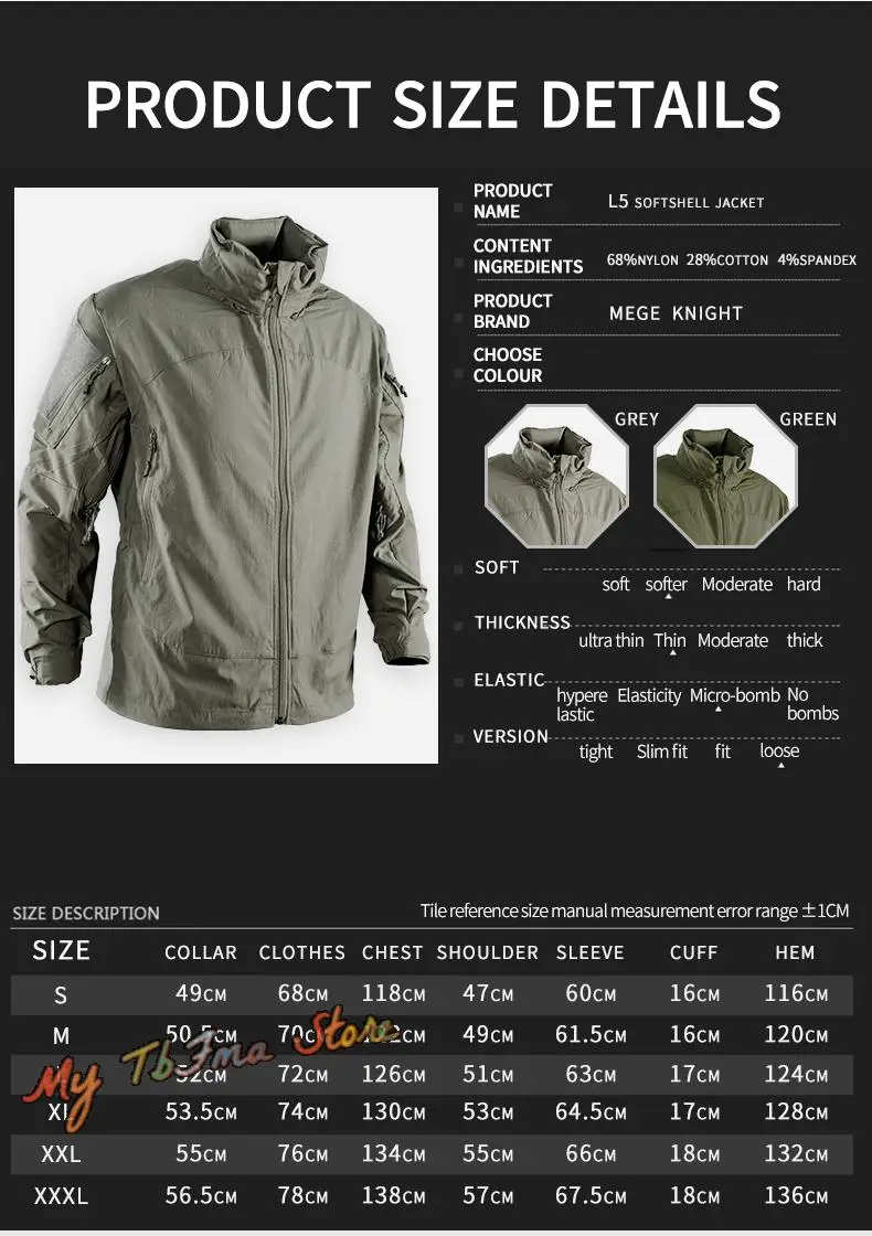 Chaqueta táctica de concha suave estilo PCU L5, ropa de carga de nailon, uniforme de combate, abrigo superior, cortavientos, resistente al viento, resistente al agua