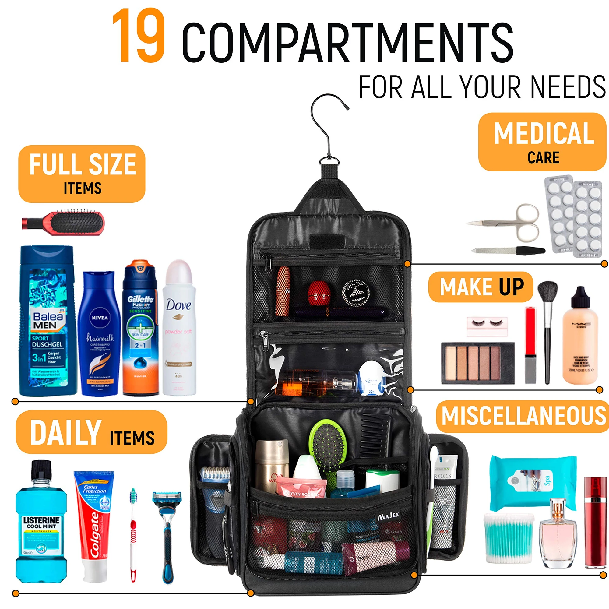 Neceser de viaje para hombres y mujeres, organizador de artículos de tocador colgante grande, bolsa de higiene impermeable con gancho giratorio de Metal para artículos de tocador