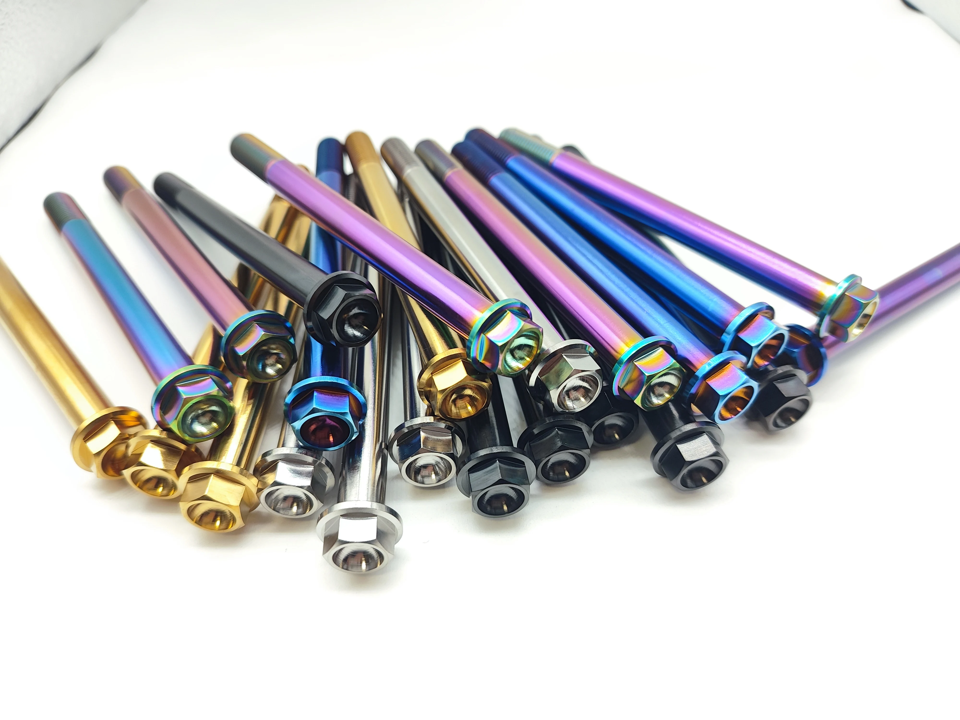 Negro/Color/Titanio 1x M10 X110mm/120MM/130MM tornillos de titanio cabeza de brida pernos de motocicleta accesorios de modificación de bicicleta diy