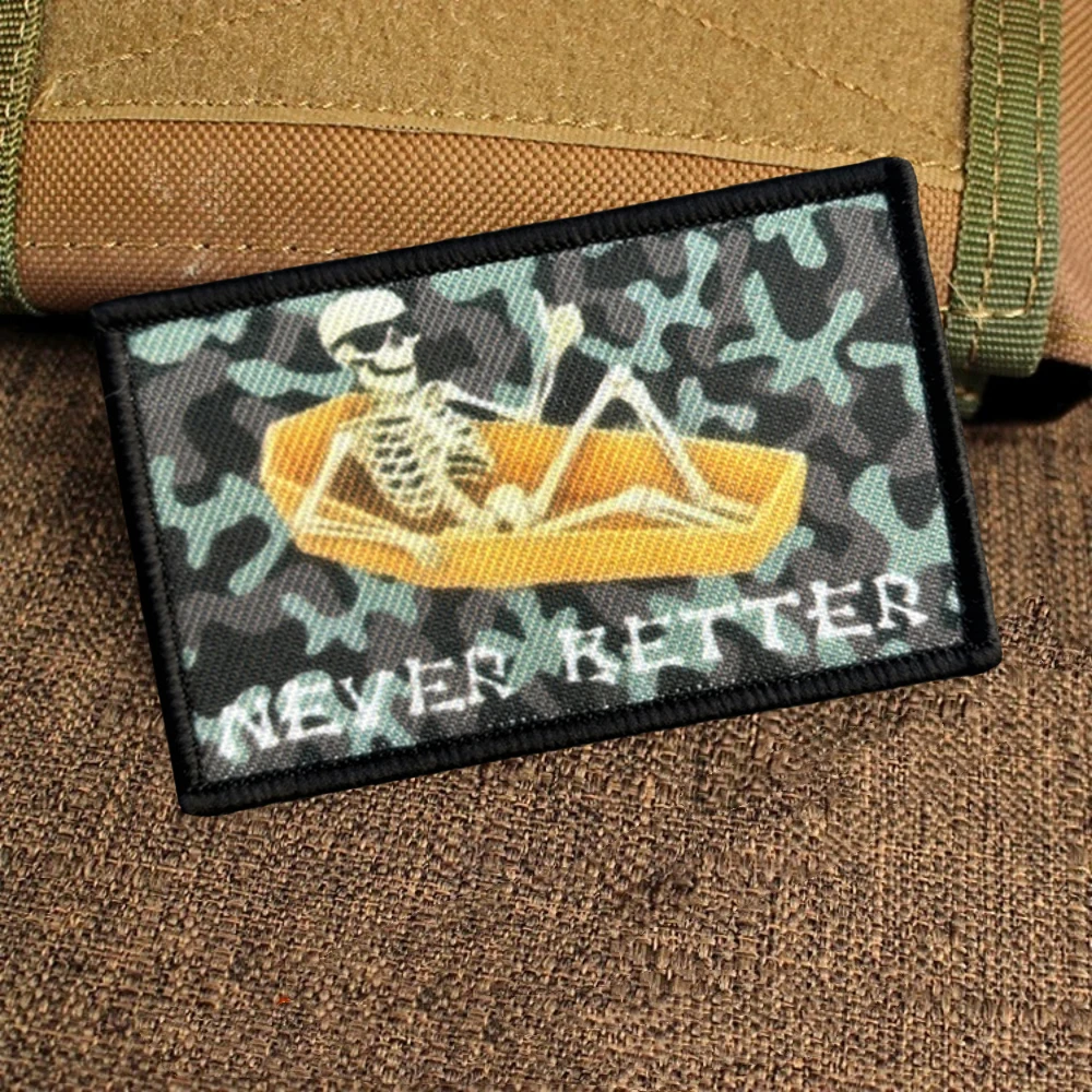 Never Better-insignia de moral de calavera, parches tácticos para ropa, parche de gancho y bucle, brazalete militar, pegatinas decorativas para mochila