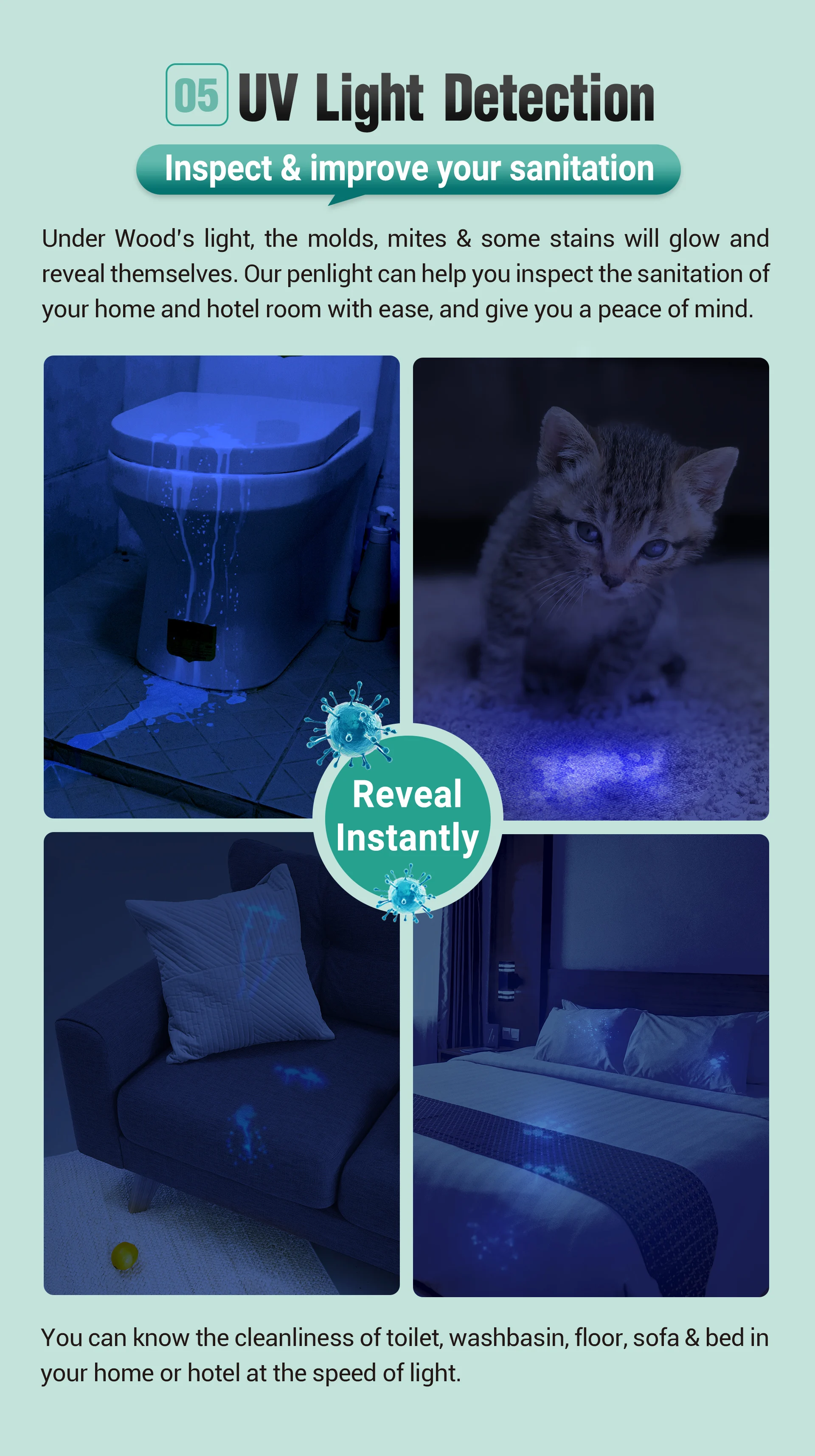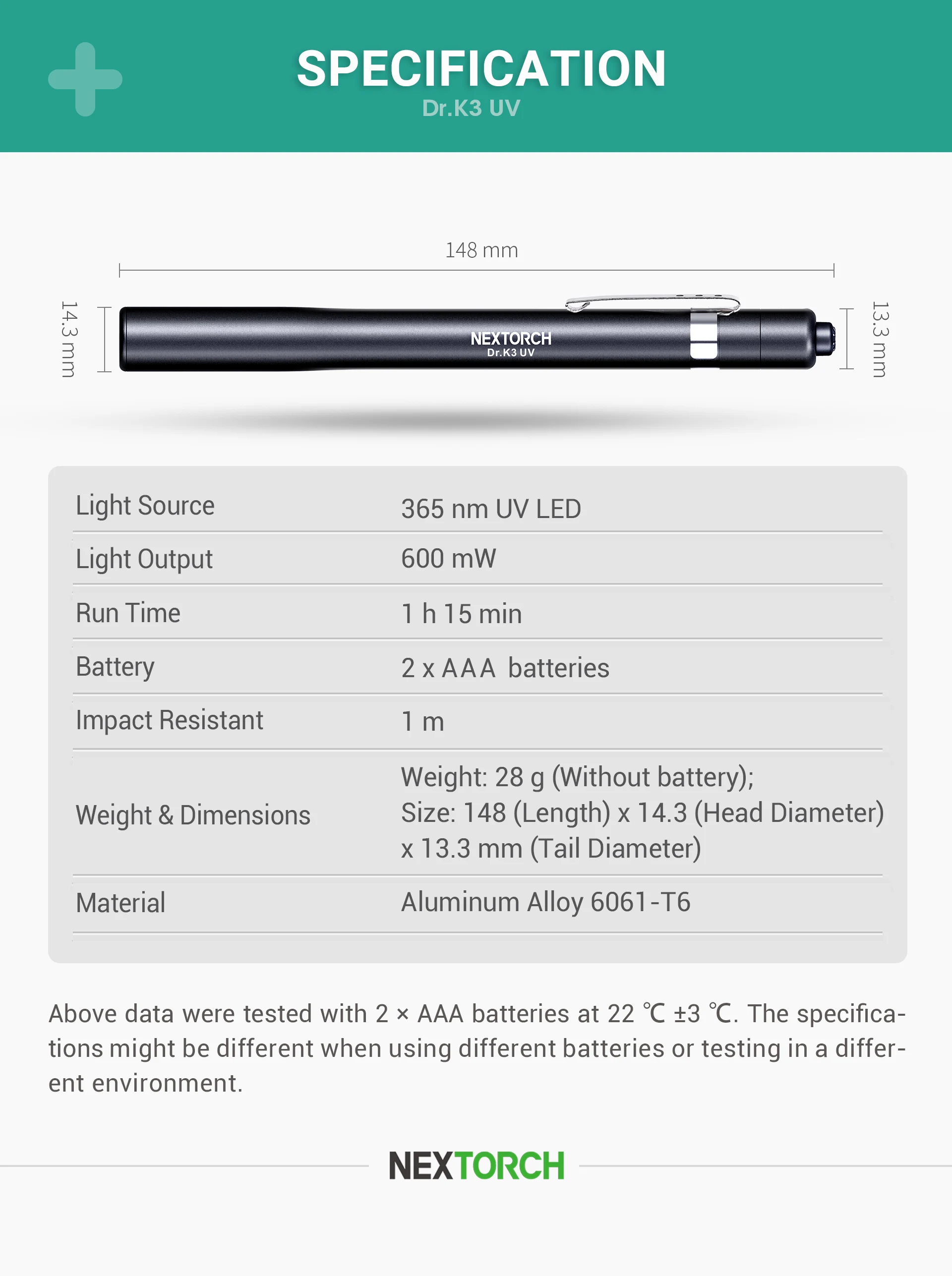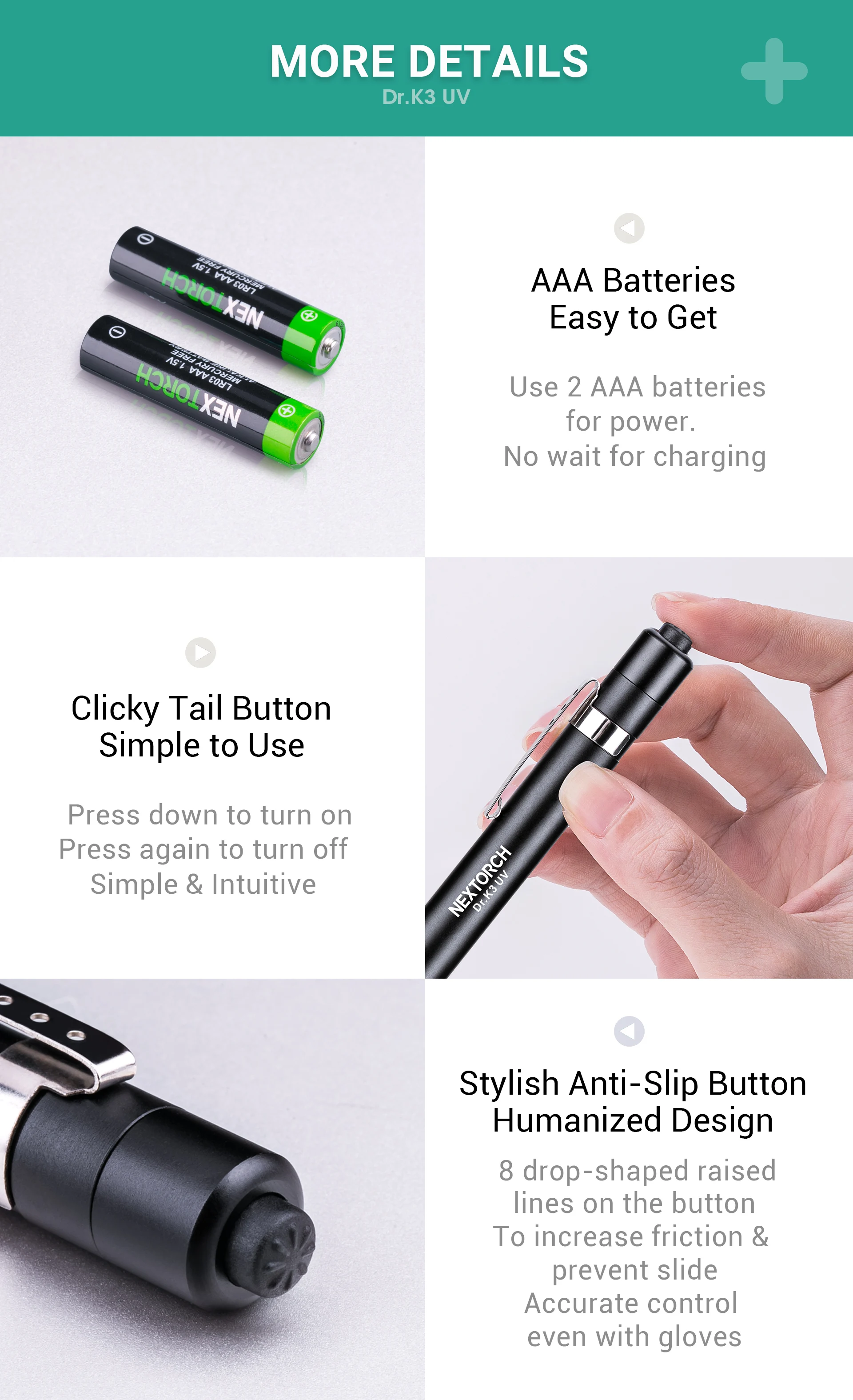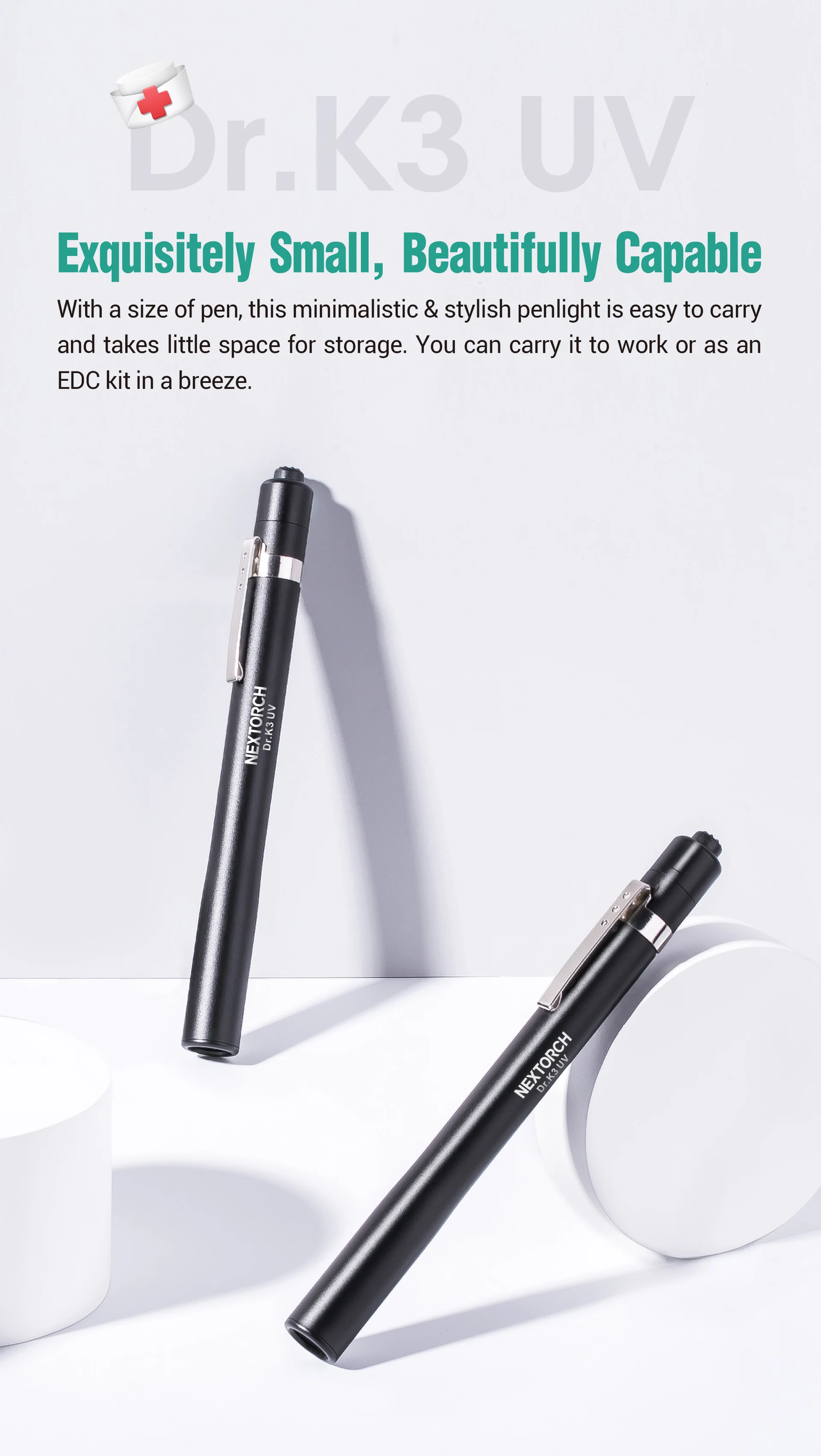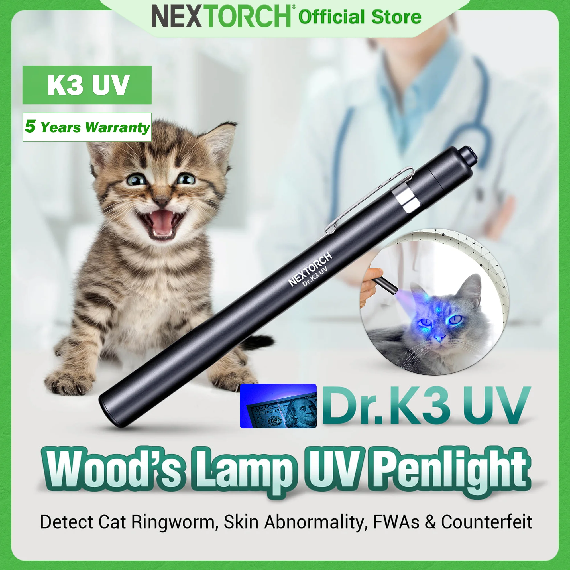 NEXTORCH K3 UV LED 365 nm Linterna EDC Linterna portátil, para piel, tiña, fluorescencia, identificación anti-falsificación