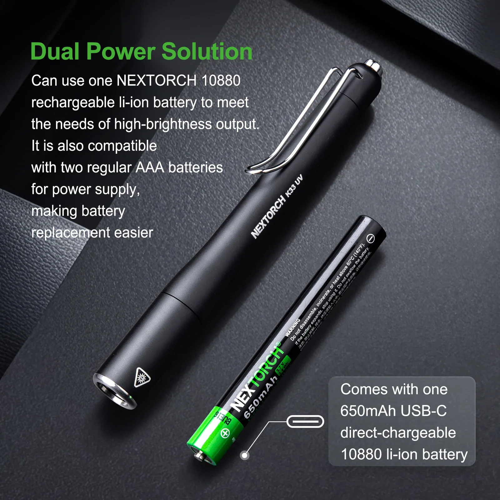 NEXTORCH K33 Linterna de luz UV LED recargable UV, linterna portátil UV de 365 nm, antorcha UV profesional de alta potencia de 1300 mW