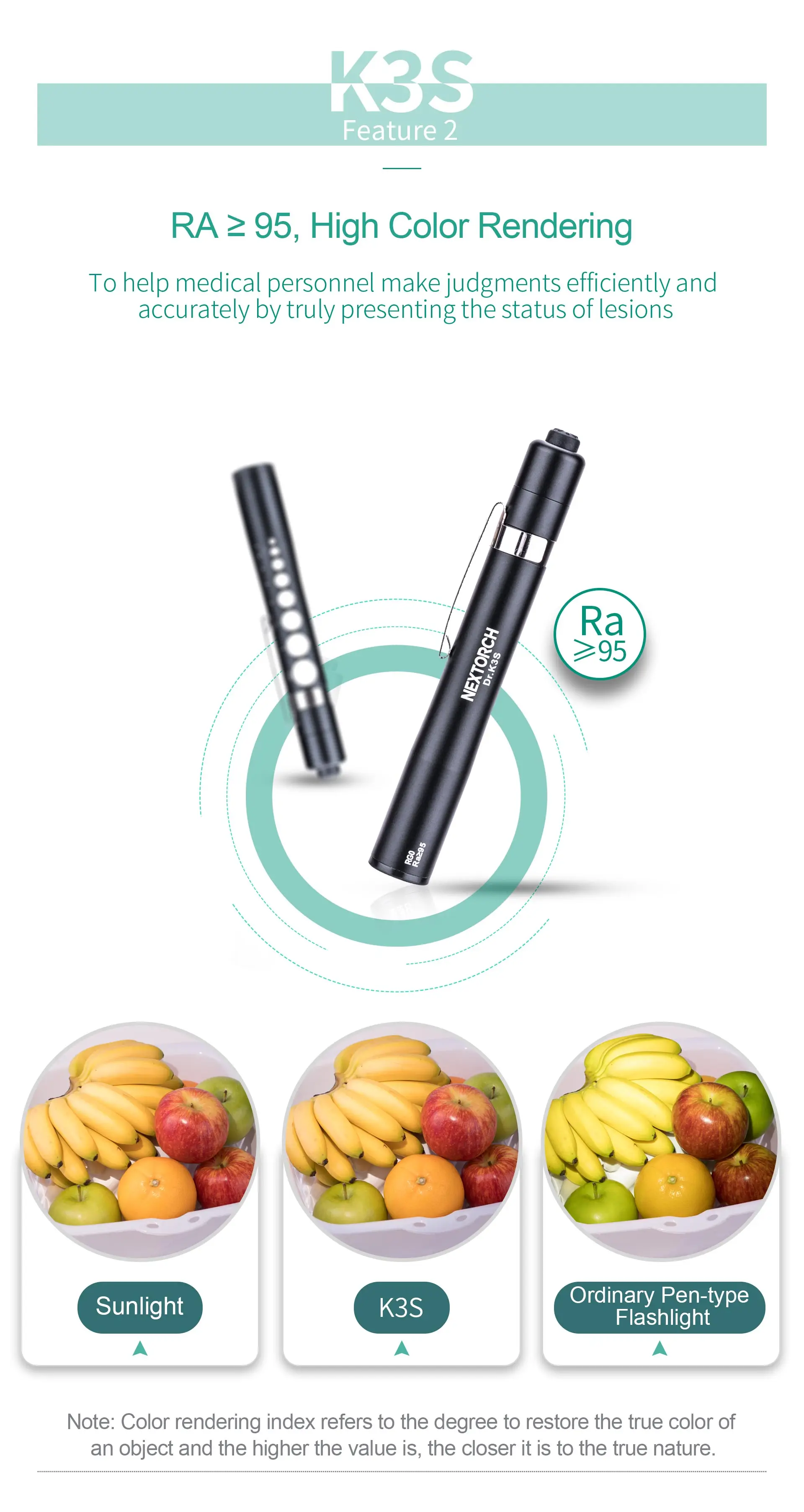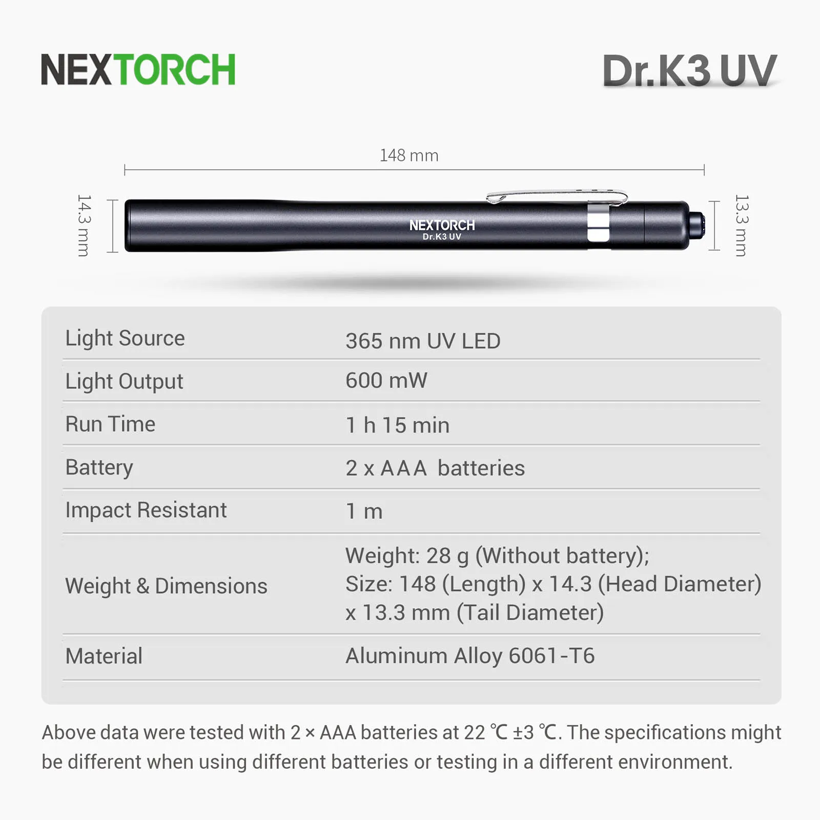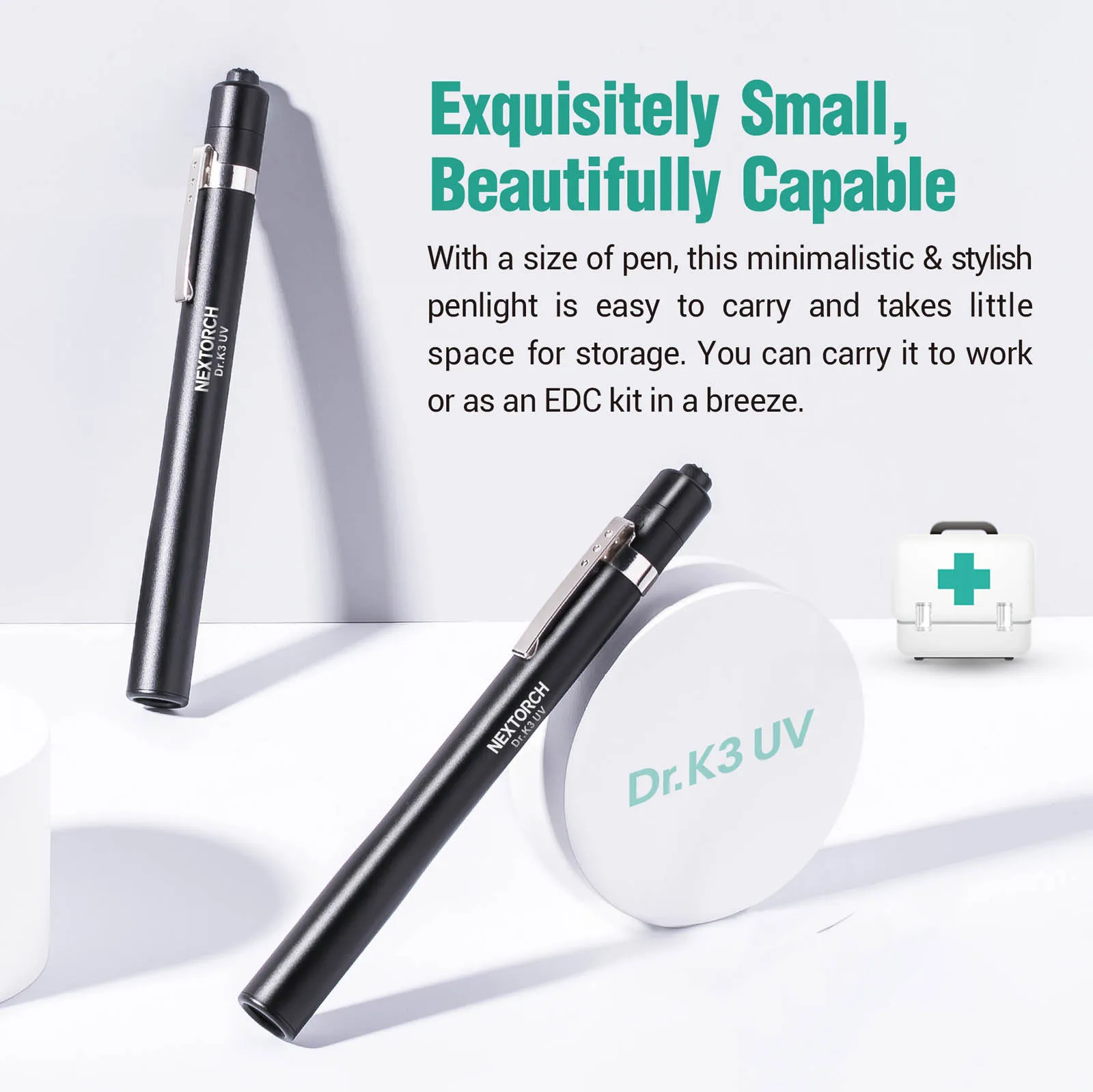 NEXTORCH-linterna médica profesional serie K3, linterna UV de 365 nm, sin peligro de luz azul, inspección diaria, LED EDC