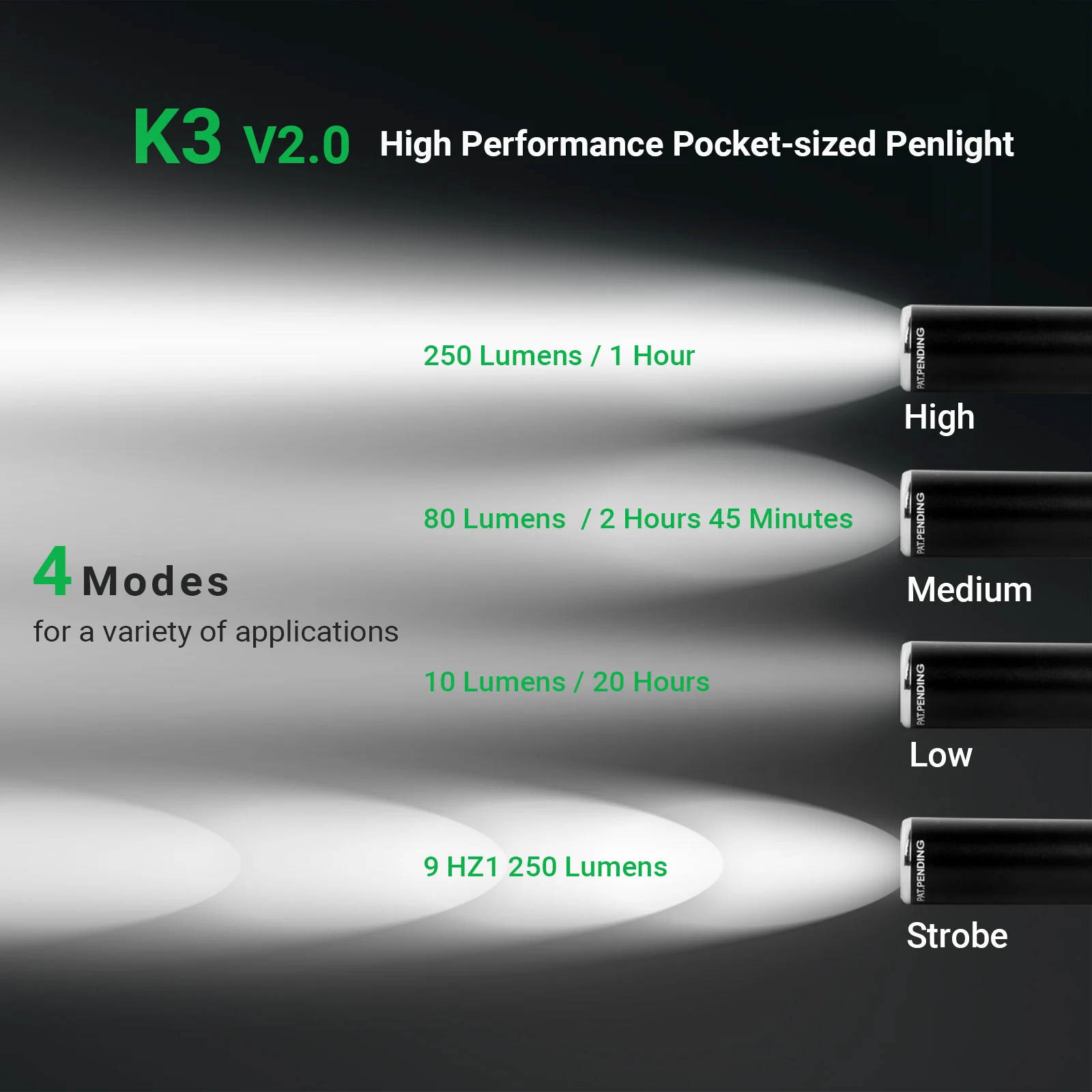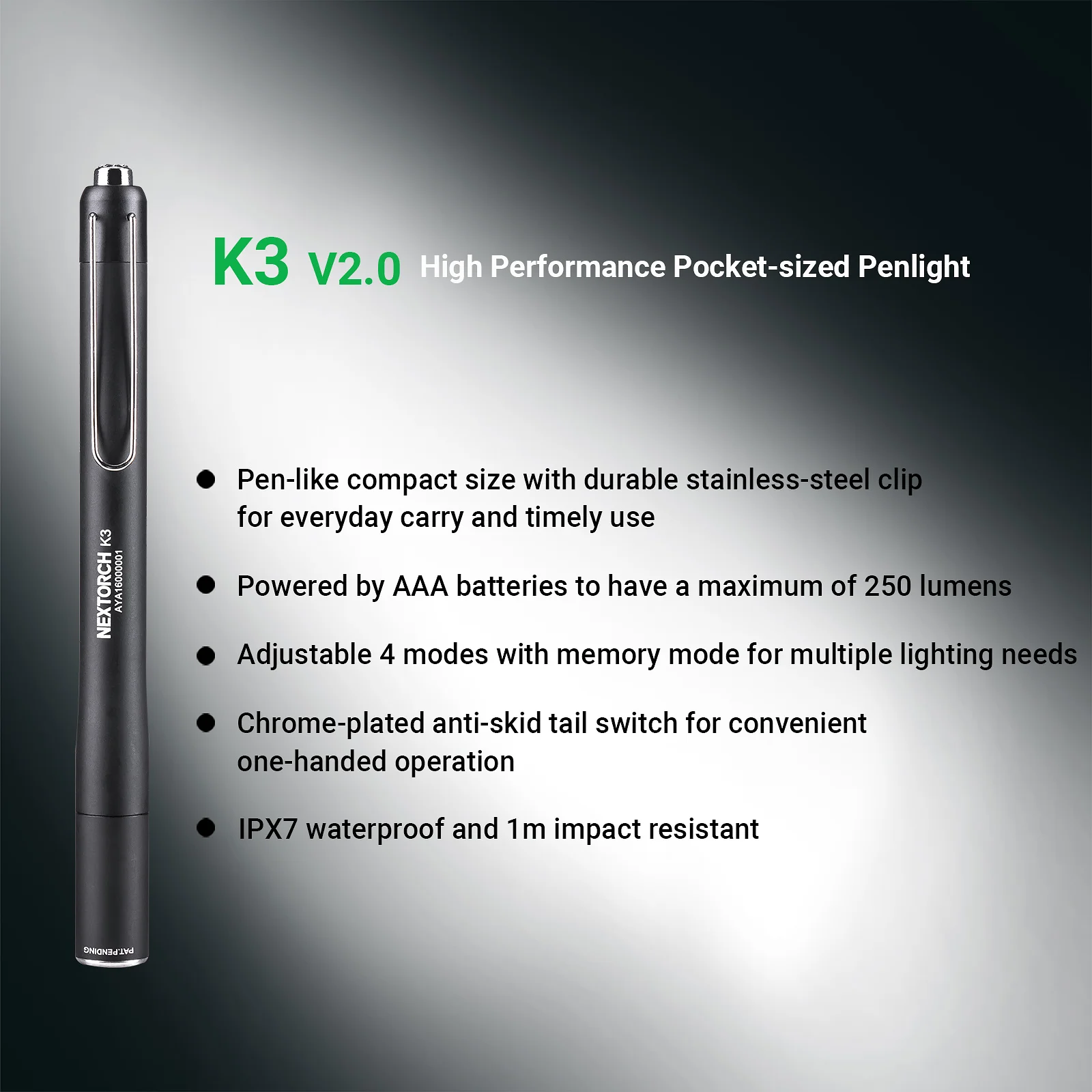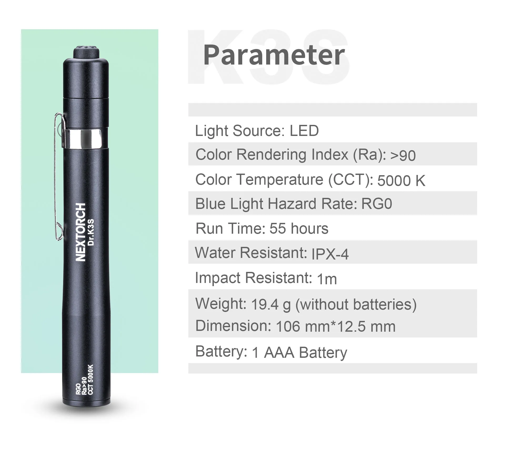 NEXTORCH-linterna médica profesional serie K3, linterna UV de 365 nm, sin peligro de luz azul, inspección diaria, LED EDC