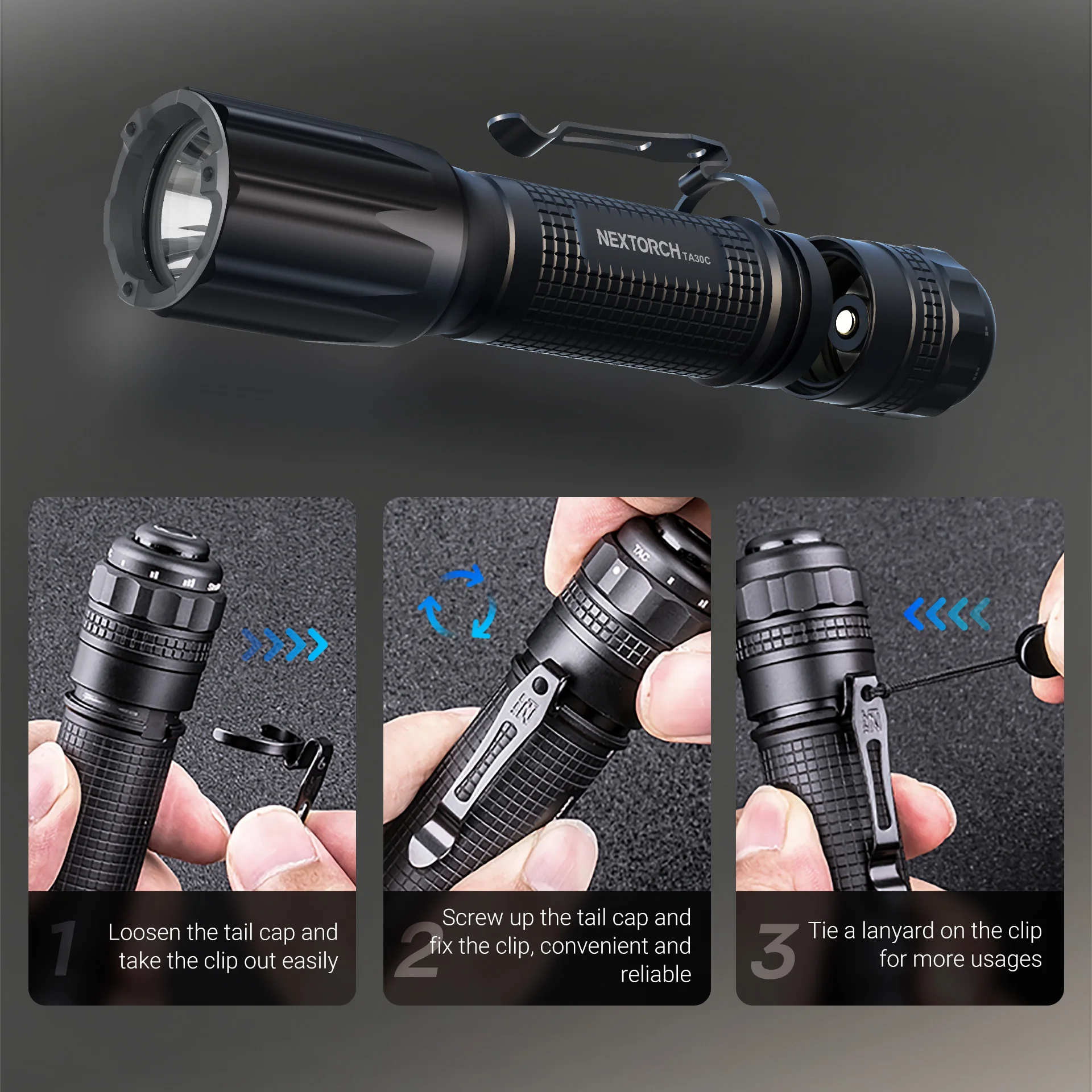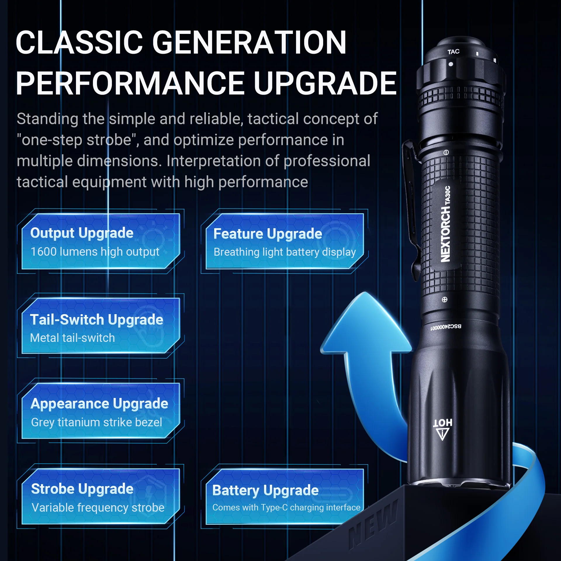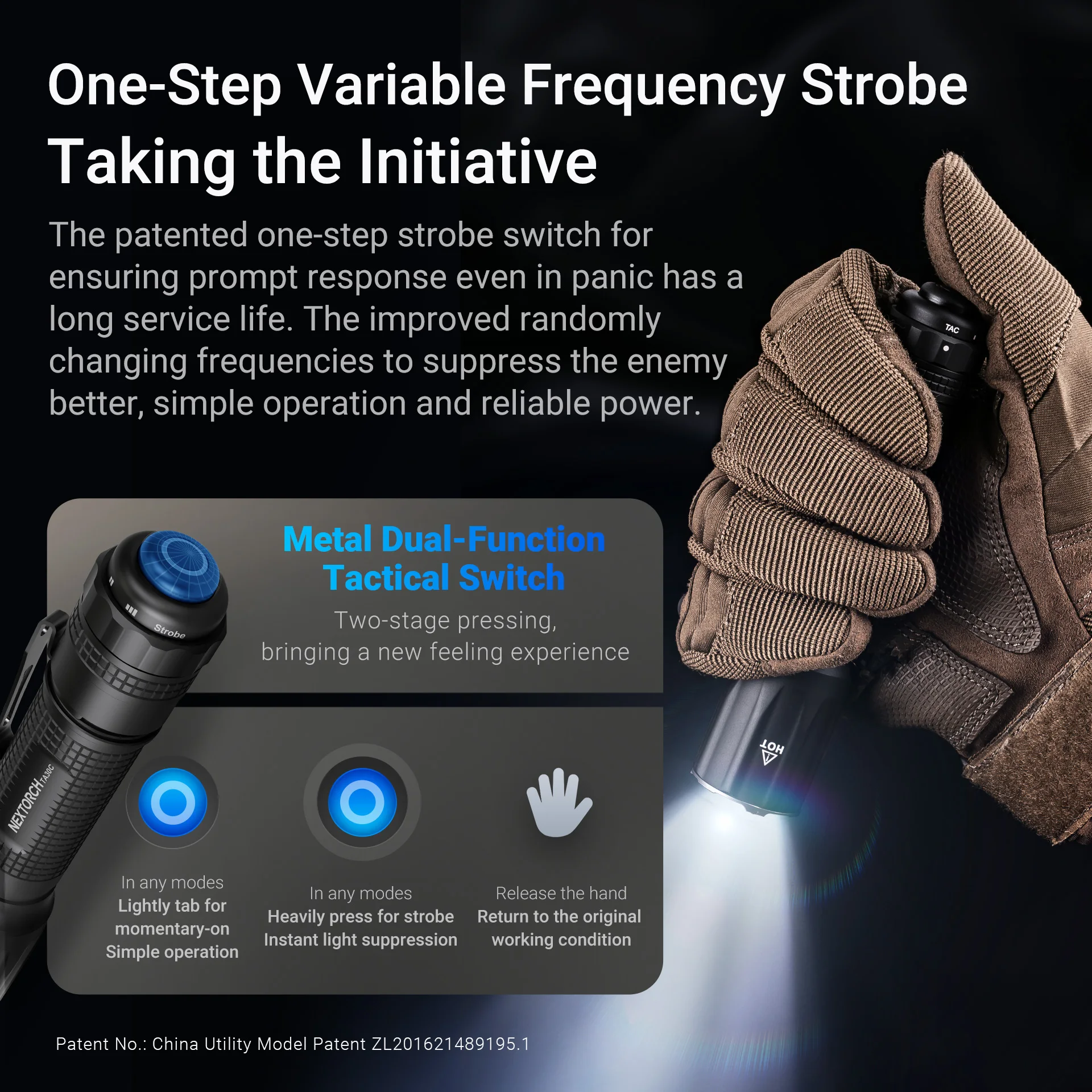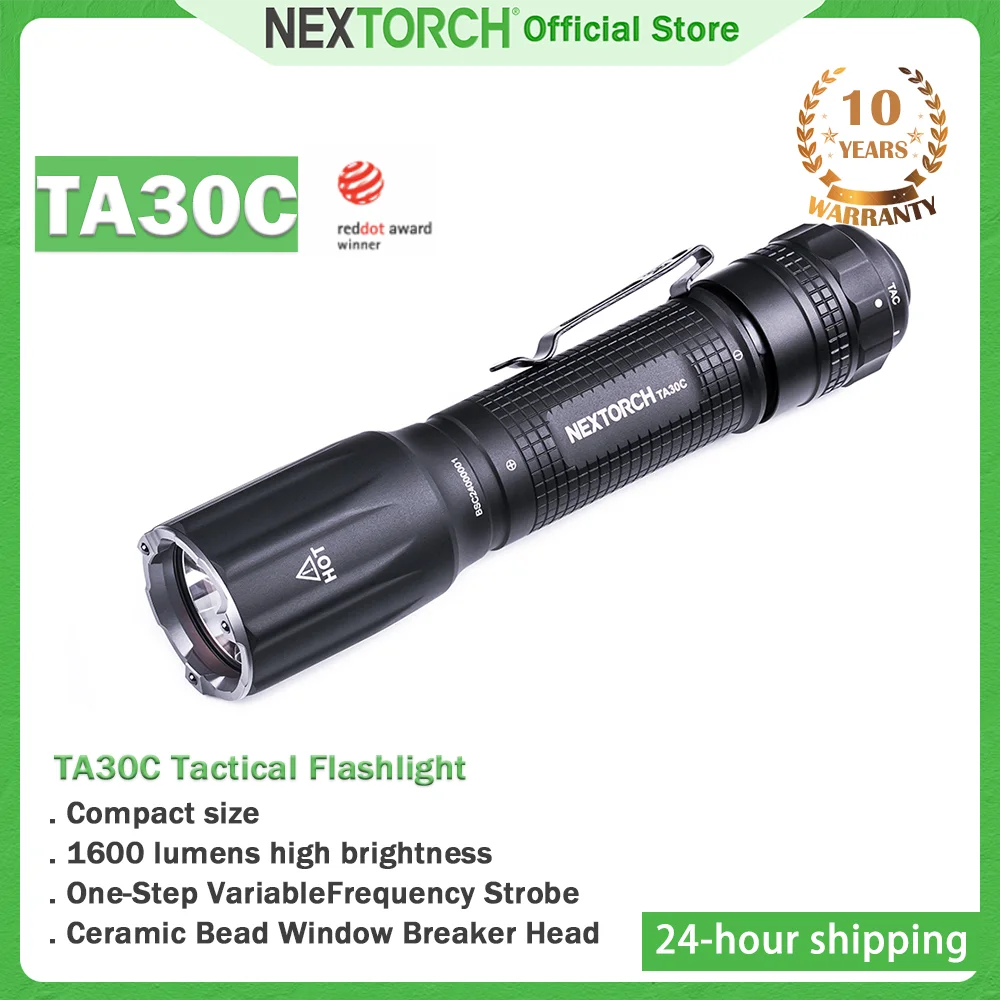 NEXTORCH-linterna táctica TA30C, antorcha de alta potencia, alto brillo, antorcha recargable, con anillo de dedo táctico