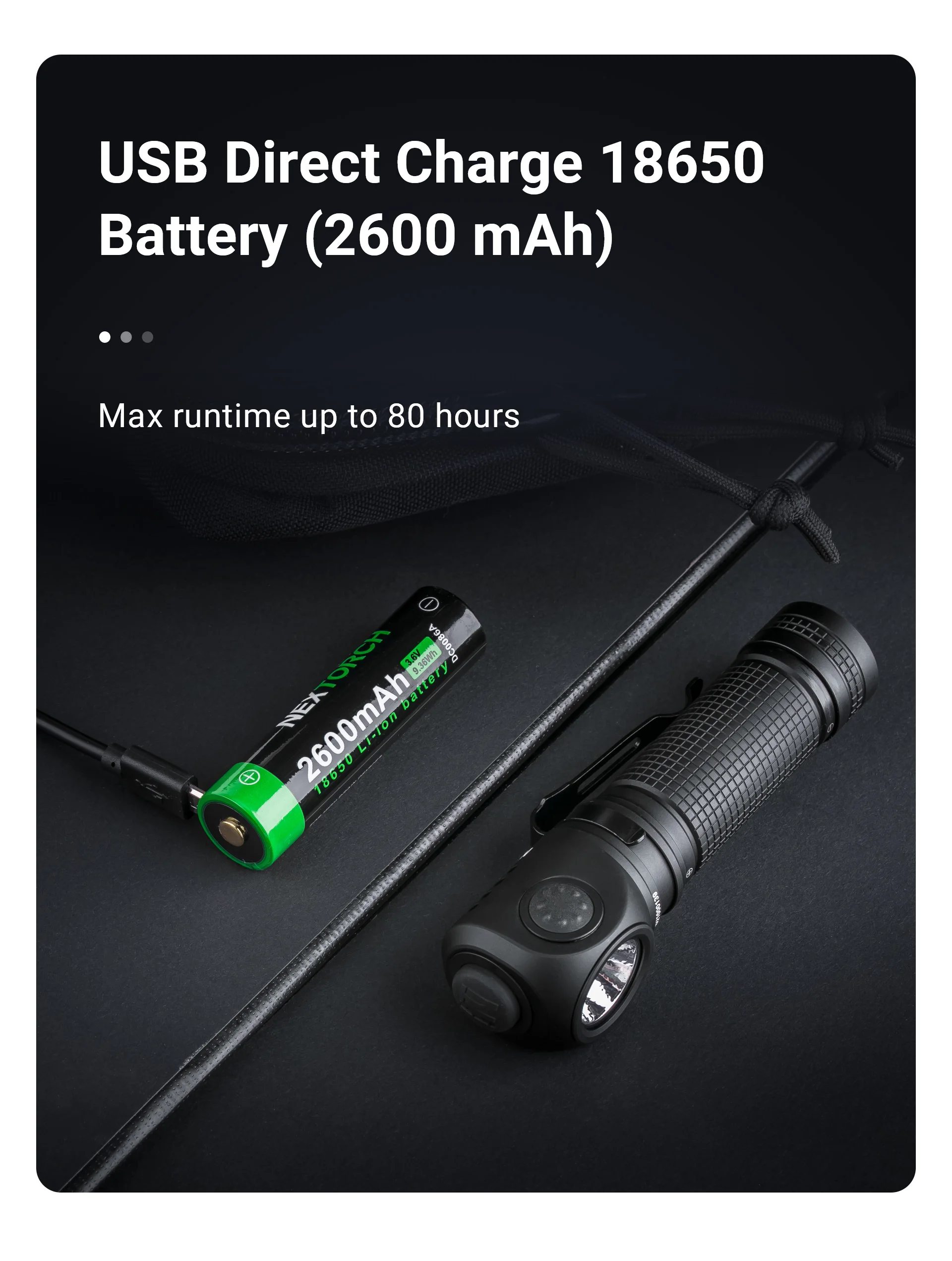 Alerta íntima de batería baja y fuente de alimentación de batería 18650 de alta capacidad con carga directa USB, para aliviar la ansiedad por la batería.