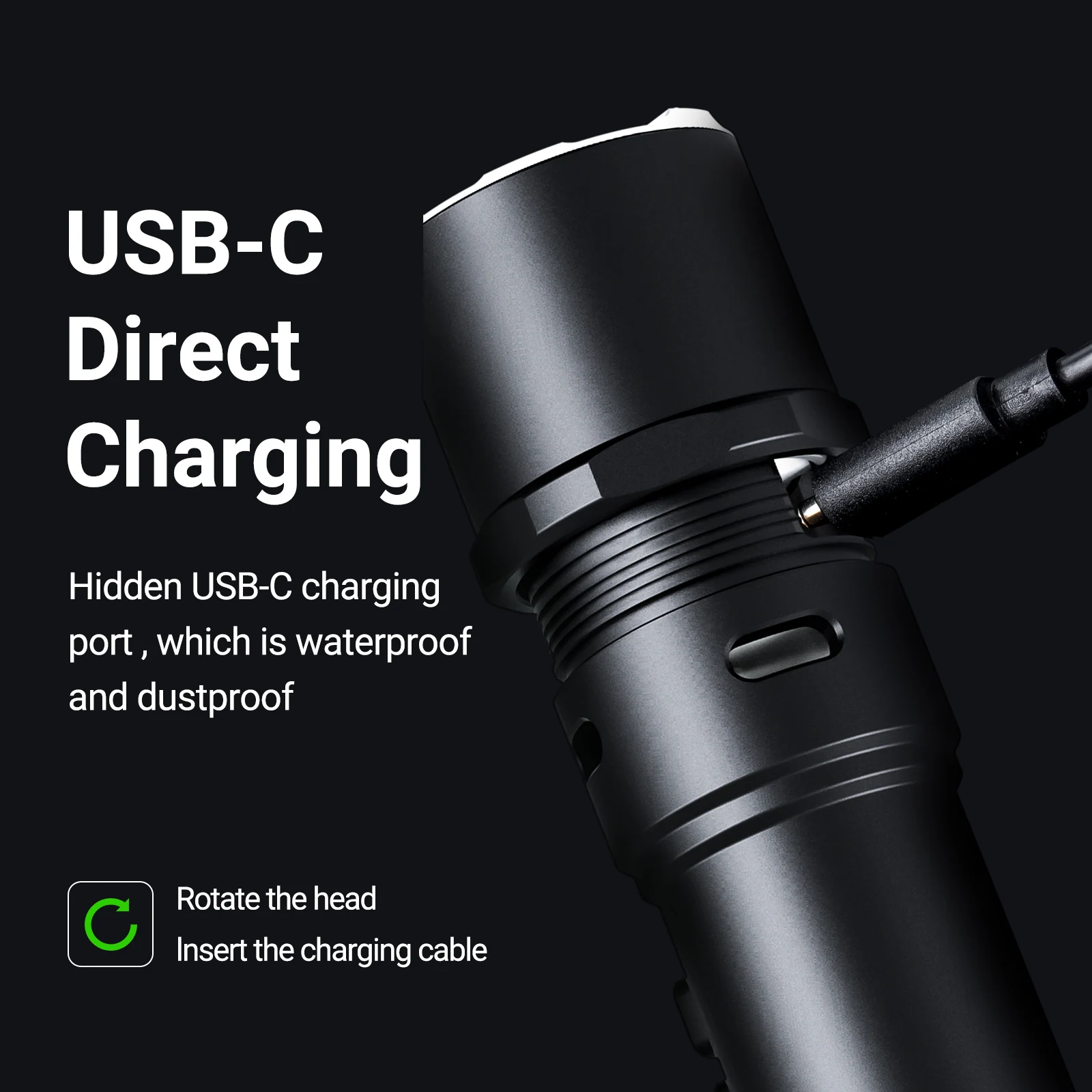 3.Alto brillo de 1600 lúmenes + alcance ultralargo de 305 metros para satisfacer la demanda de búsqueda