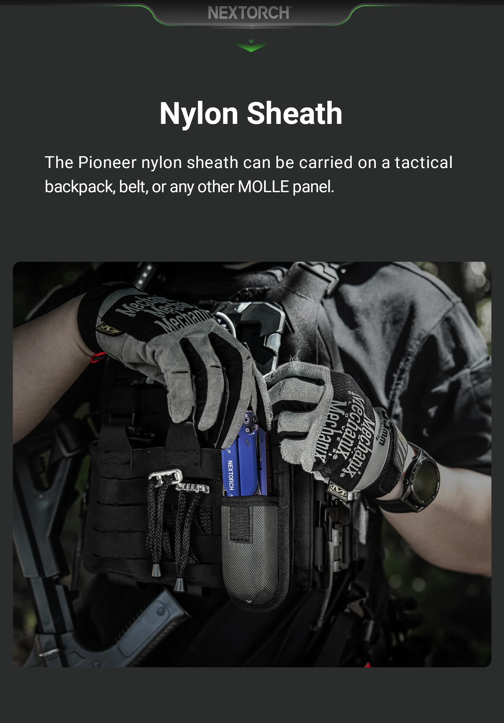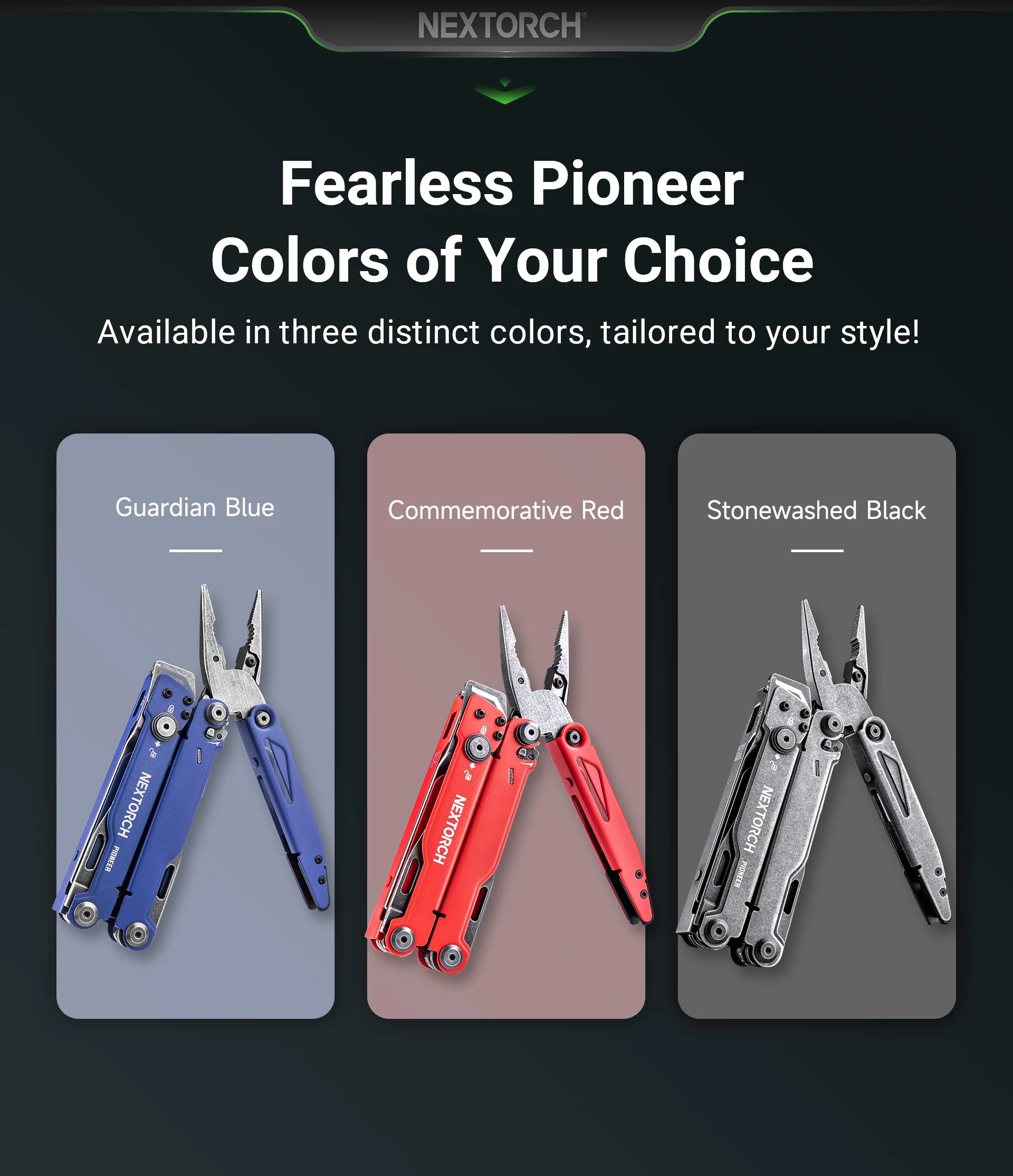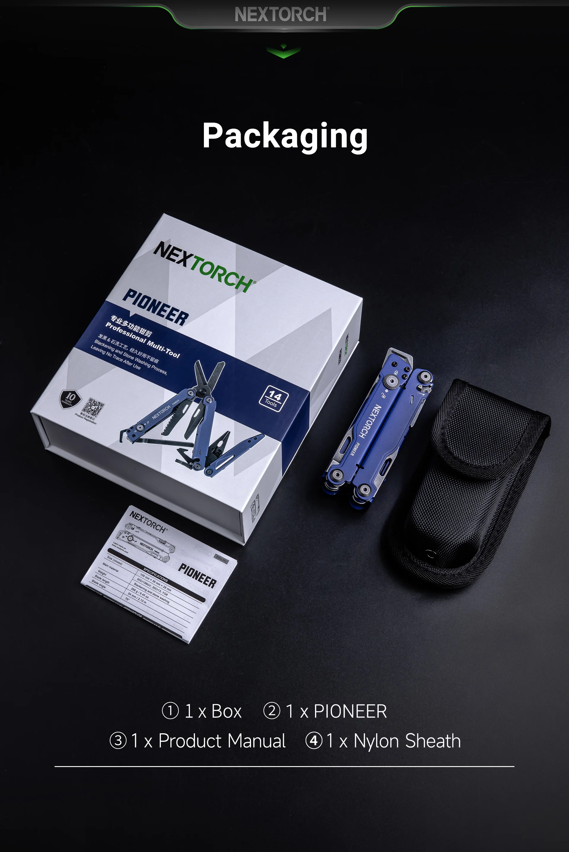NEXTORCH PIONEER Alicates para herramientas multifunción Alicates plegables EDC herramientas manuales para exteriores Multiherramienta para cuero, extinción de incendios, pesca
