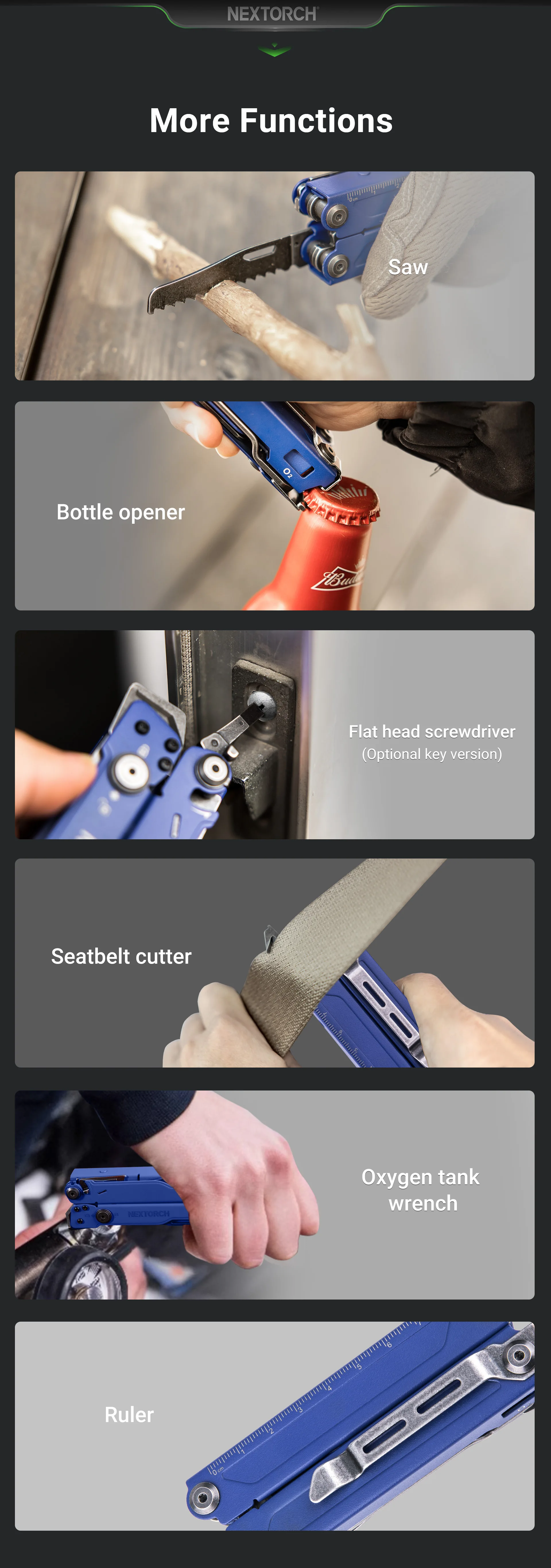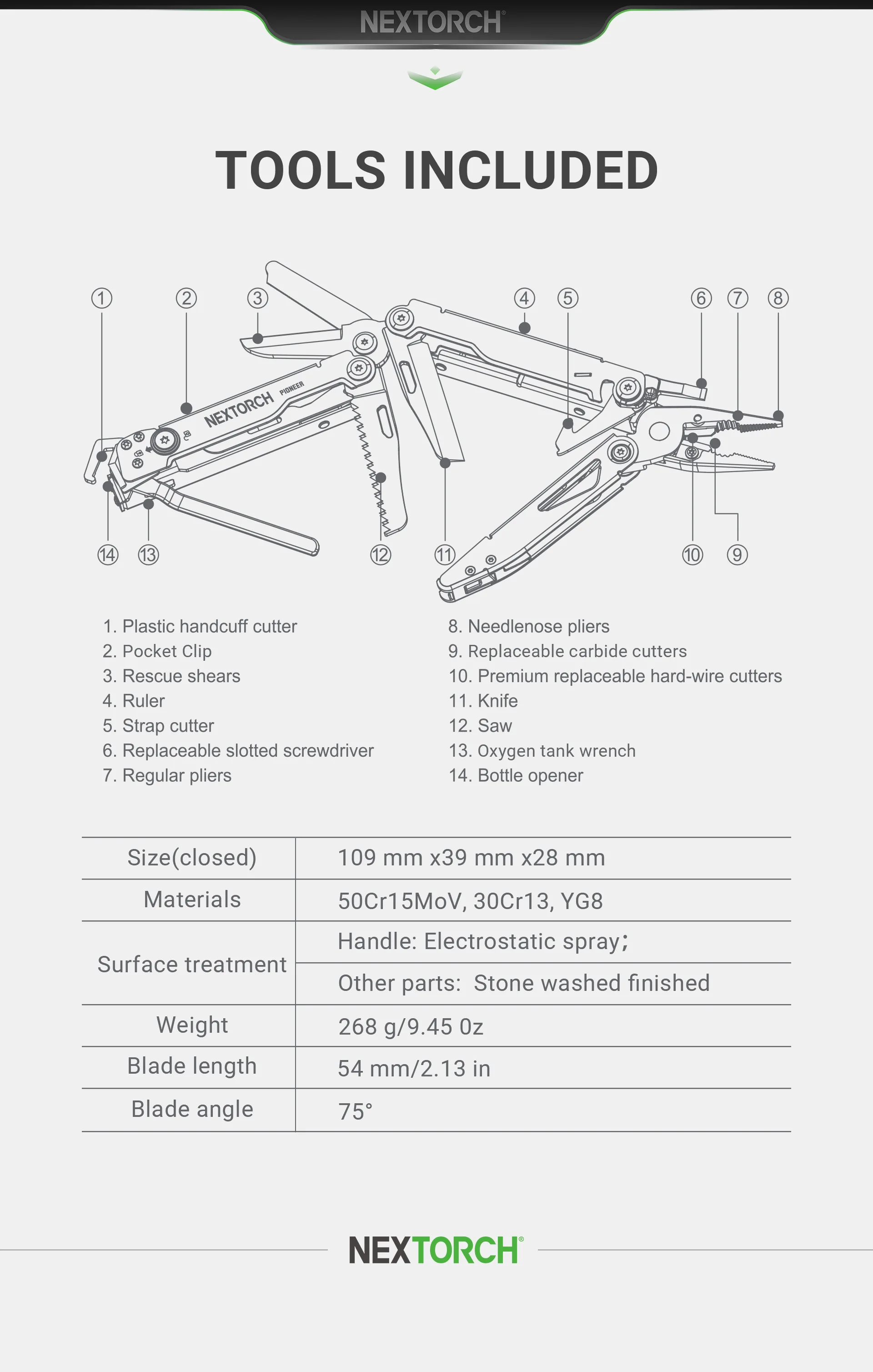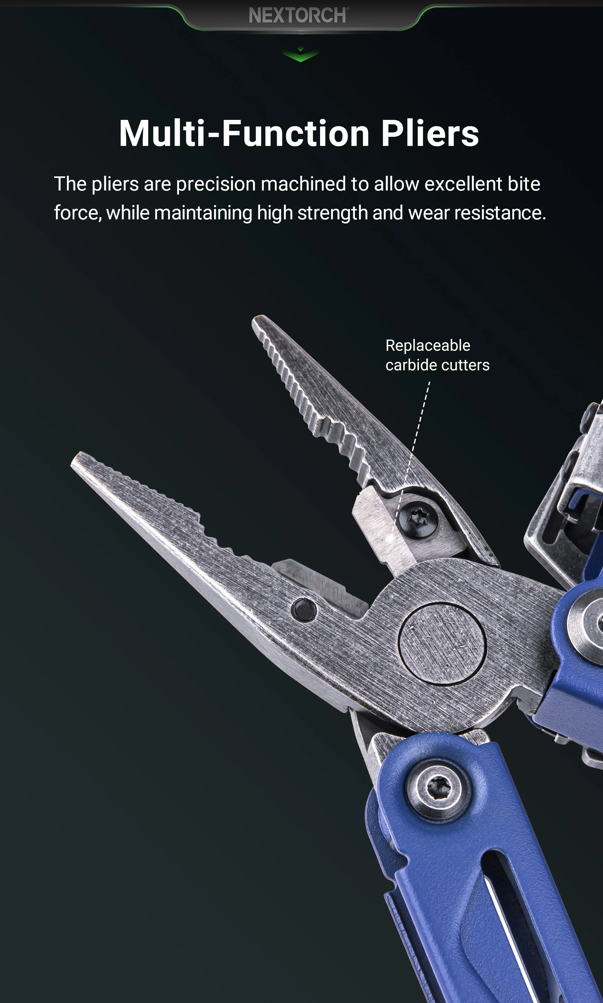 NEXTORCH PIONEER Alicates para herramientas multifunción Alicates plegables EDC herramientas manuales para exteriores Multiherramienta para cuero, extinción de incendios, pesca