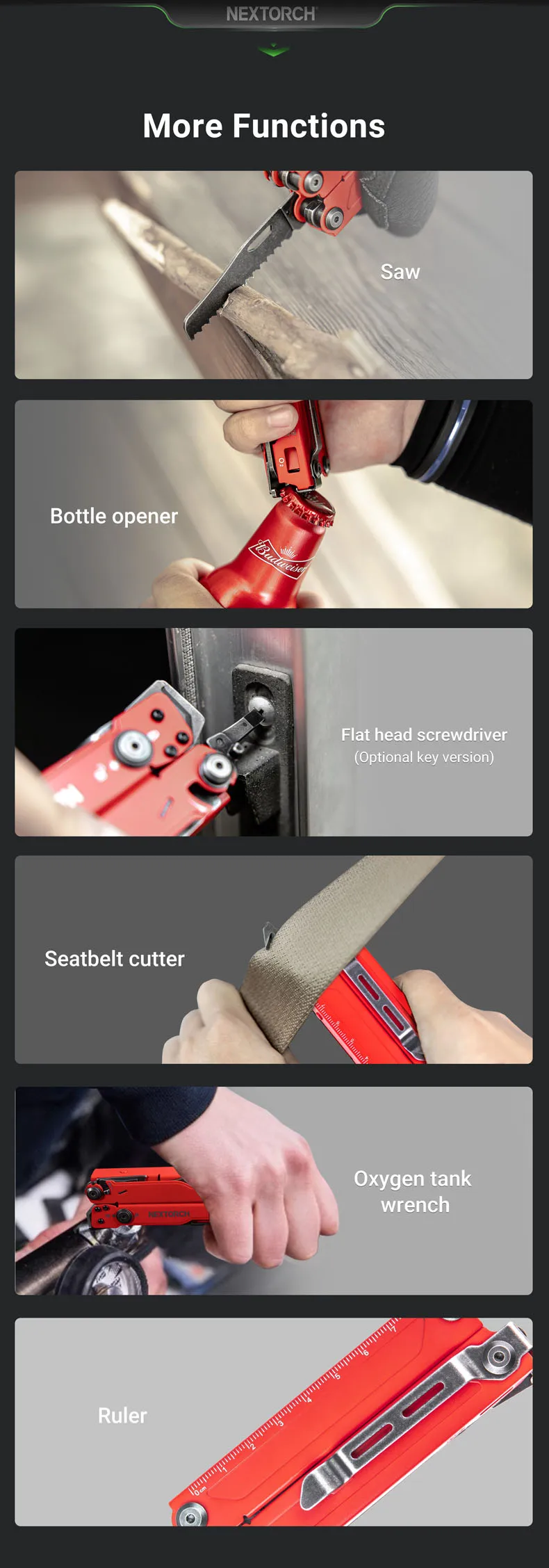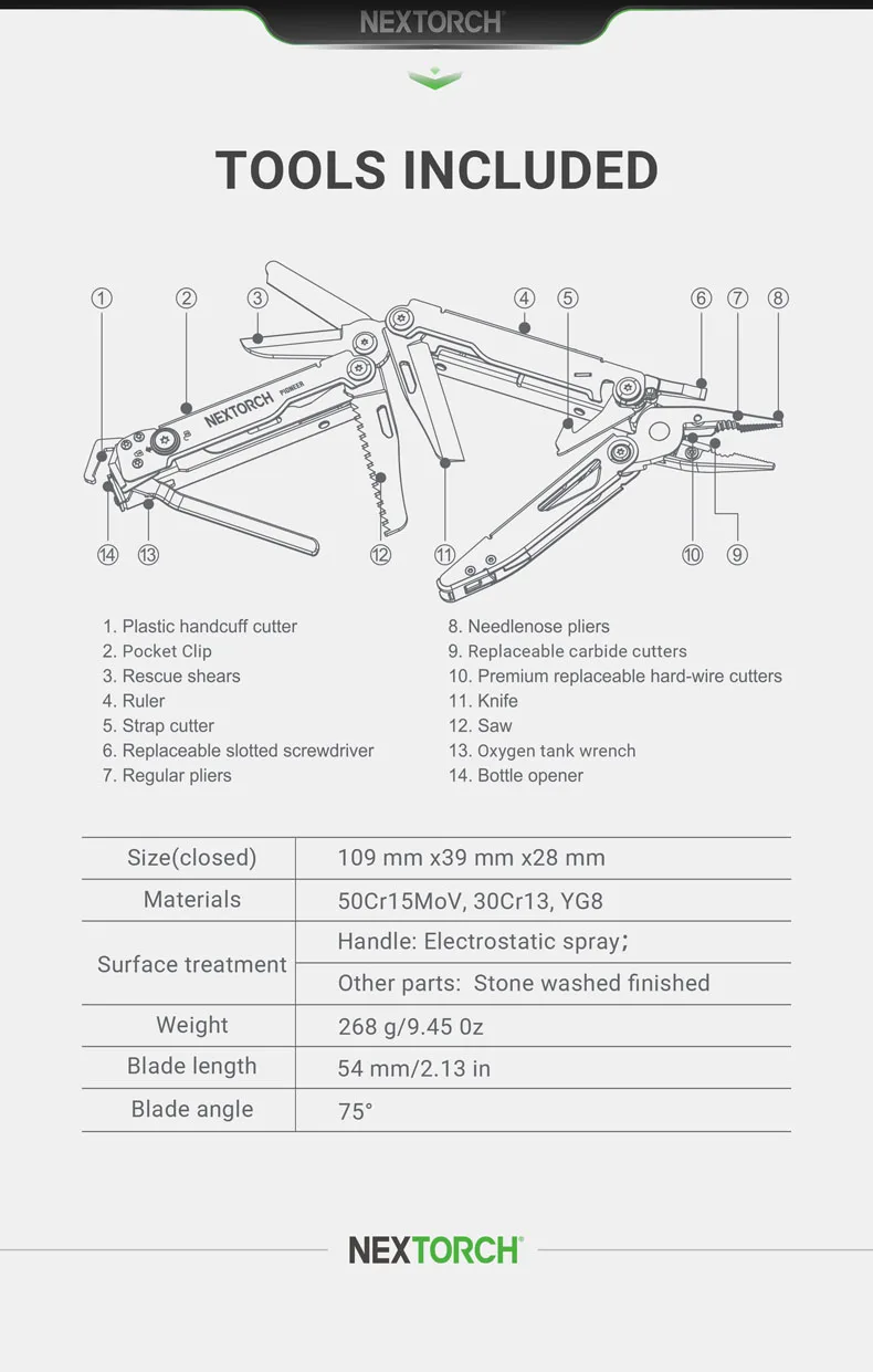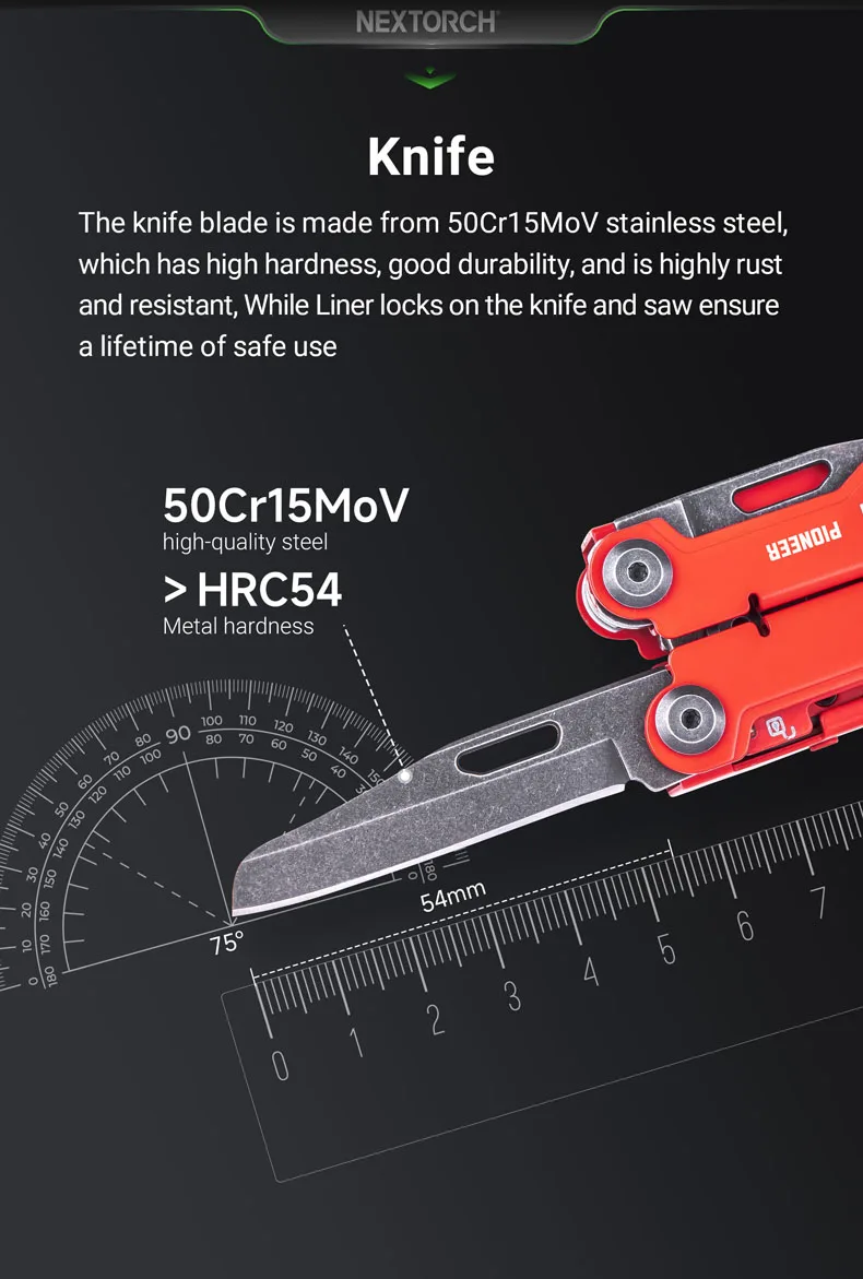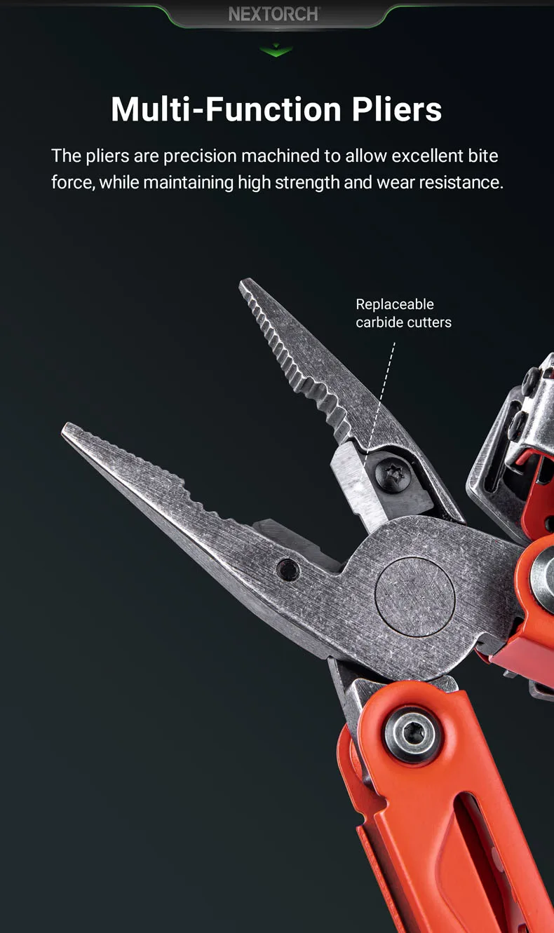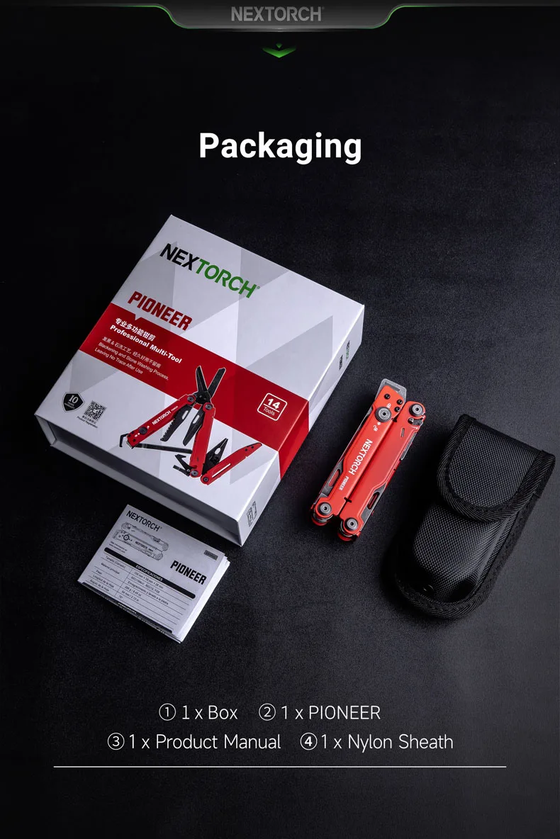 NEXTORCH Pioneer-Alicates multiherramienta 14 en 1, herramientas manuales plegables, portátiles, multifuncionales, EDC, supervivencia al aire libre, equipos de Camping