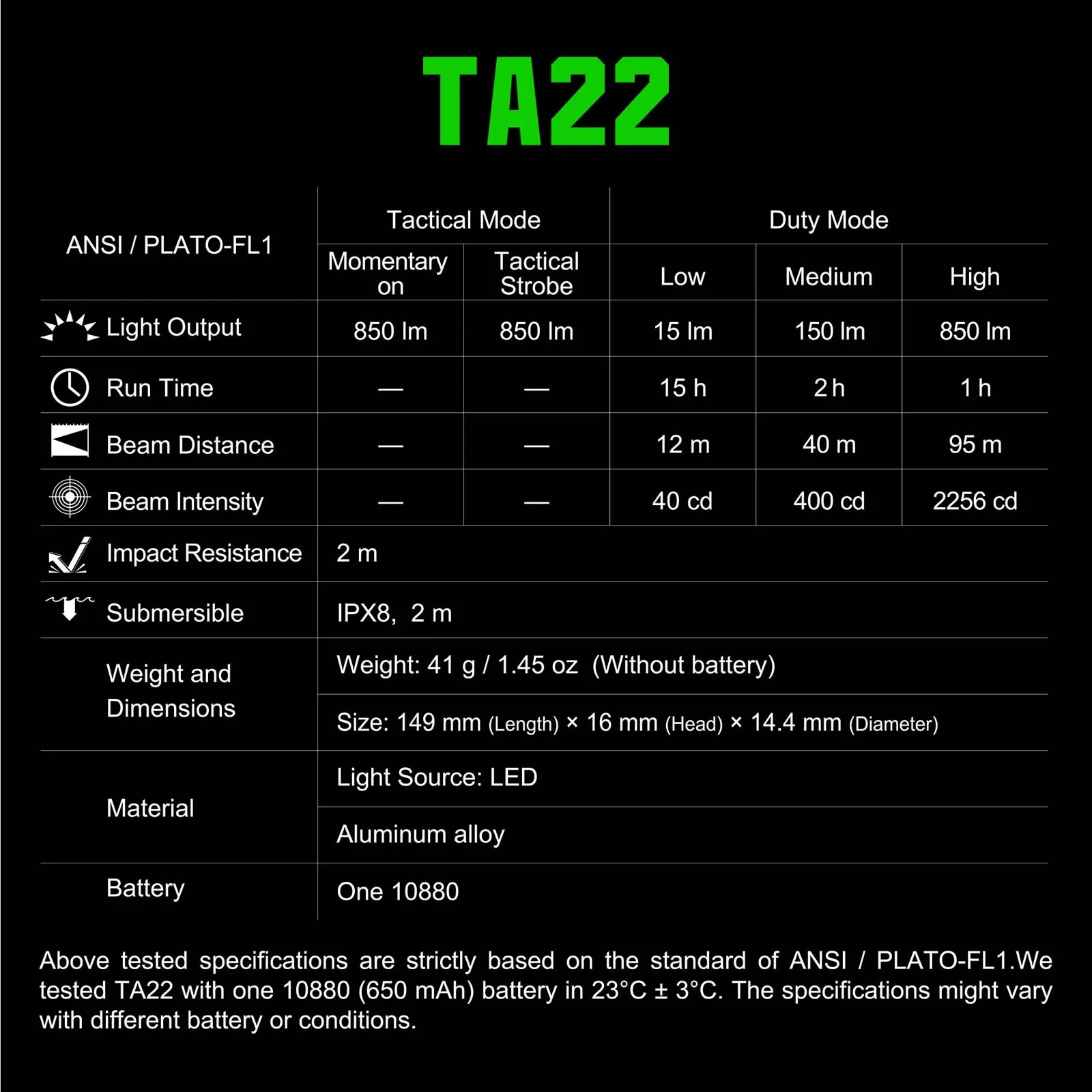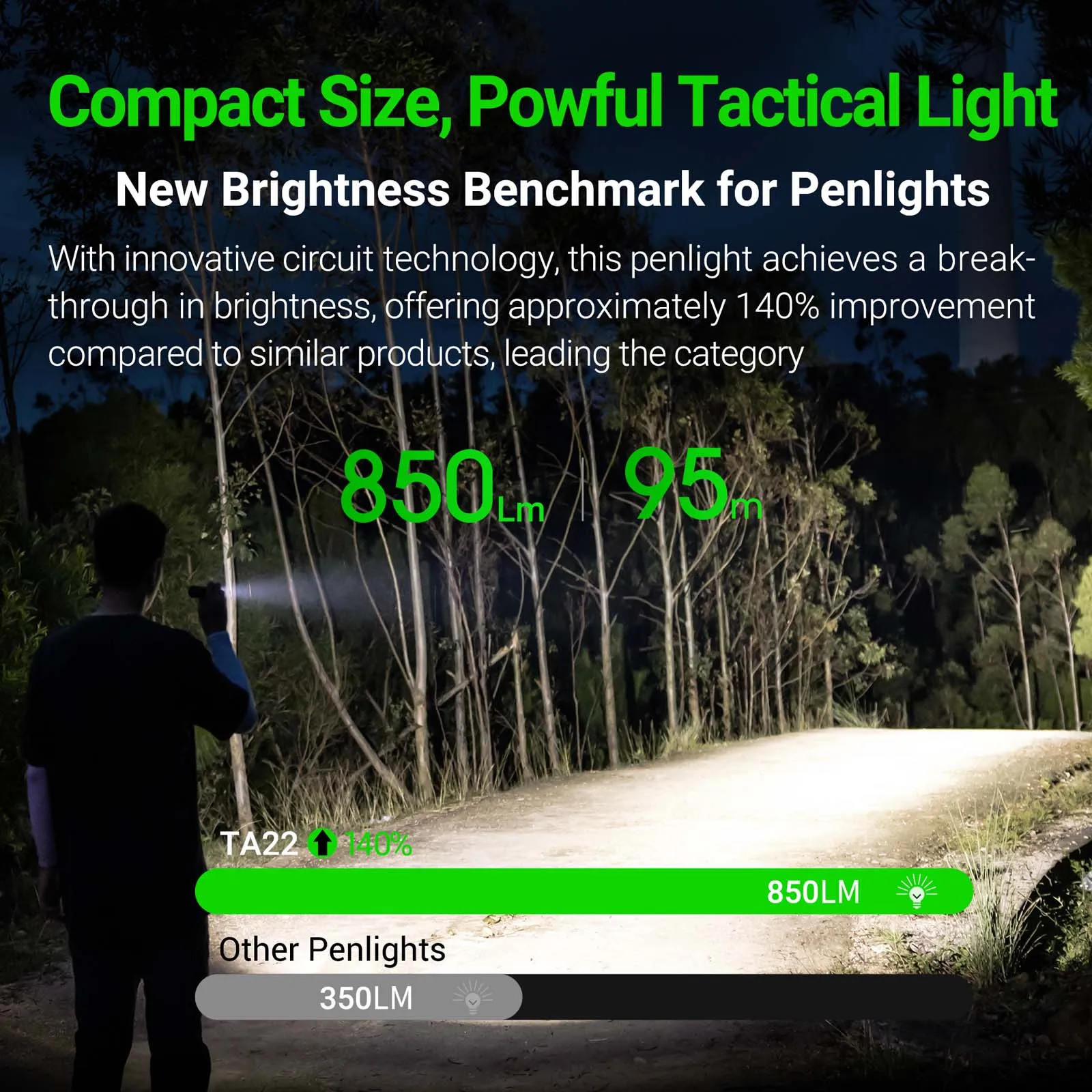 1TA22 tiene 850 lúmenes de iluminación de alto brillo, diseño de grupo multimodo, conmutación precisa con un solo botón de tres modos