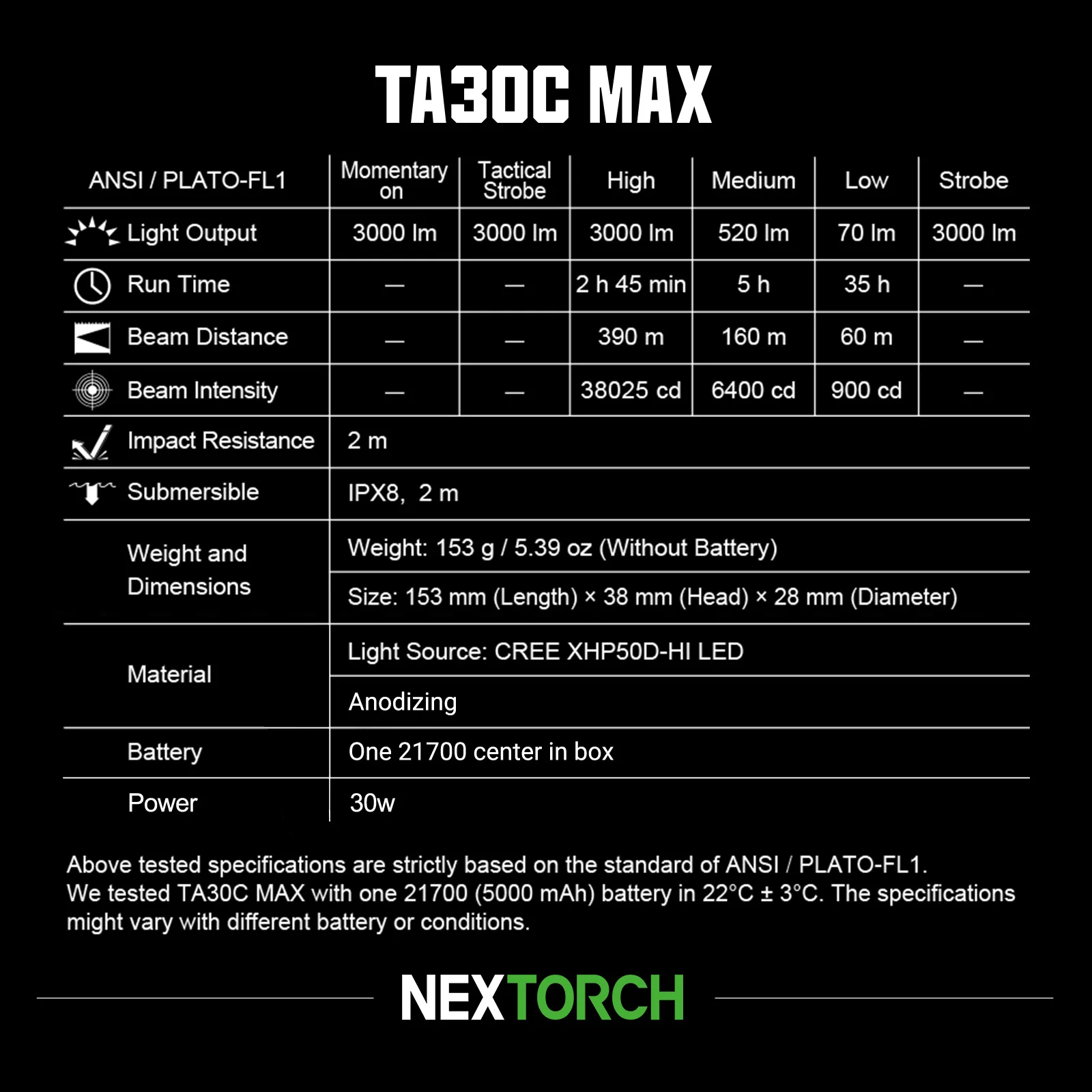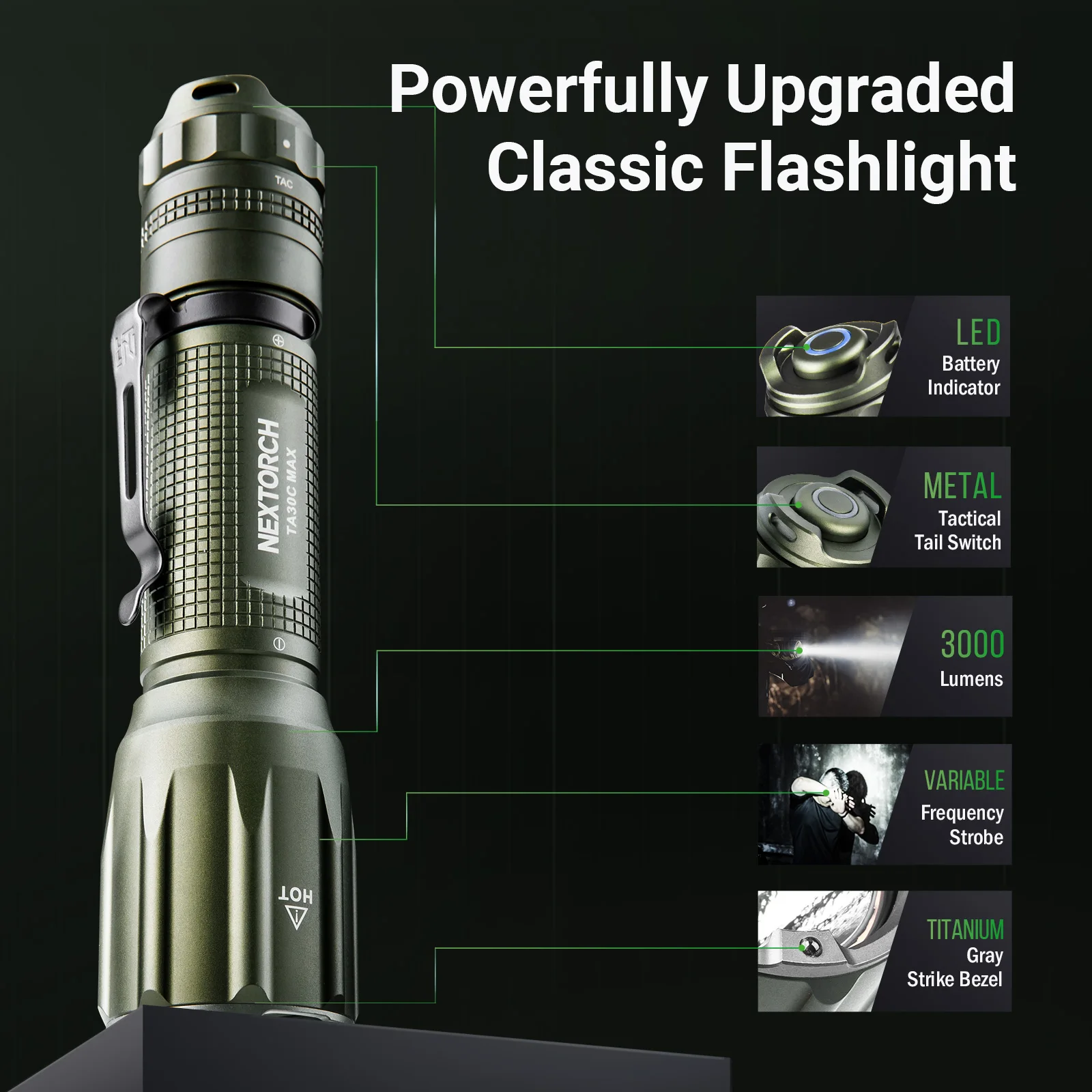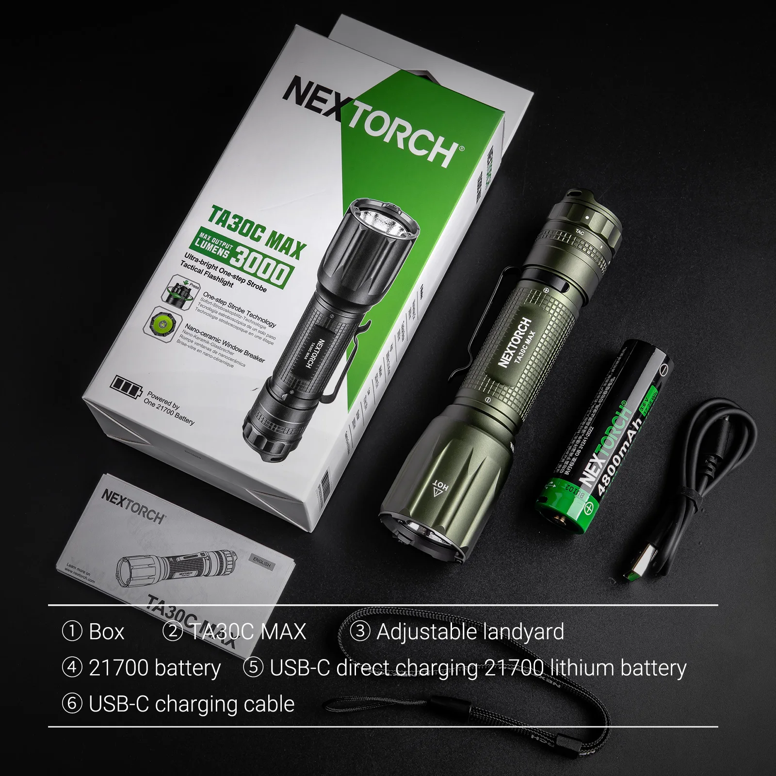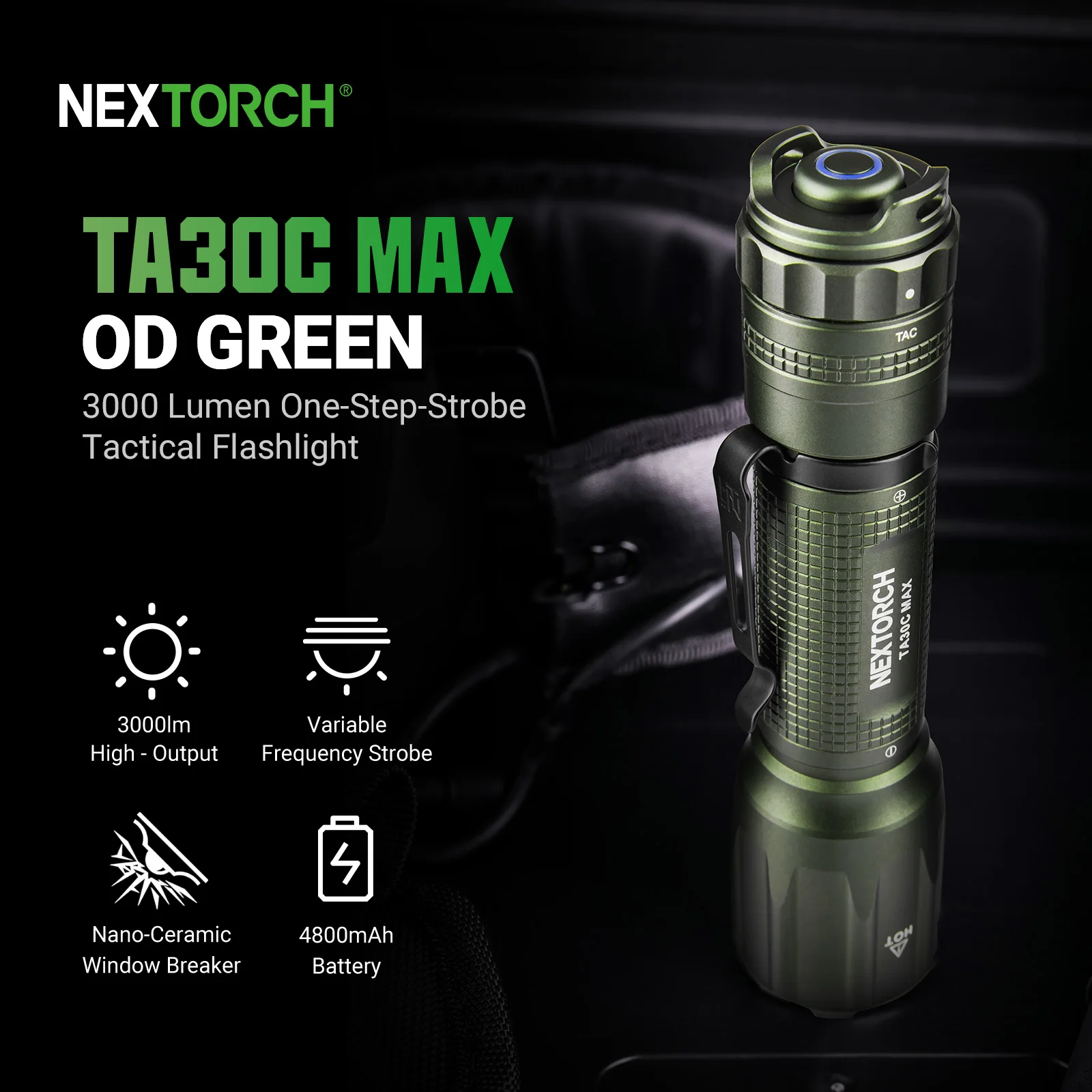 NEXTORCH TA30C MAX Verde 3000 lúmenes linterna recargable de alto brillo 30w linterna táctica de alta potencia, estroboscópica de un solo paso