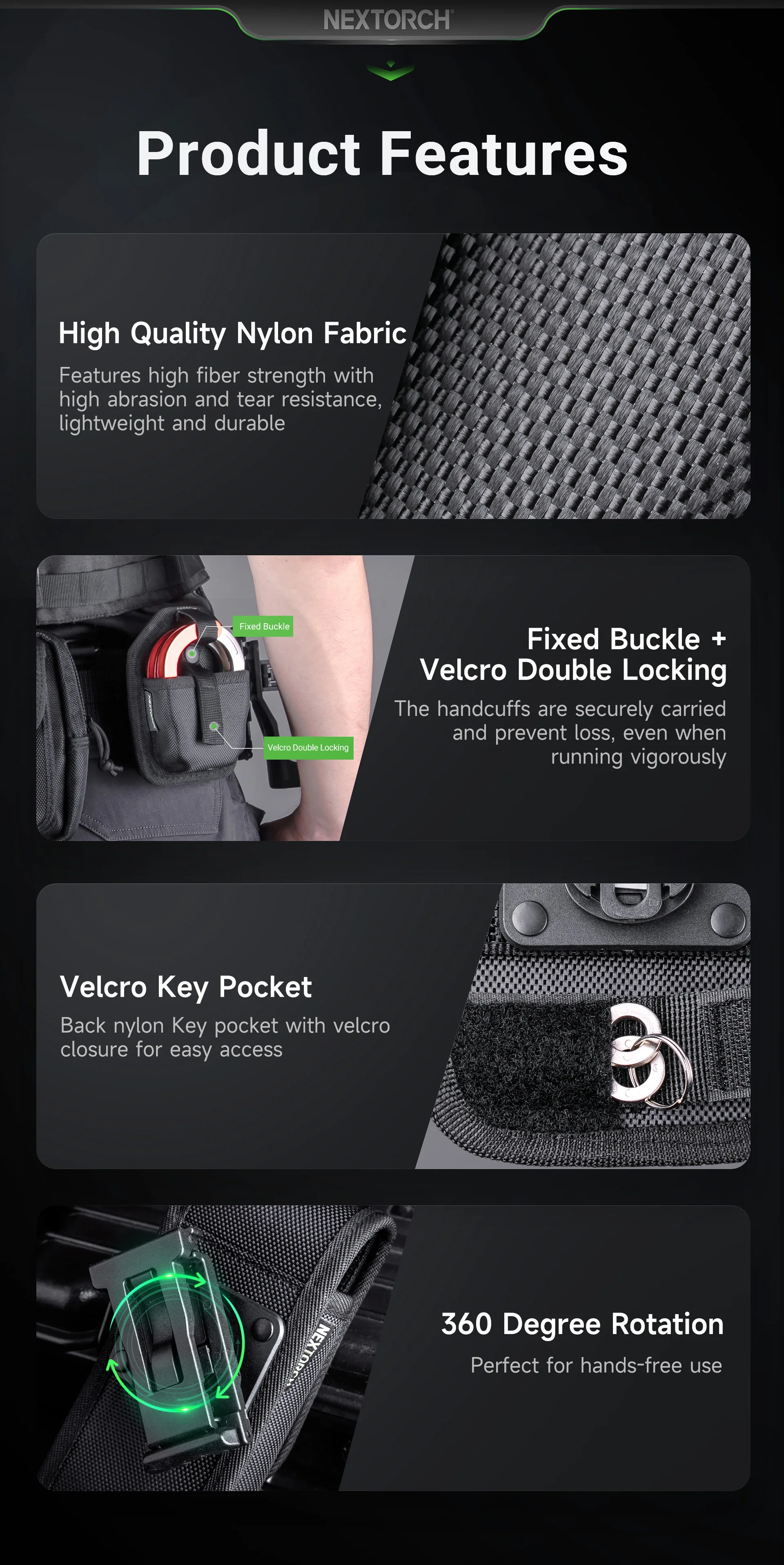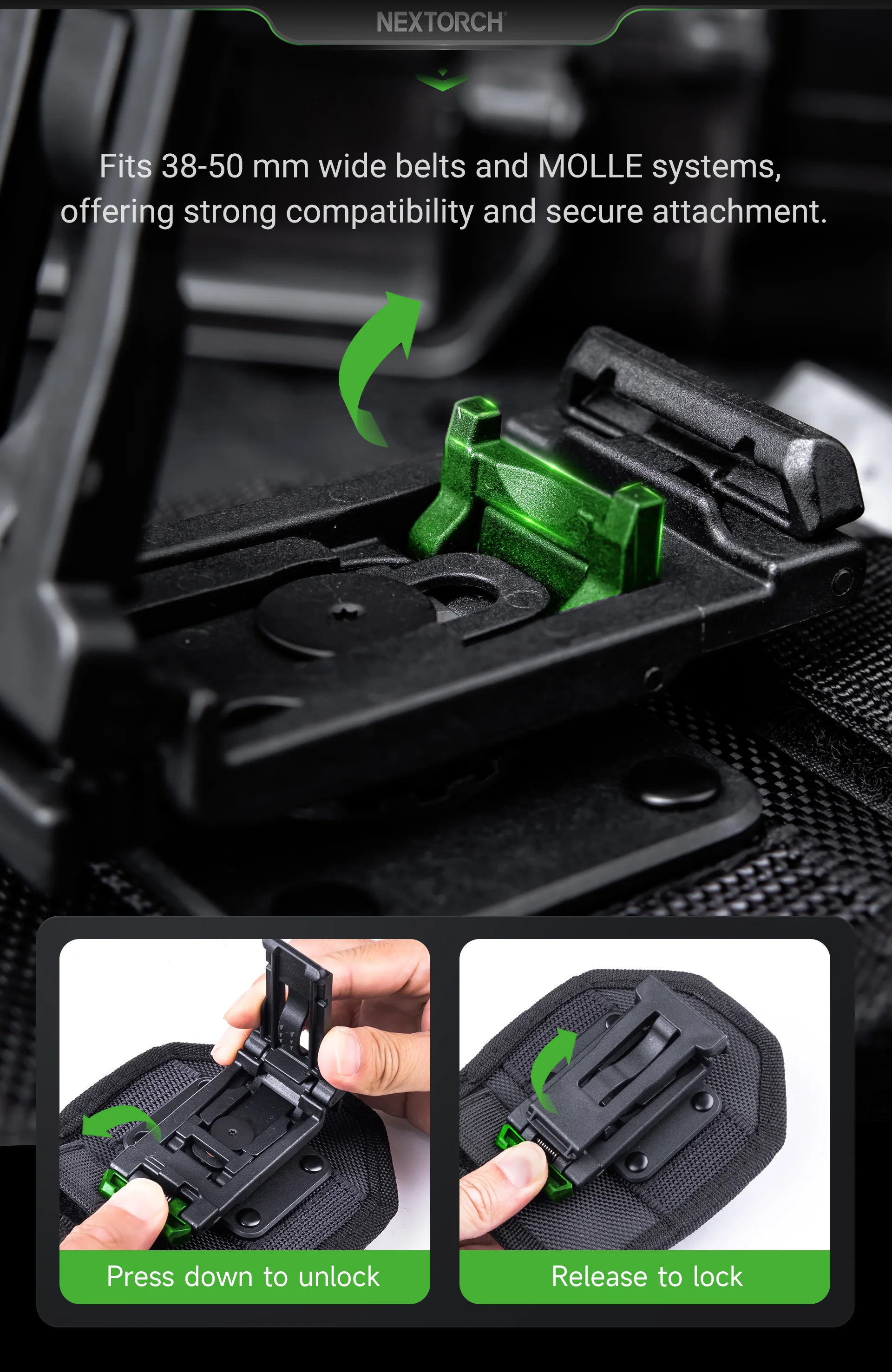 ⑤ Compatible with tactical belts and MOLLE systems with a width of 38-50 mm