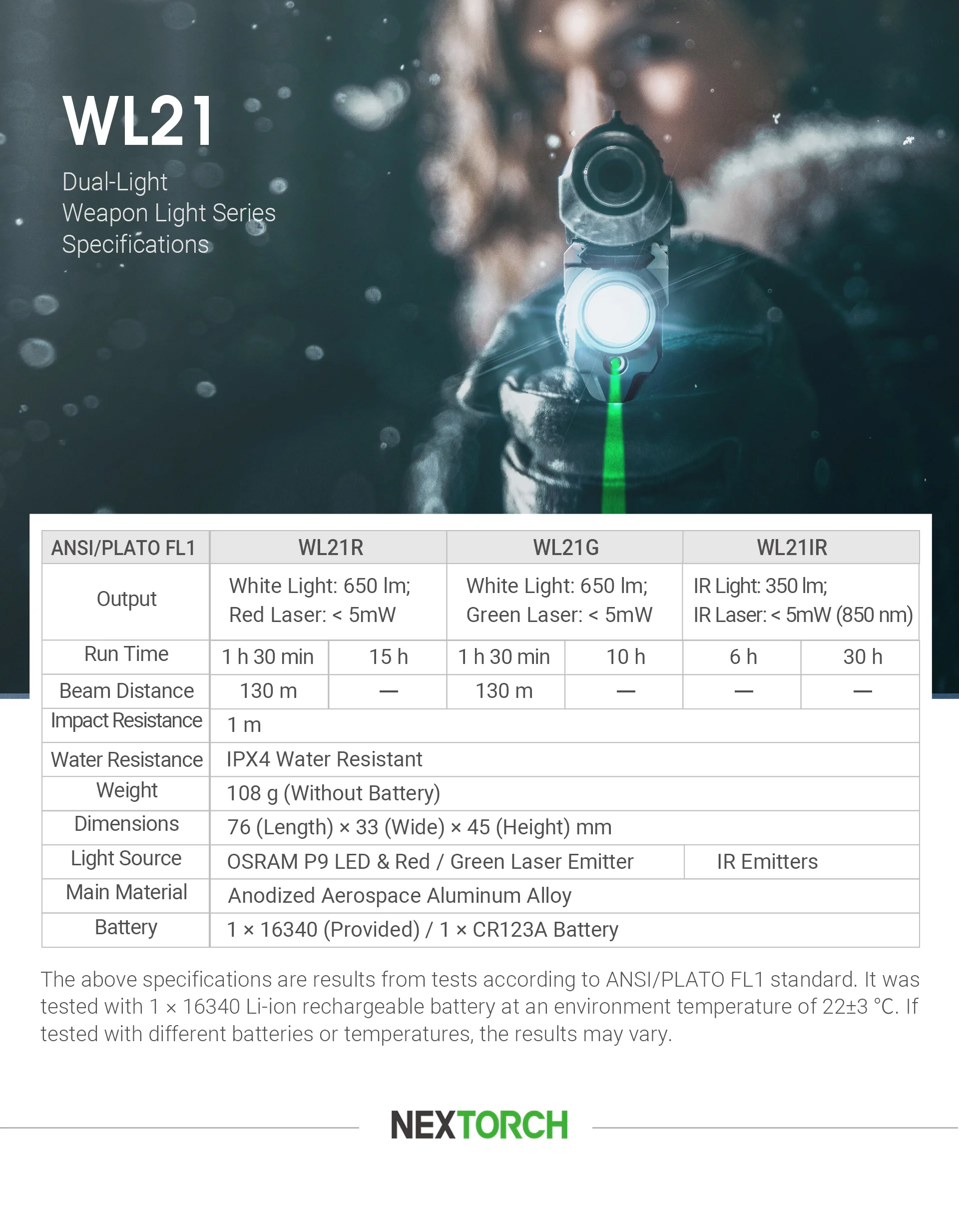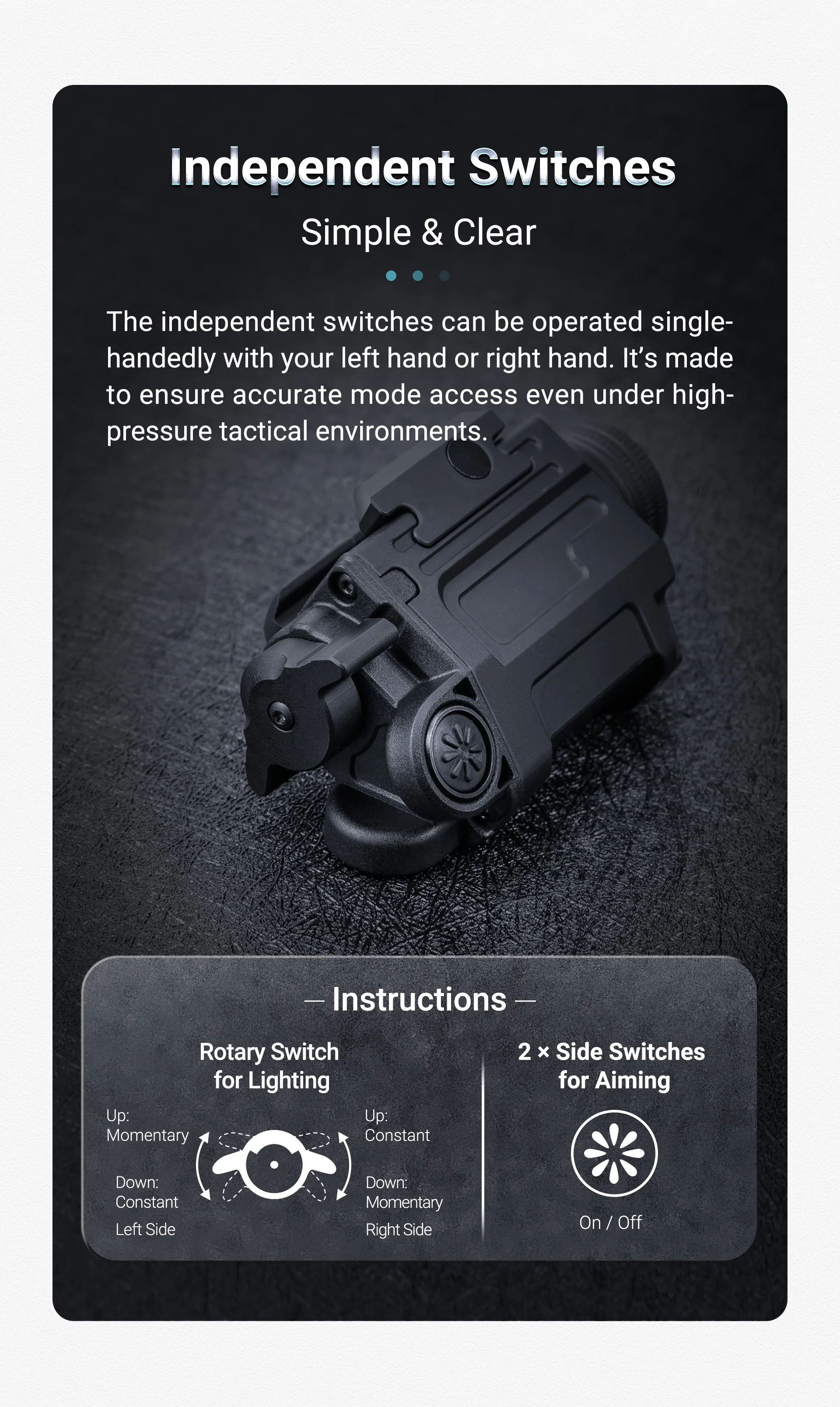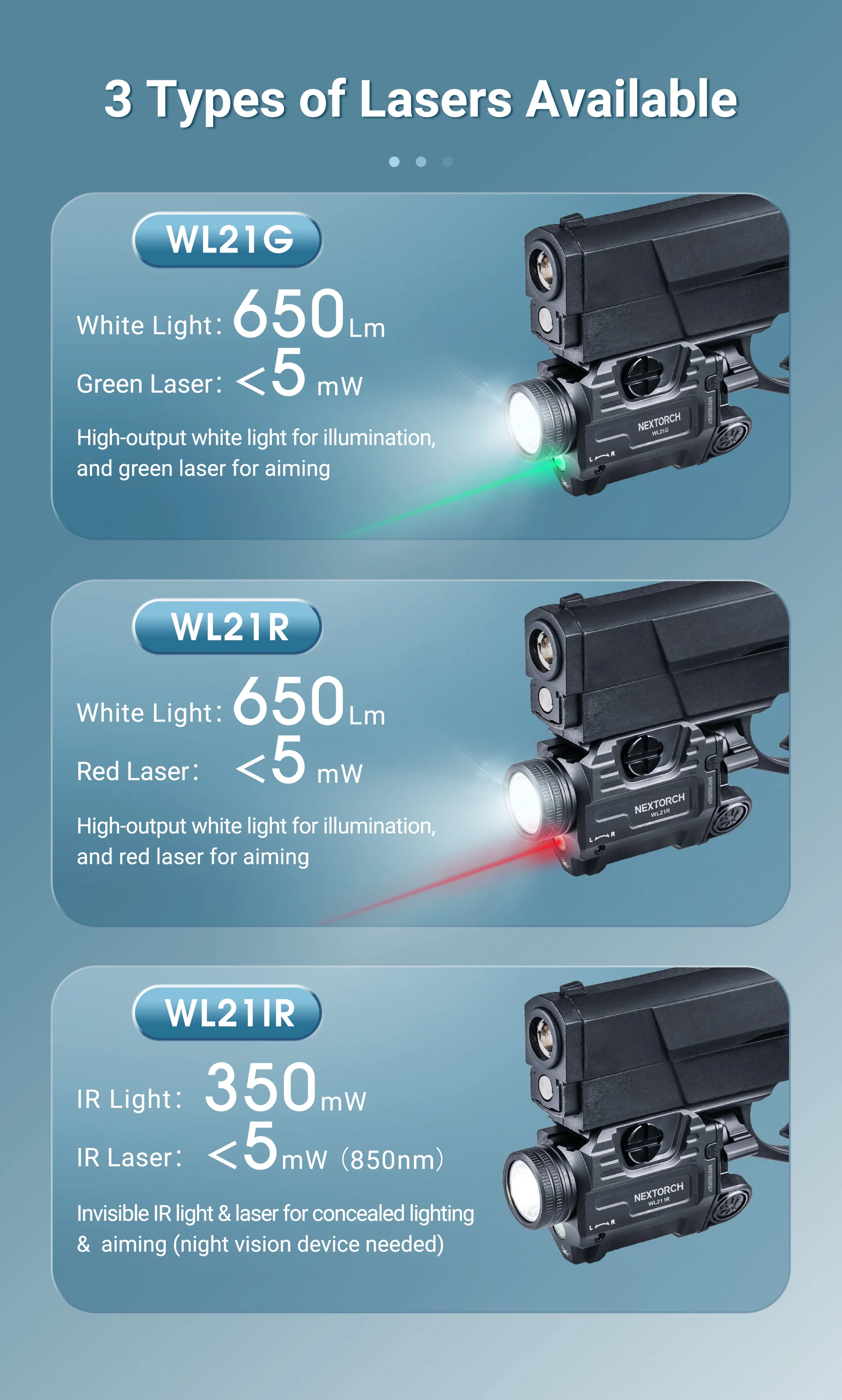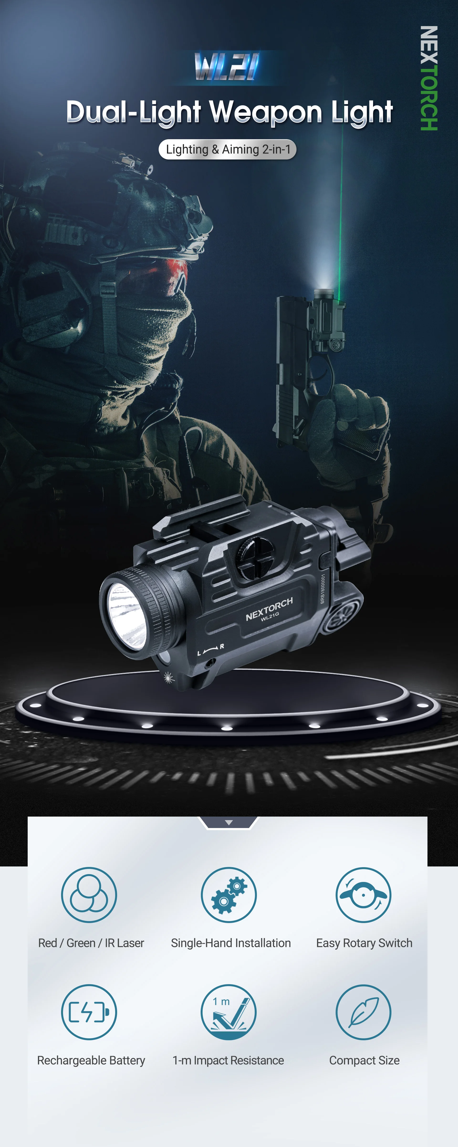 1.Iluminación de luz blanca WL21G + puntería láser verde